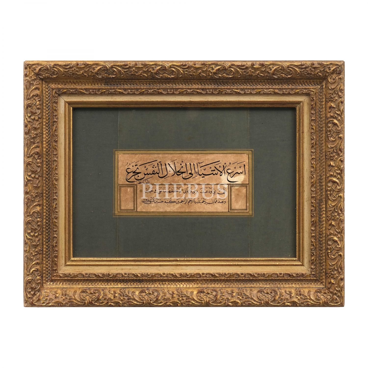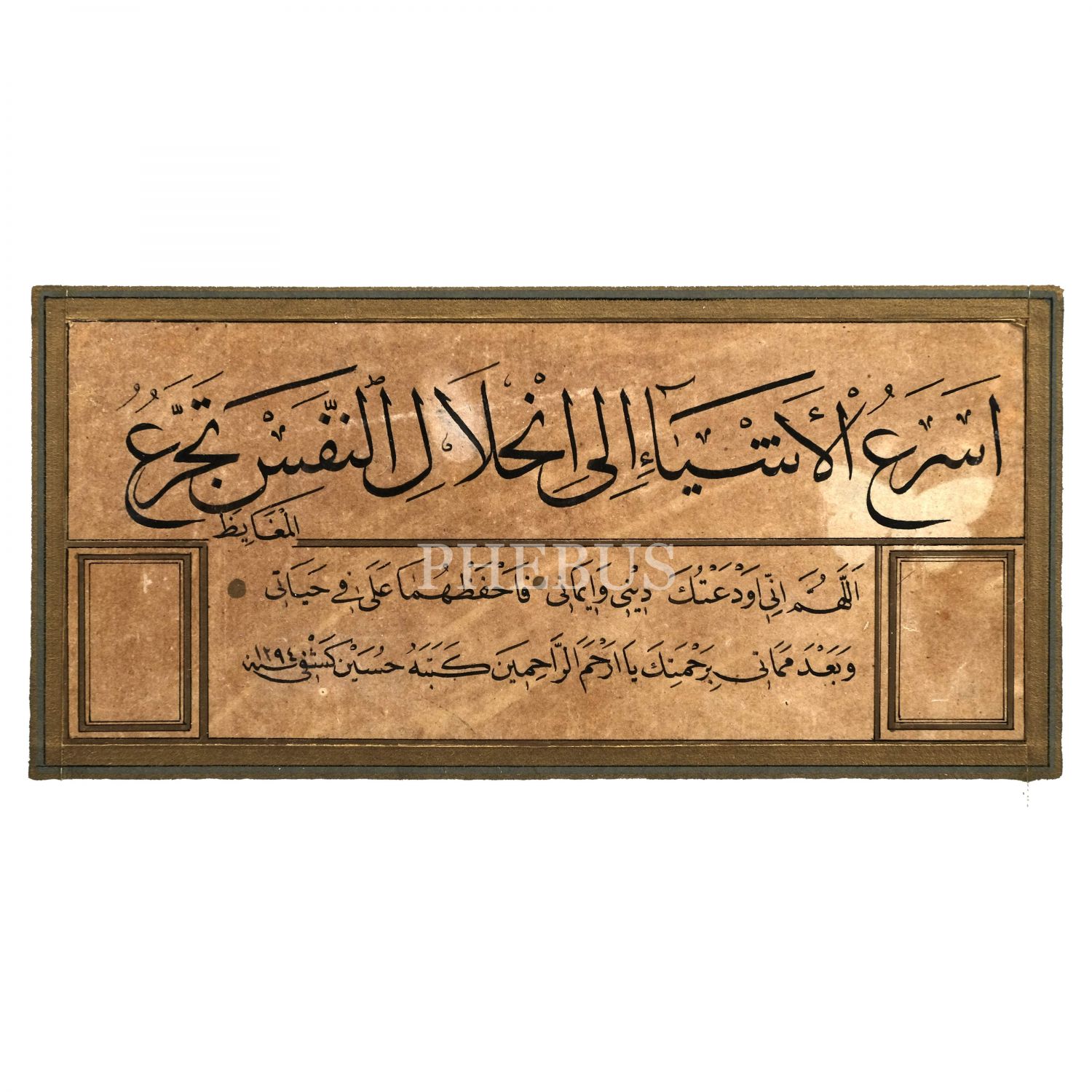 Hüseyin Keşfî ketebeli sülüs nesih kıta, 1294 tarihli, yazı ölçü:18x8 cm, çerçeve ölçü: 44x34 cm..