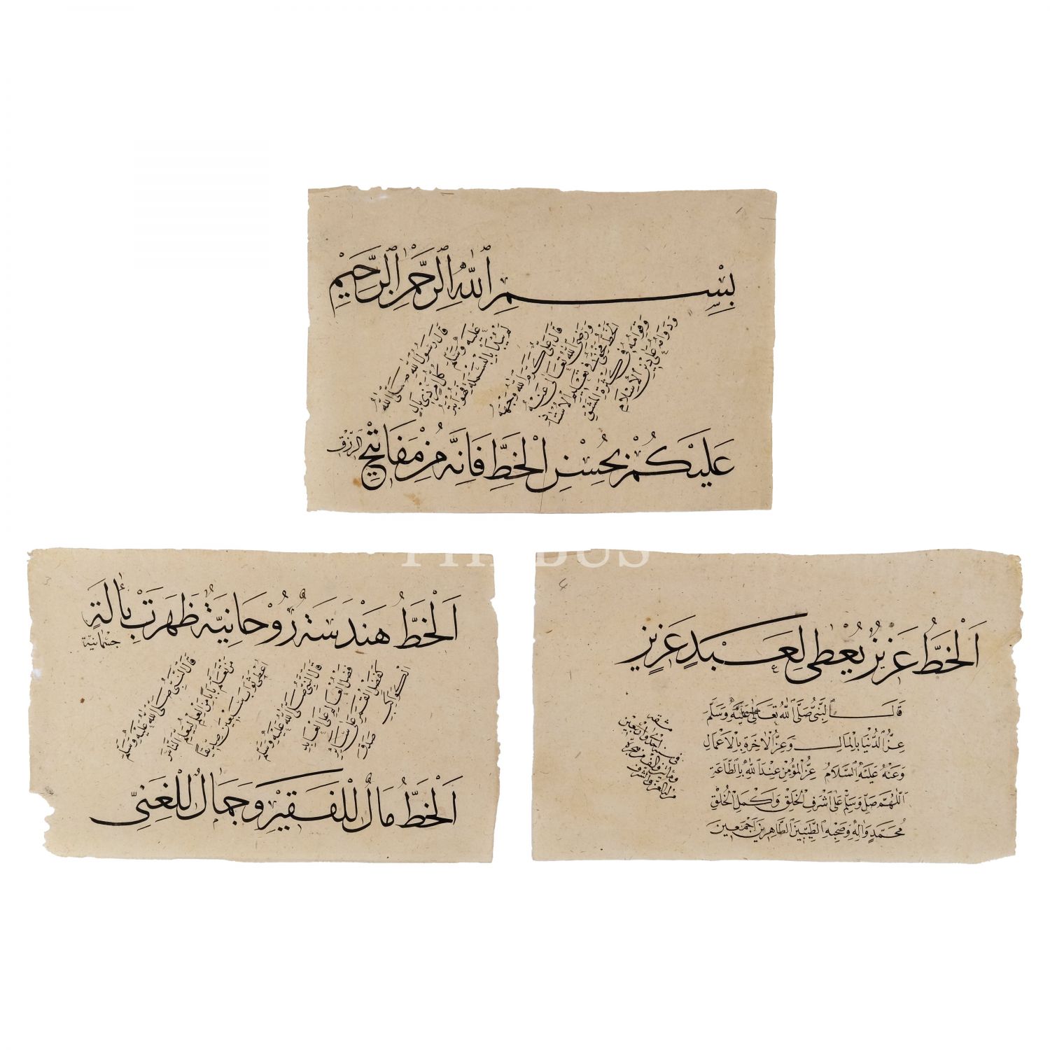 Üç adet hoca işi sülüs-nesih meşk, 1241 tarihli, 19x12 cm...