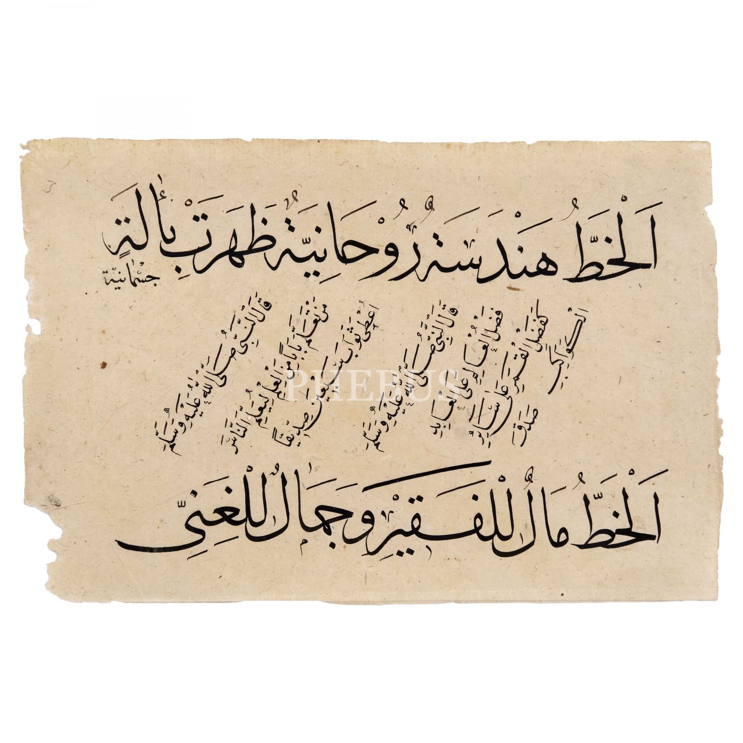 2. varak: "Hat rûhâni bir hendesedir, cismâni âletle tezâhür etmiştir." ve "Hat fakire mal, zengine güzelliktir."