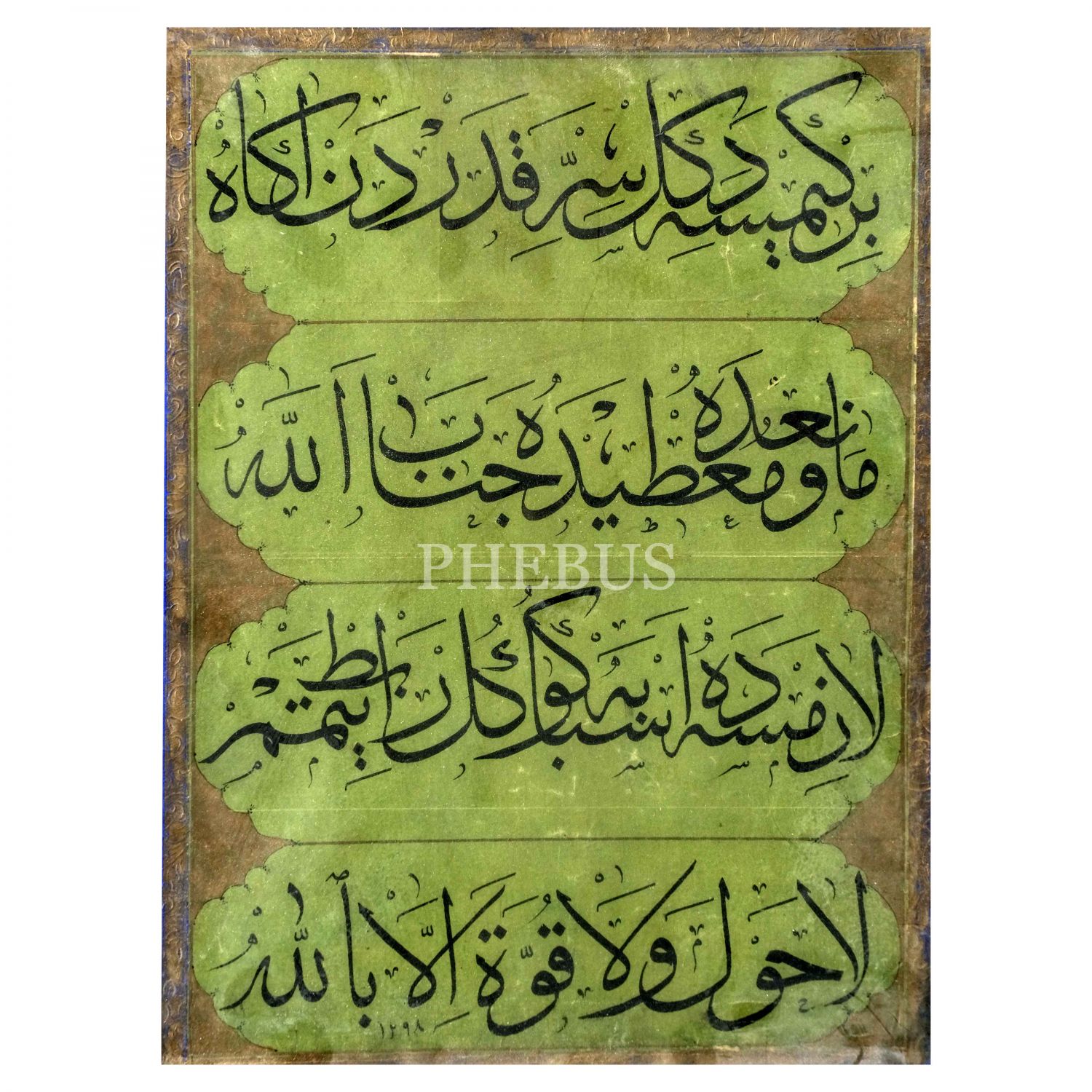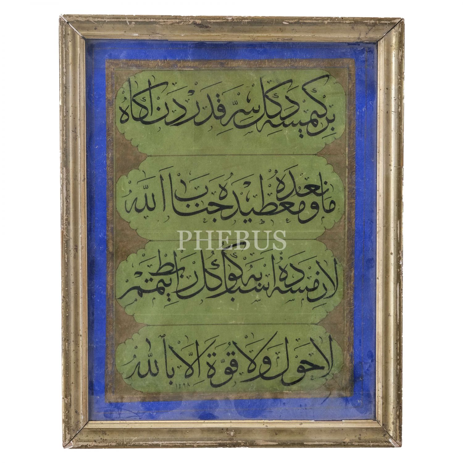 Sülüs levha, 1298 tarihli, yazı ölçü: 18x25 cm, çerçeve içi ölçü: 22x29 cm...