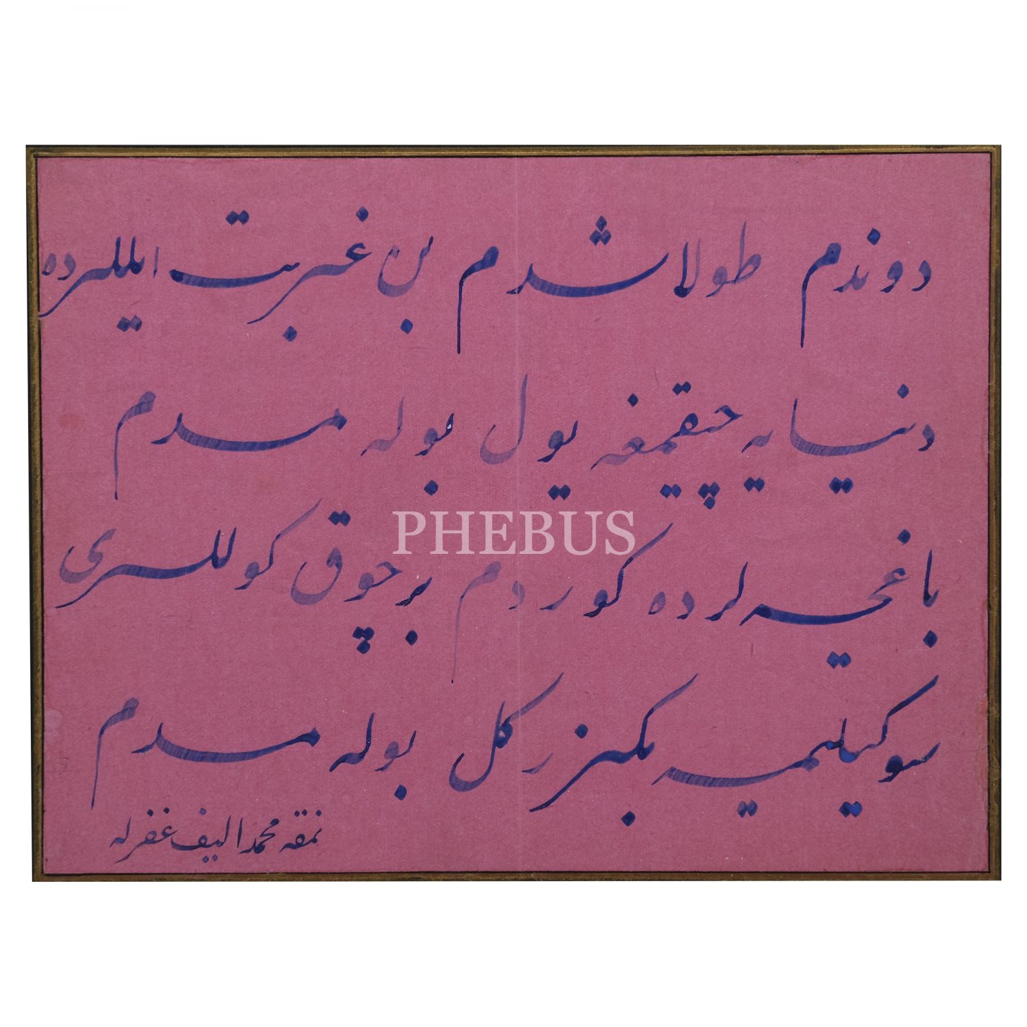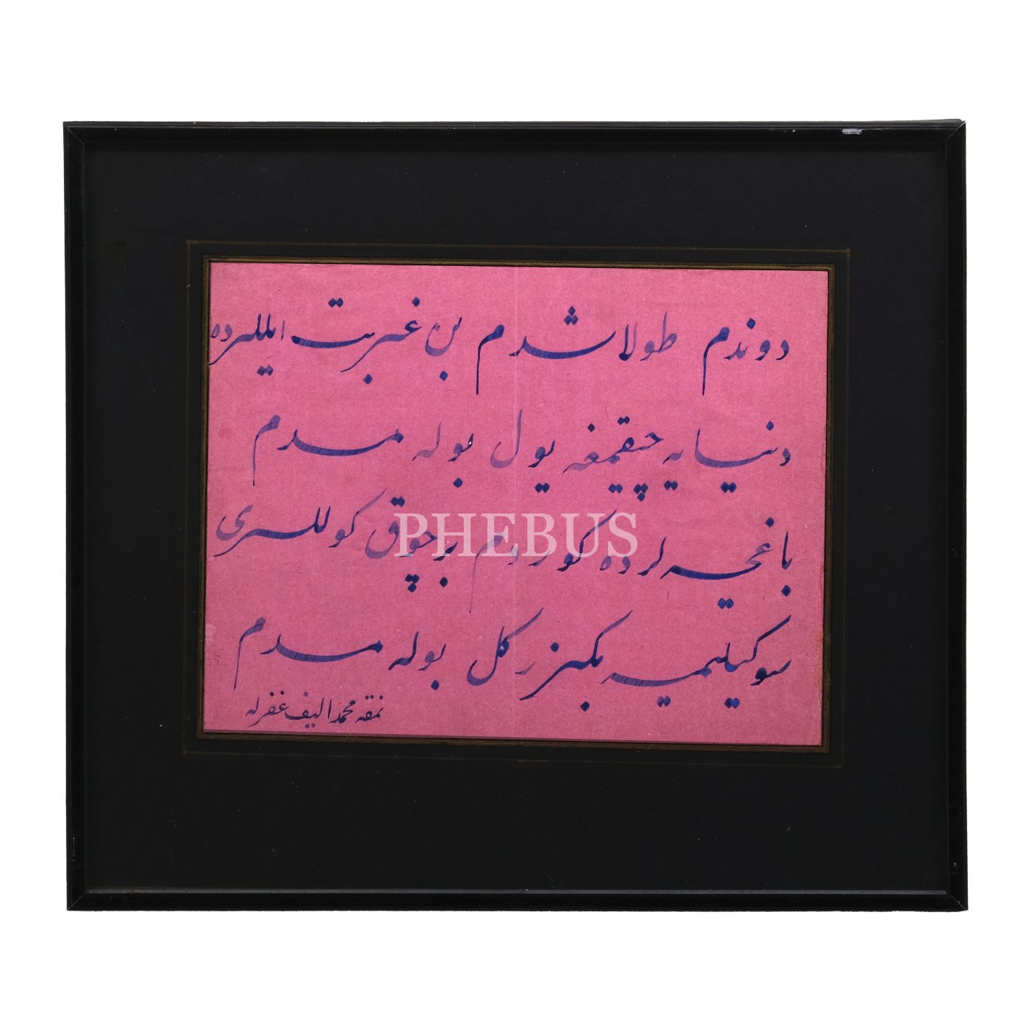 Mehmed Elif Efendi ketebeli talik kıta, yazı ölçü: 20*15 cm...