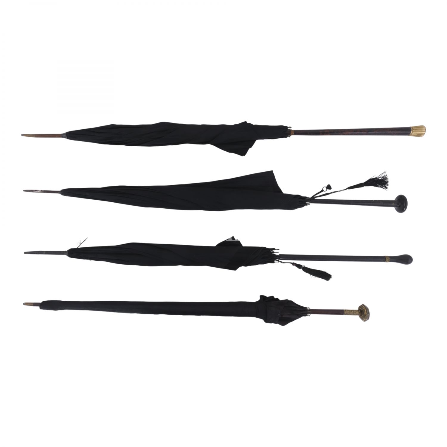 Birinin sapı Toledo işi olan şemsiyelerin uzunlukları: 103 cm - 100,5 cm - 98 cm - 90 cm... Gölgeliklerinde delik ve yırtıklar mevcuttur.