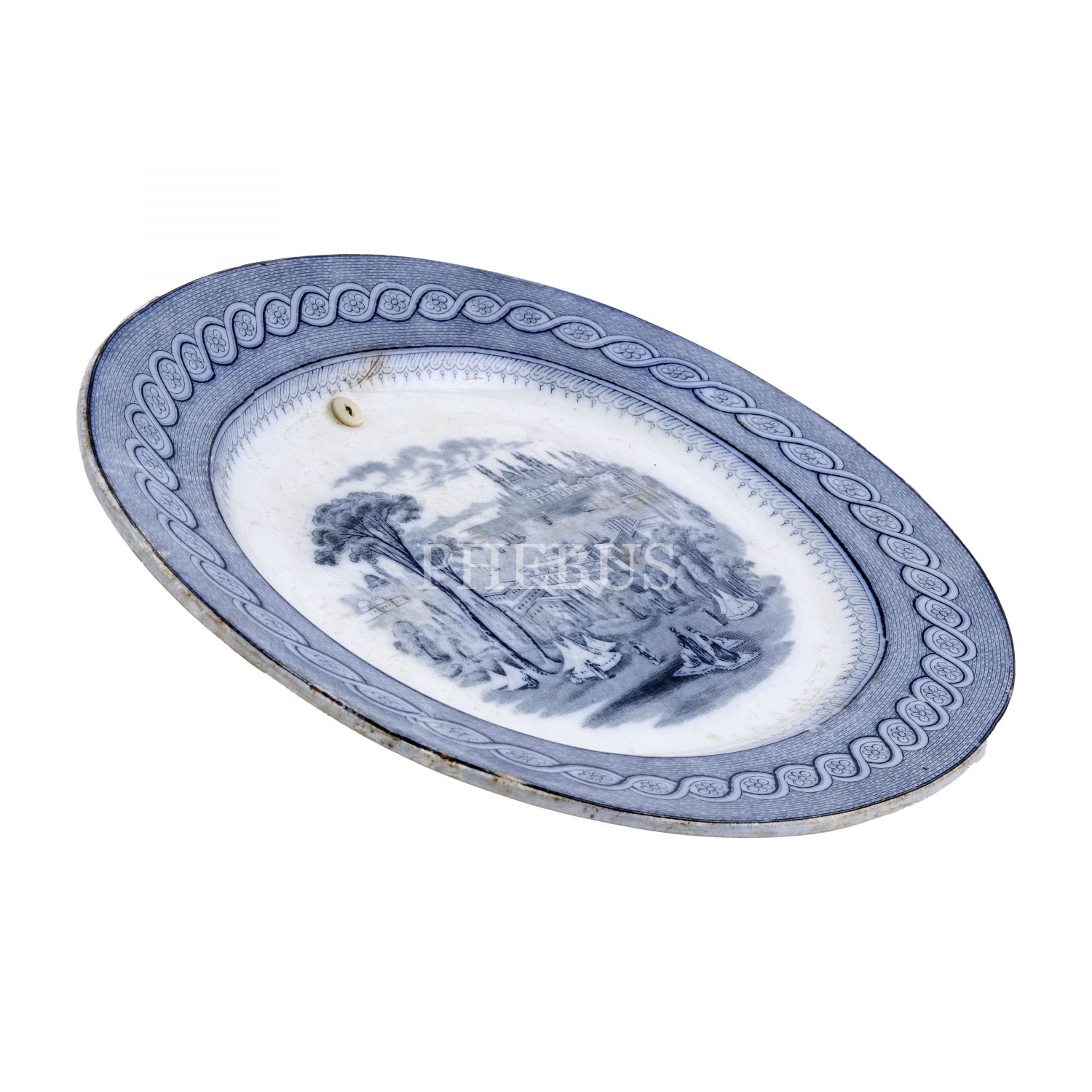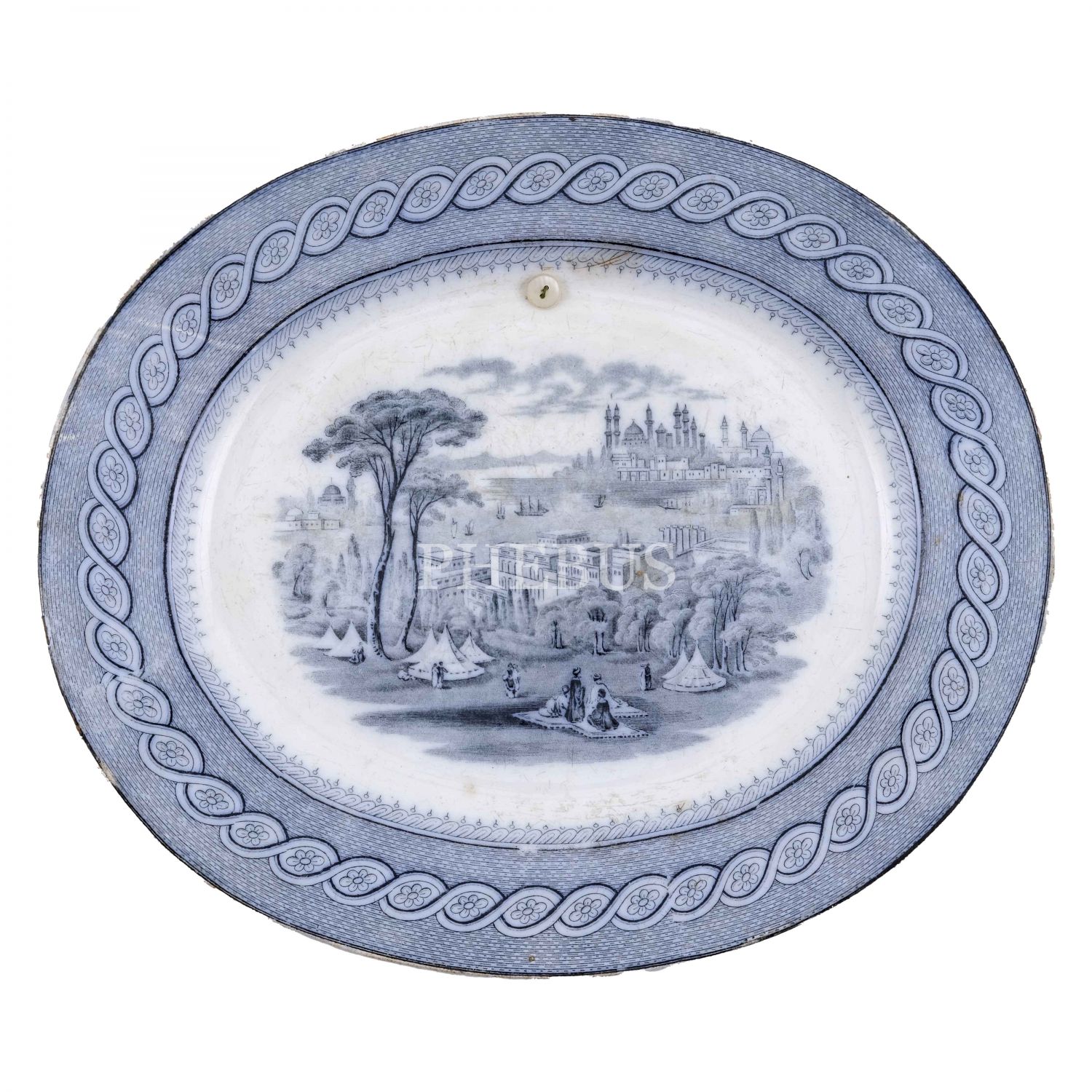 Merkezi hayali İstanbul (Constantinople) - Boğaziçi tasvirli, kenarları floral bordürlü porselen duvar tabağı, 31x26,5 cm...