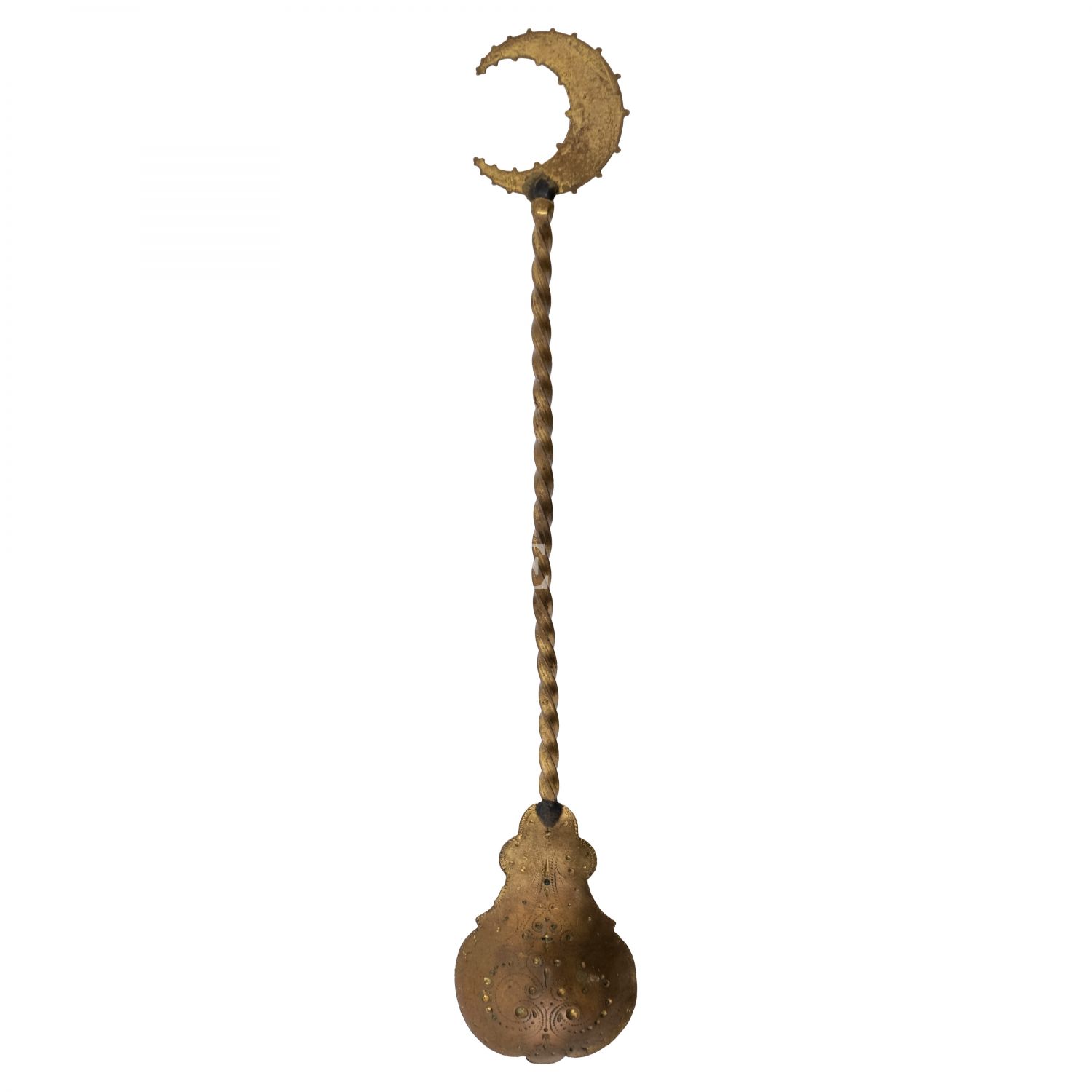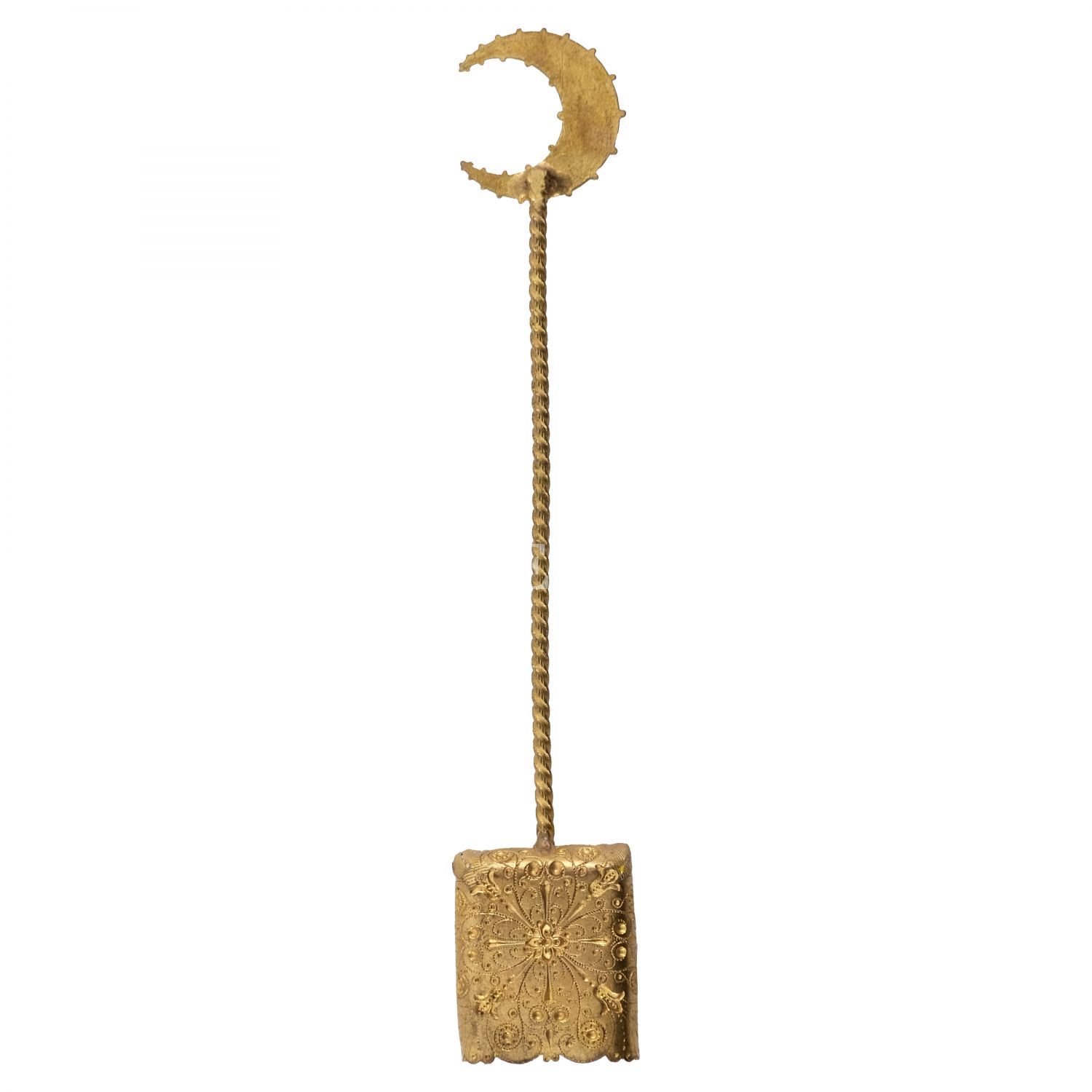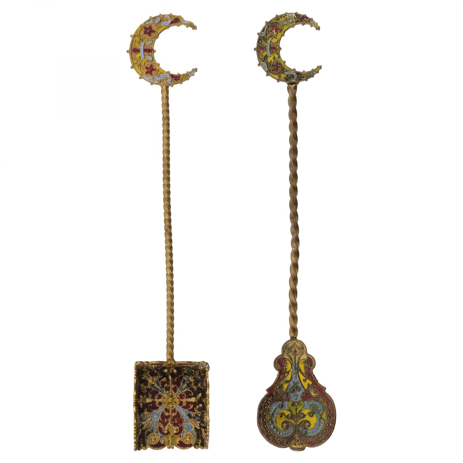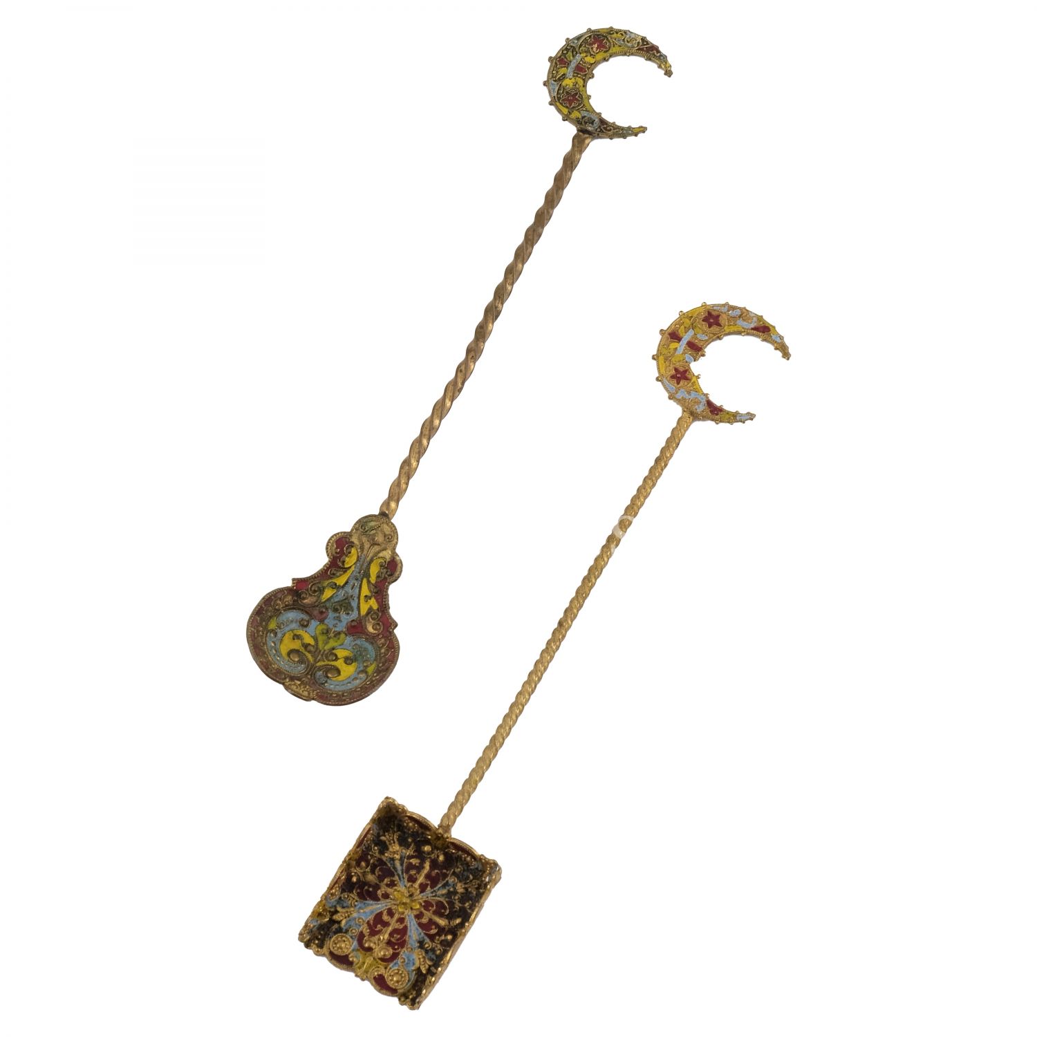 Osmanlı döneminden, el yapımı, mineli ve altın sıvama, sapları hilal motifli bir çift dekoratif kaşık, 15 cm - 15,5 cm...