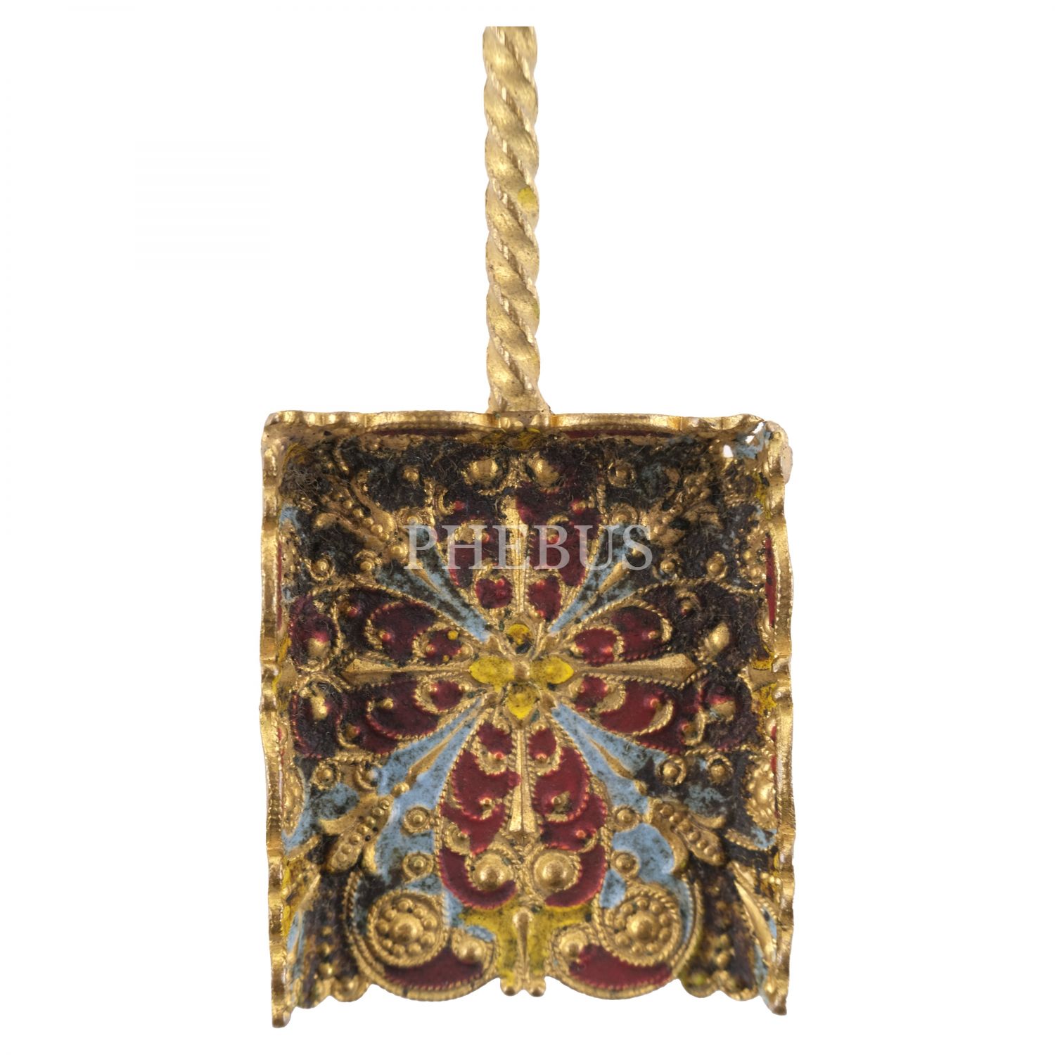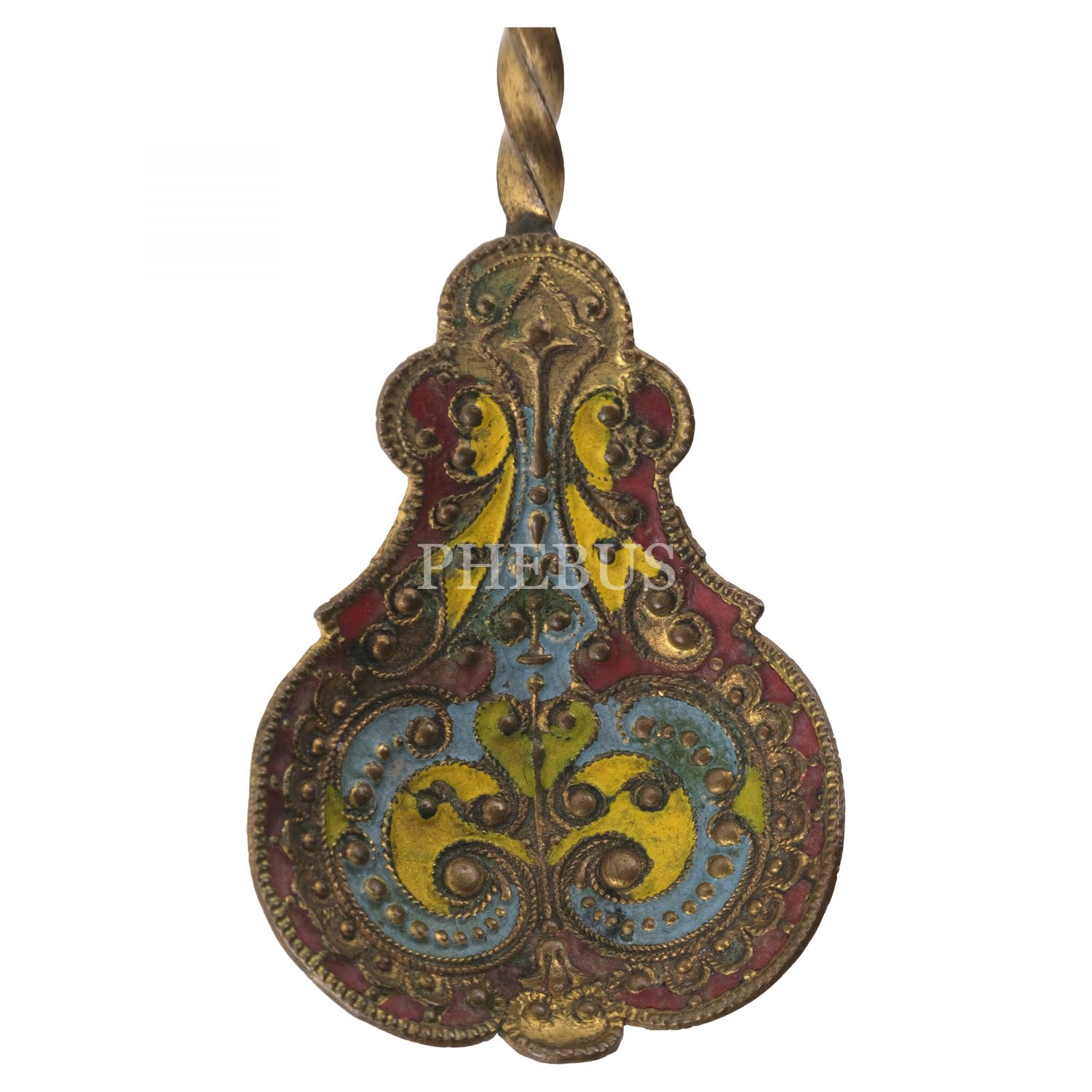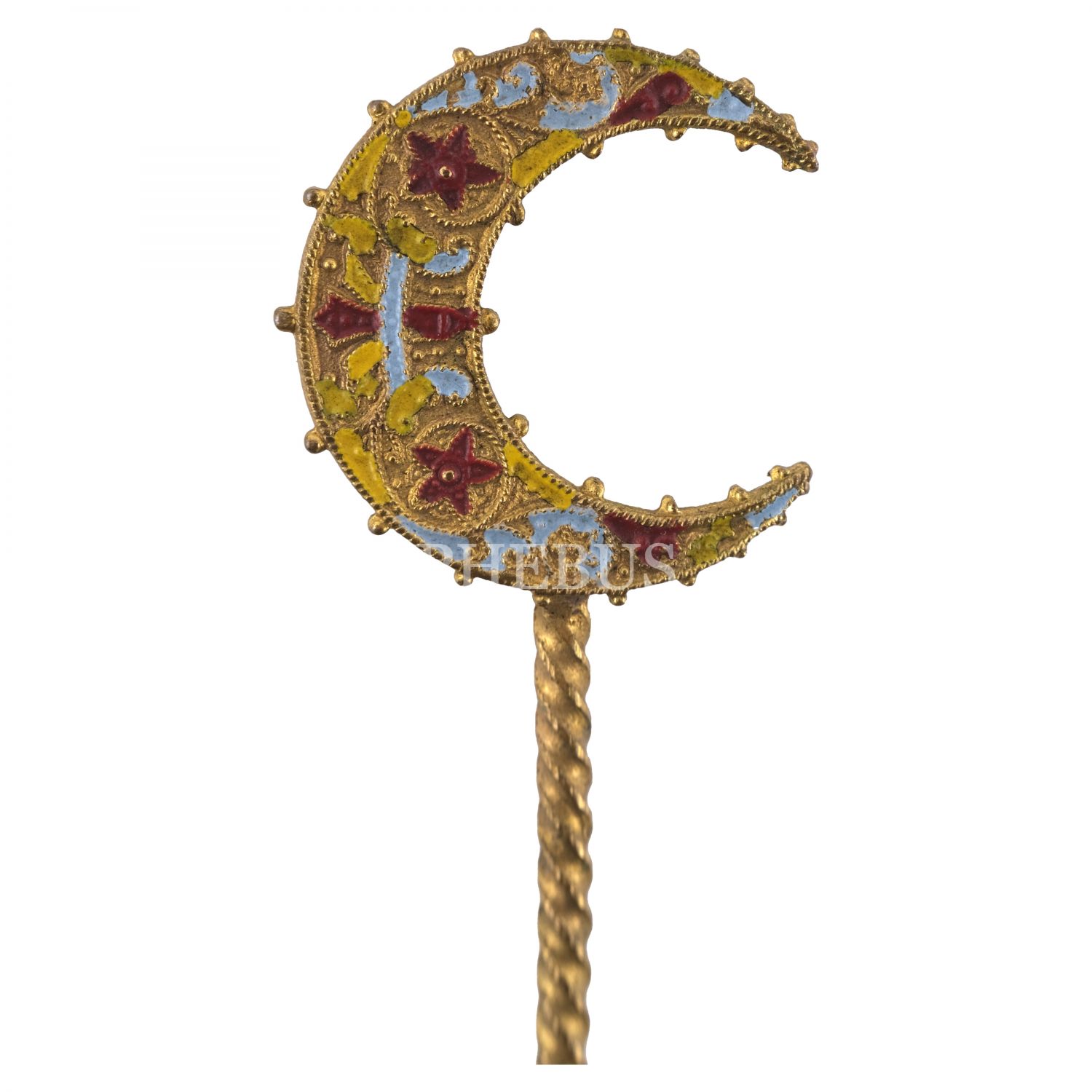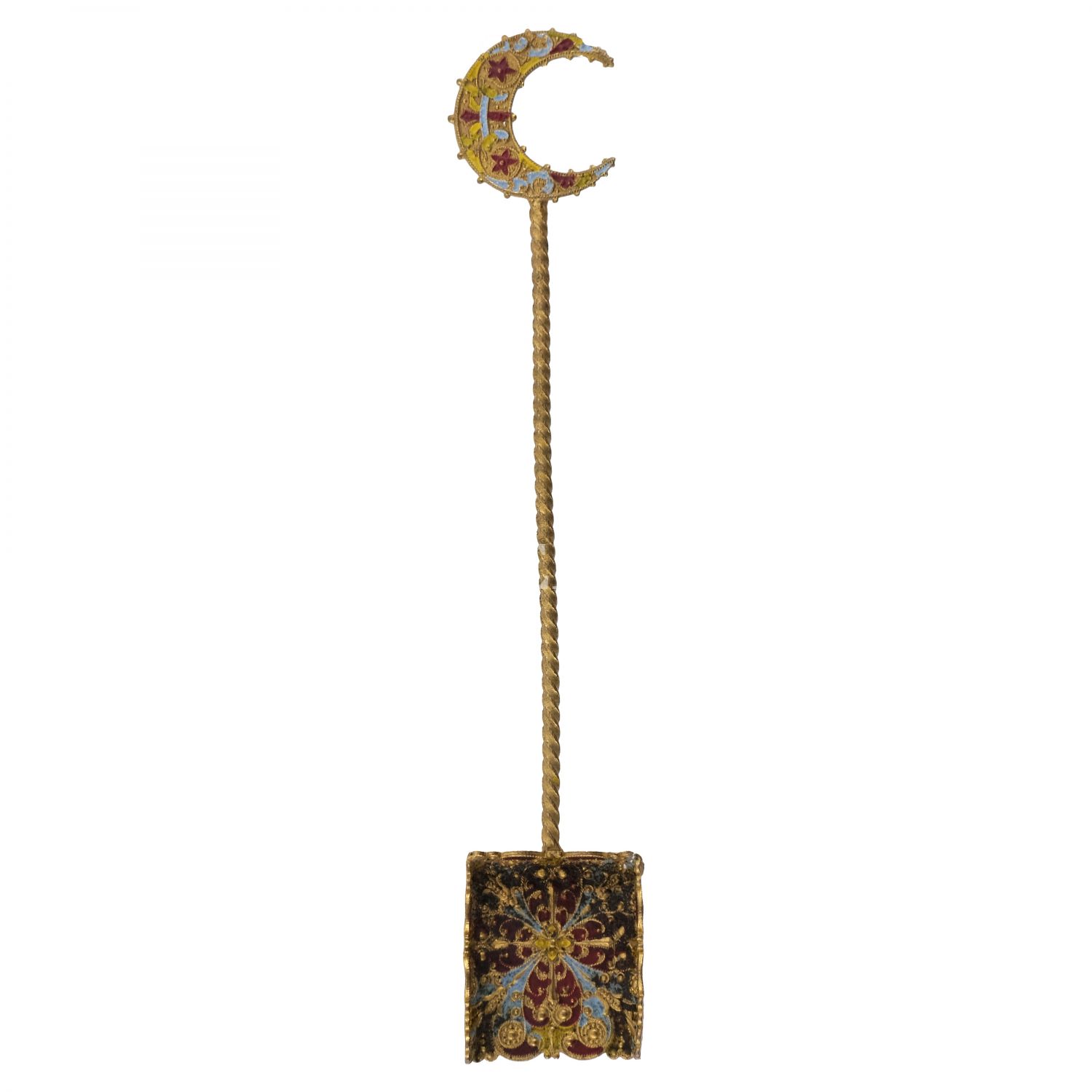 Osmanlı döneminden, el yapımı, mineli ve altın sıvama, sapları hilal motifli bir çift dekoratif kaşık, 15 cm - 15,5 cm...