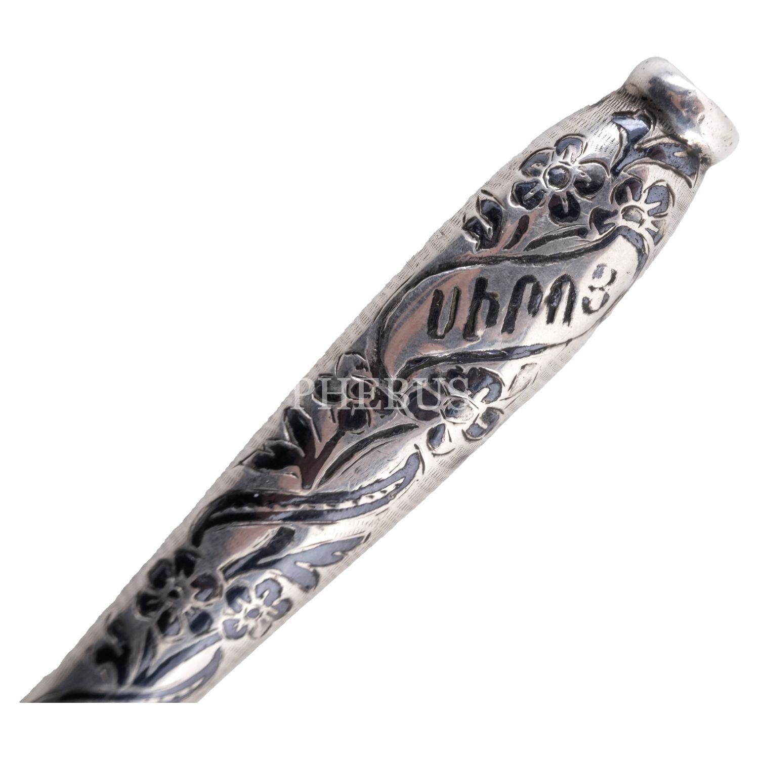 Ermenice "Sevgi Armağanı" yazılı, floral motiflerle bezeli sigara ağızlığı, 9,5 cm...