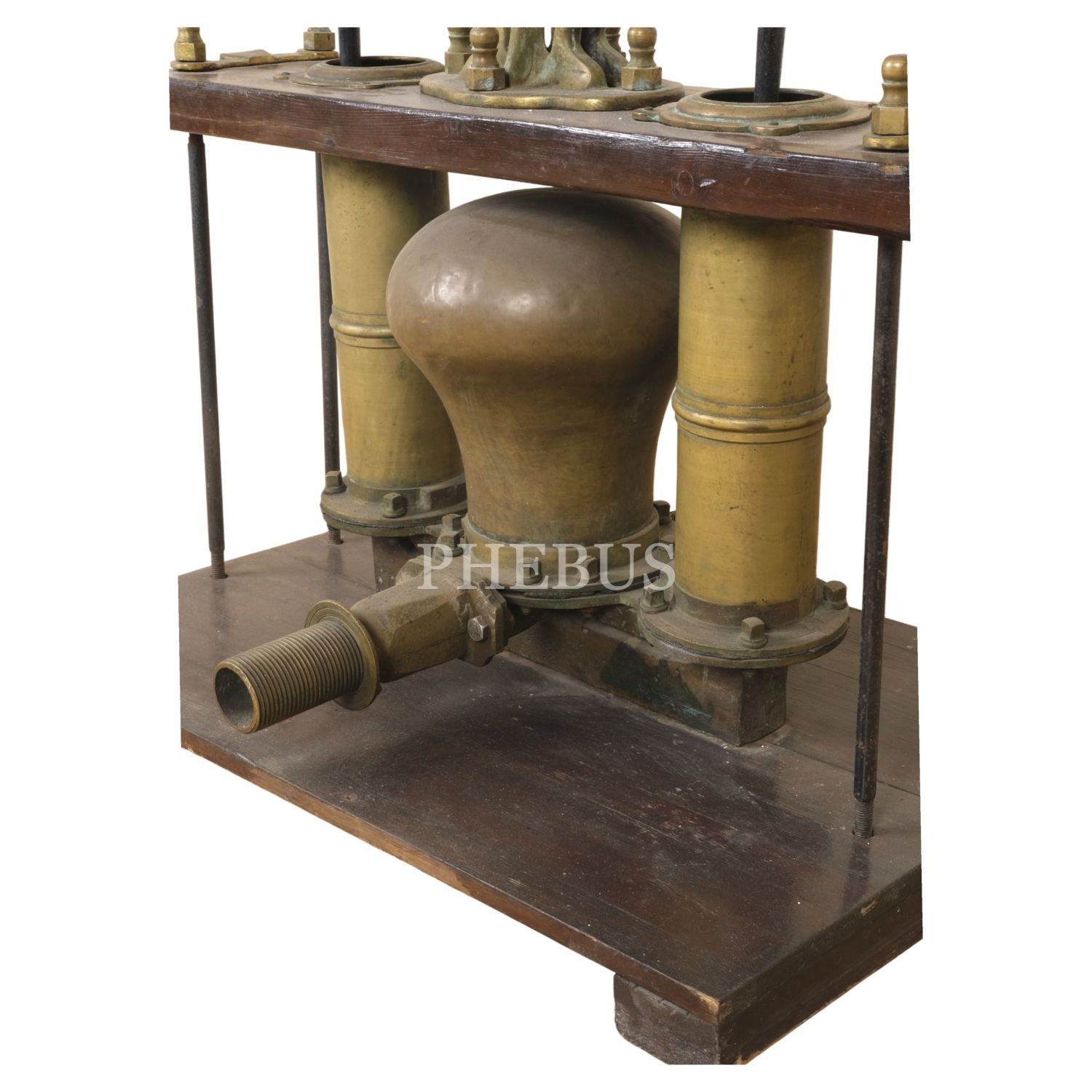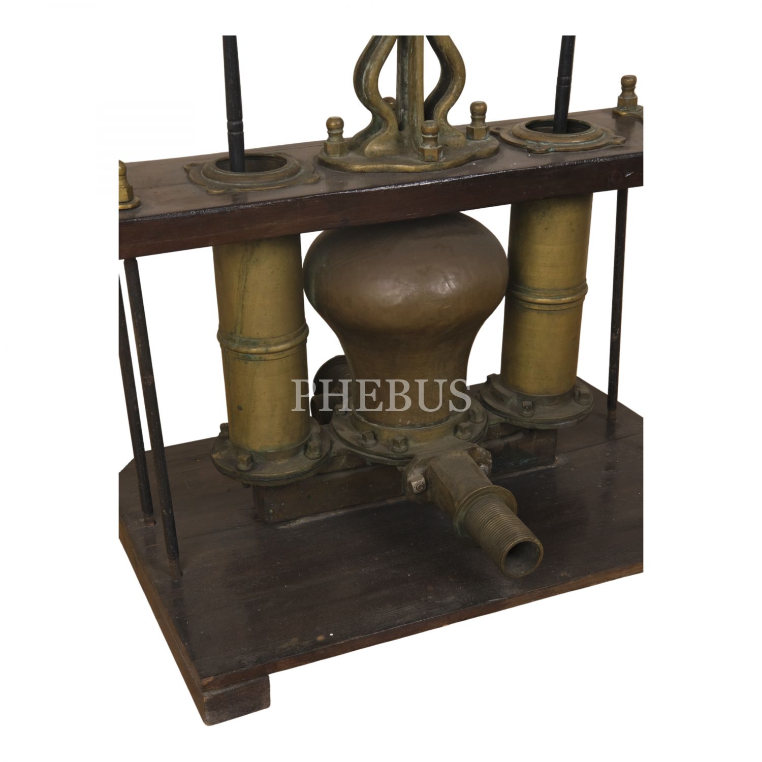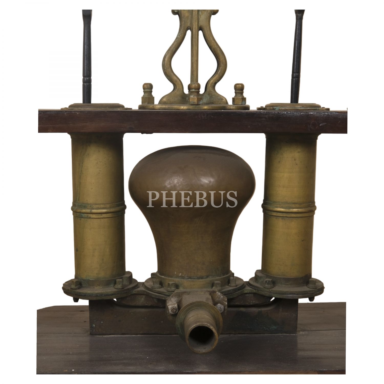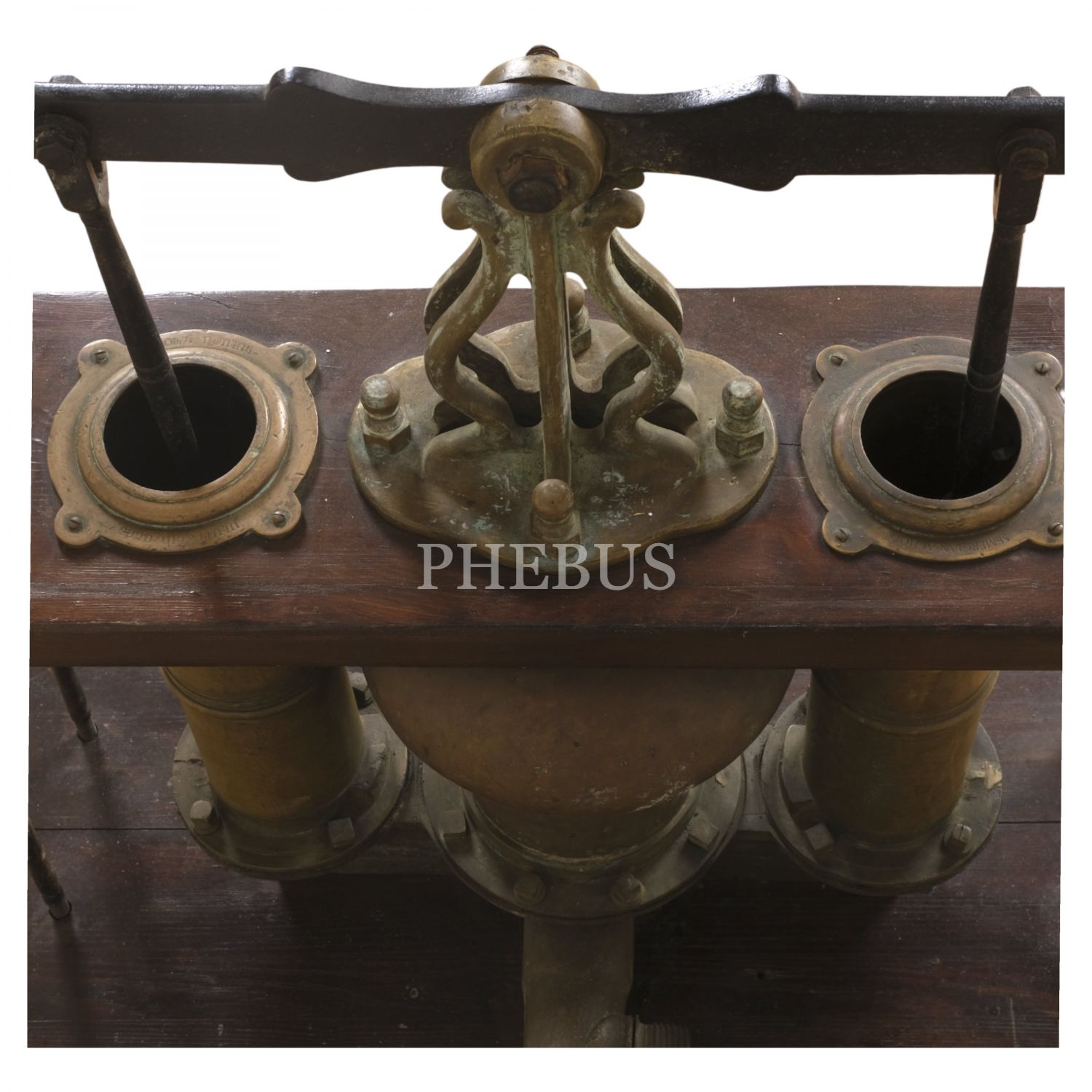 Osmanlı döneminden, silindir ağızlarının birinde Latin harfleriyle "Semerdjian Achod / Galata - Cons/ple"; bir diğerindeyse Ermenicesi yazılı, pirinç ve ahşaptan mamul, büyük boy tulumba, 130x60x90 cm...