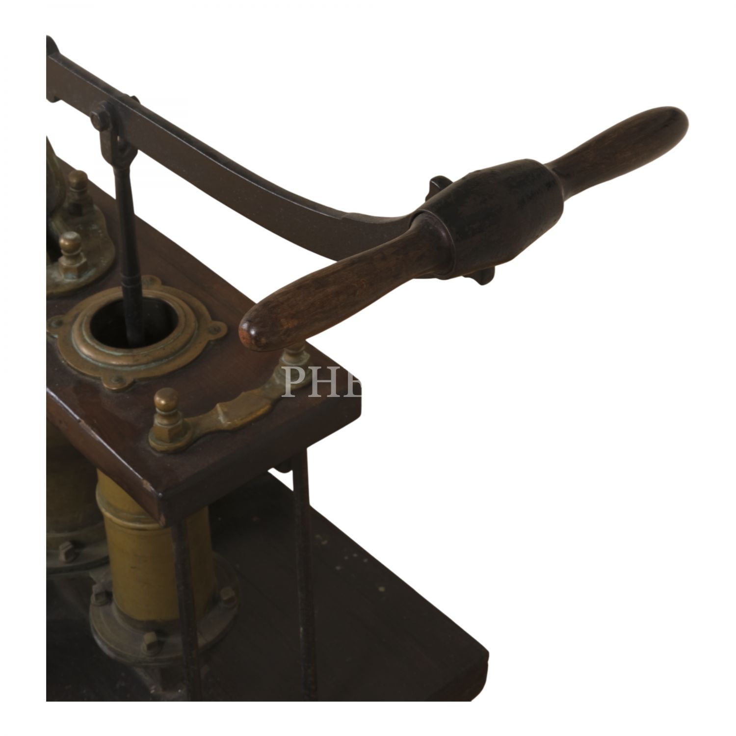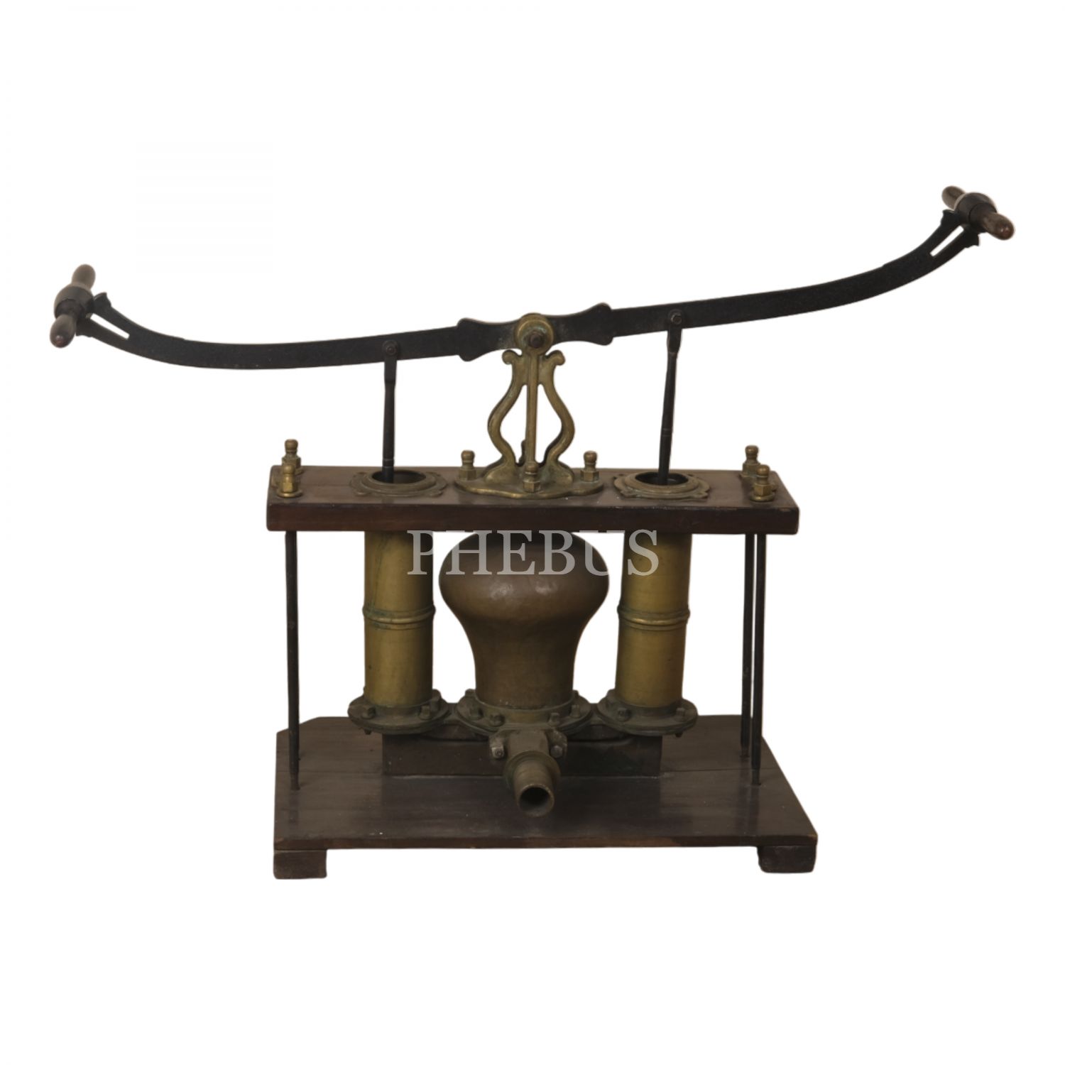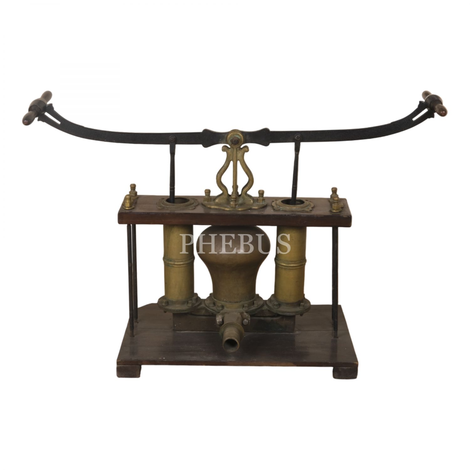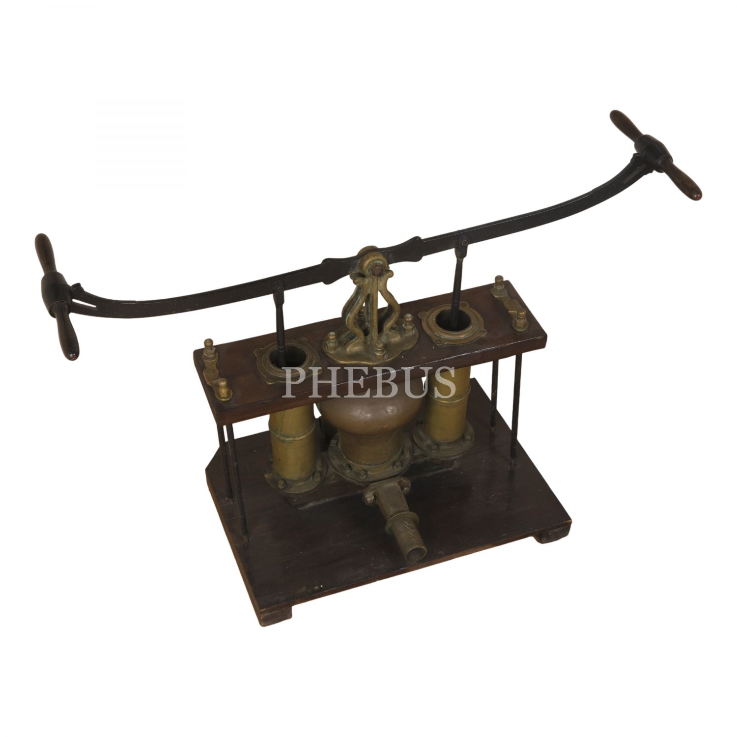 Osmanlı döneminden, silindir ağızlarının birinde Latin harfleriyle "Semerdjian Achod / Galata - Cons/ple"; bir diğerindeyse Ermenicesi yazılı, pirinç ve ahşaptan mamul, büyük boy tulumba, 130x60x90 cm...