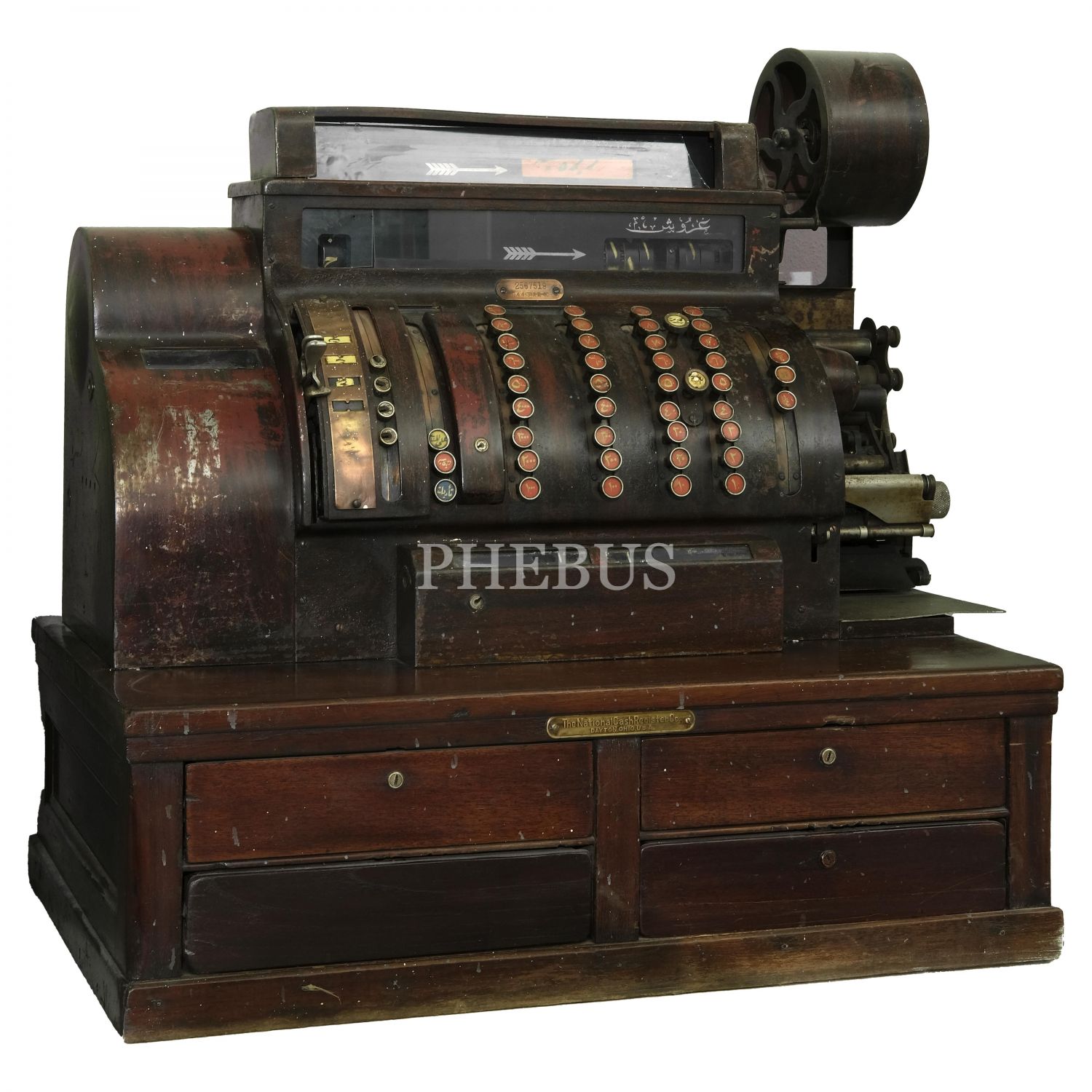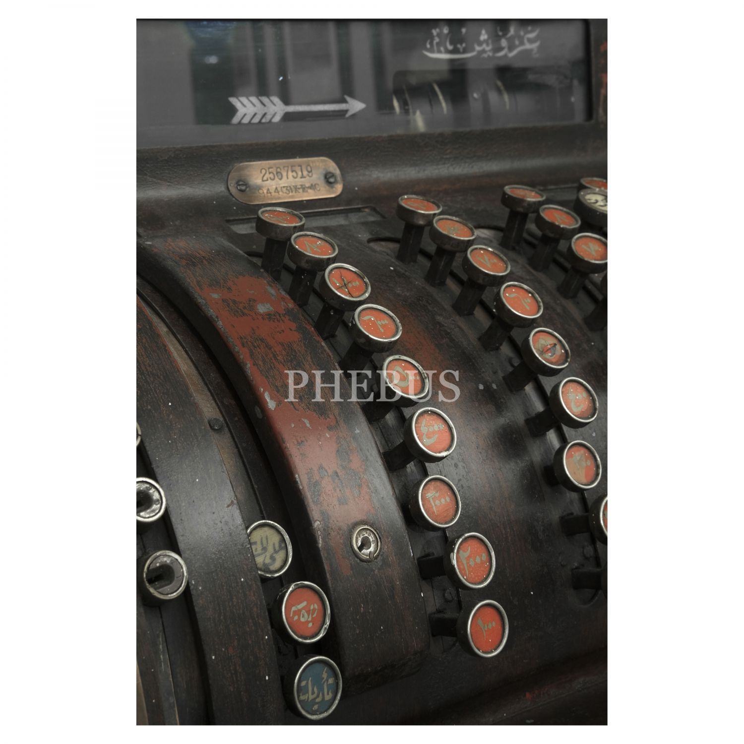 Yazar kasanın bütün tuşları Osmanlıca, ayrıca işlem yapmak için kullanılan tuşları da "veresiye", "tadiyat" ve "kuruş" gibi Osmanlıca ifadelerden oluşmaktadır. Yazar kasanın klişe merdanesinin bir yüzünde Osmanlıca "Kalyoncuzade İsmail Hakkı"; diğer yüzündeyse Osmanlıca "Pangaltı Büyükdere Caddesi Numara 134" yazılıdır.