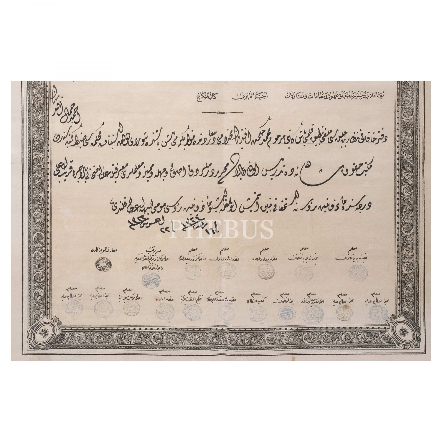 1. Ahmet Cemal Efendi´nin, Sultan İkinci Abdülhamit tuğralı Mekteb-i Hukuk diploması...
