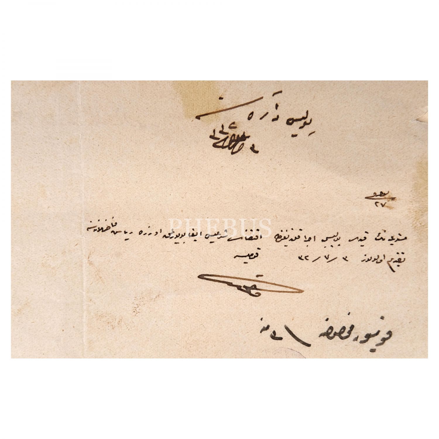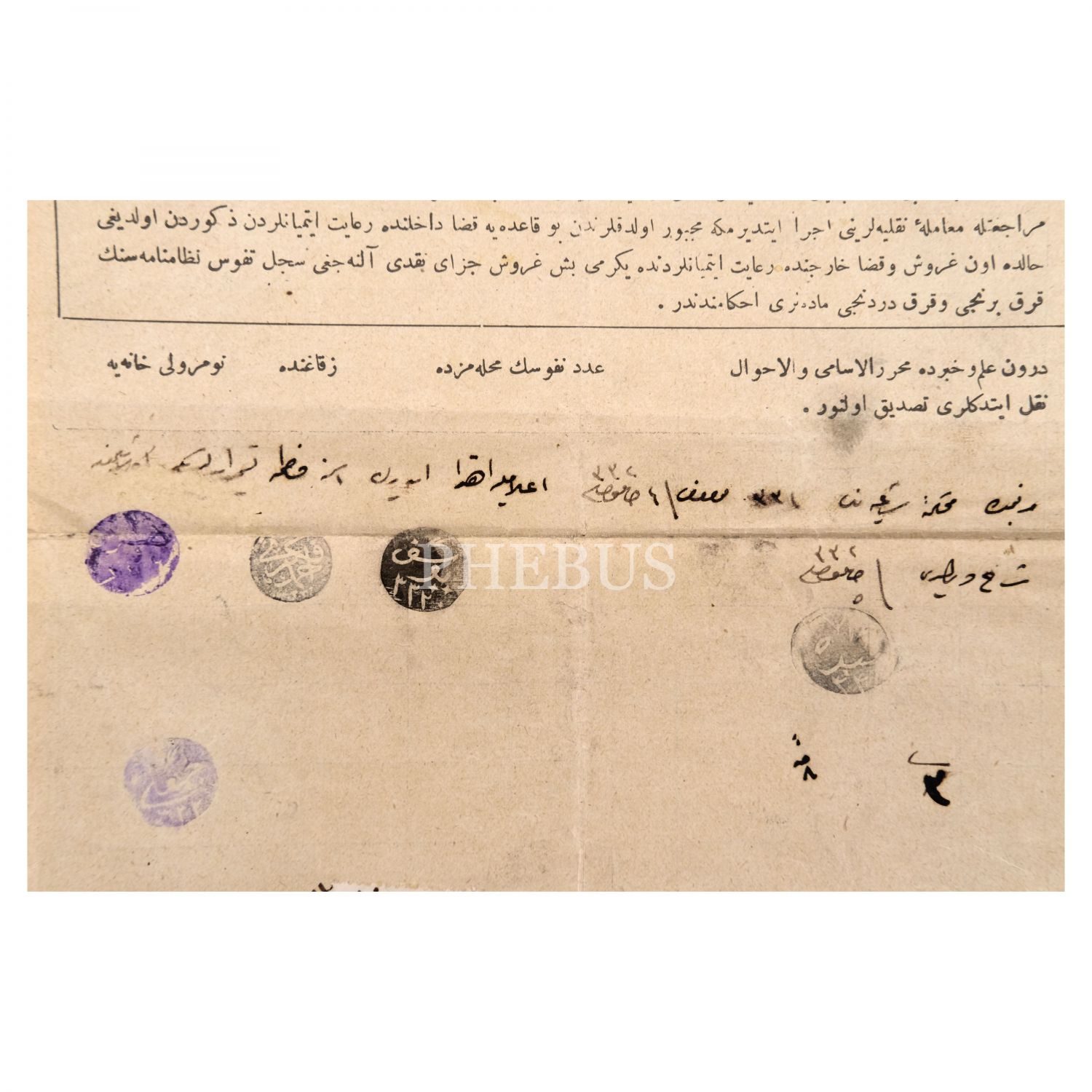 Malatya´nın Minaver Mahallesi´nde ikamet eden Kendiroğlu Ohannis´in, Ermeni eşi Varti Hanım´ın kendi isteğiyle İslam dinini seçtiğini, buna uygun olarak nüfusa bu şekilde kaydedilmesini arz ettiği dilekçesi ile Varti Hanım´ın nüfus kayıt evrakı, 21x31 cm...