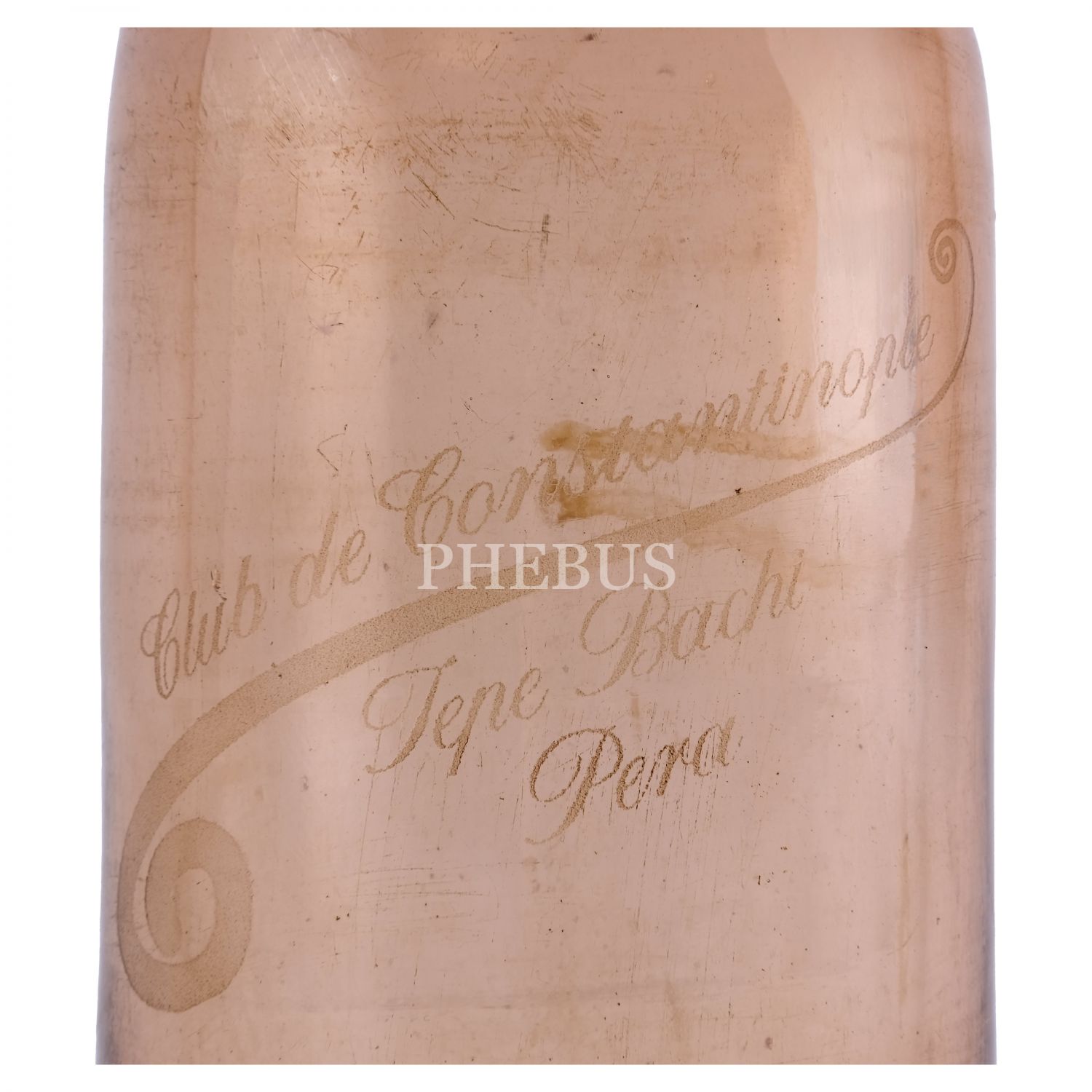 "Club de Constantinople / Tepe Bachi, Pera" yazılı cam şişe, 29,5x11,5 cm...