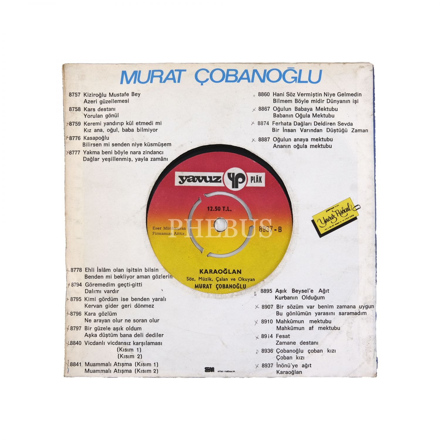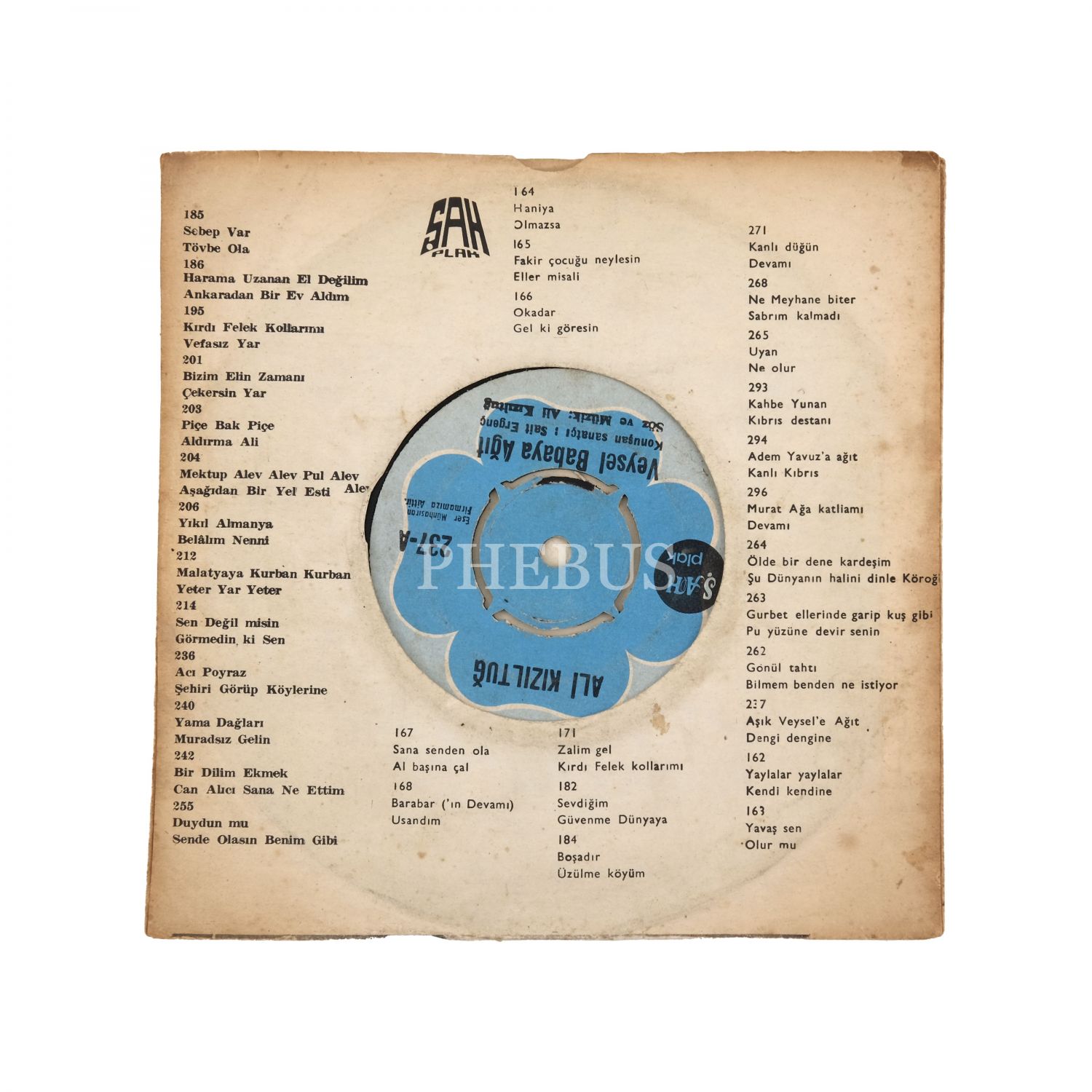 Bir zamanlar çok popüler olan "ağıt plakları"ndan 53 adet nadir örnek barındıran eşsiz bir koleksiyon... Lot içinde; 1970 Gediz Depremi, Ulus Faciası (1963 Ankara Uçak Kazası), 1967 Kayseri Stadyum Faciası gibi doğal ve toplumsal felaketlere, Kıbrıs Barış Harekatı´nda (1974) şehit düşen sivil ve asker vatandaşlarımıza, evlat acısı, ayrılık, gurbet çilesi, kan davası gibi gündelik acılara, İsmet İnönü ve Adnan Menderes gibi siyasi figürlerin yanı sıra Âşık Veysel ve Celal Güzelses gibi halk ozanlarına ve ses sanatçılarına -vefatlarının ardından- yakılmış ağıtlar yer almaktadır...