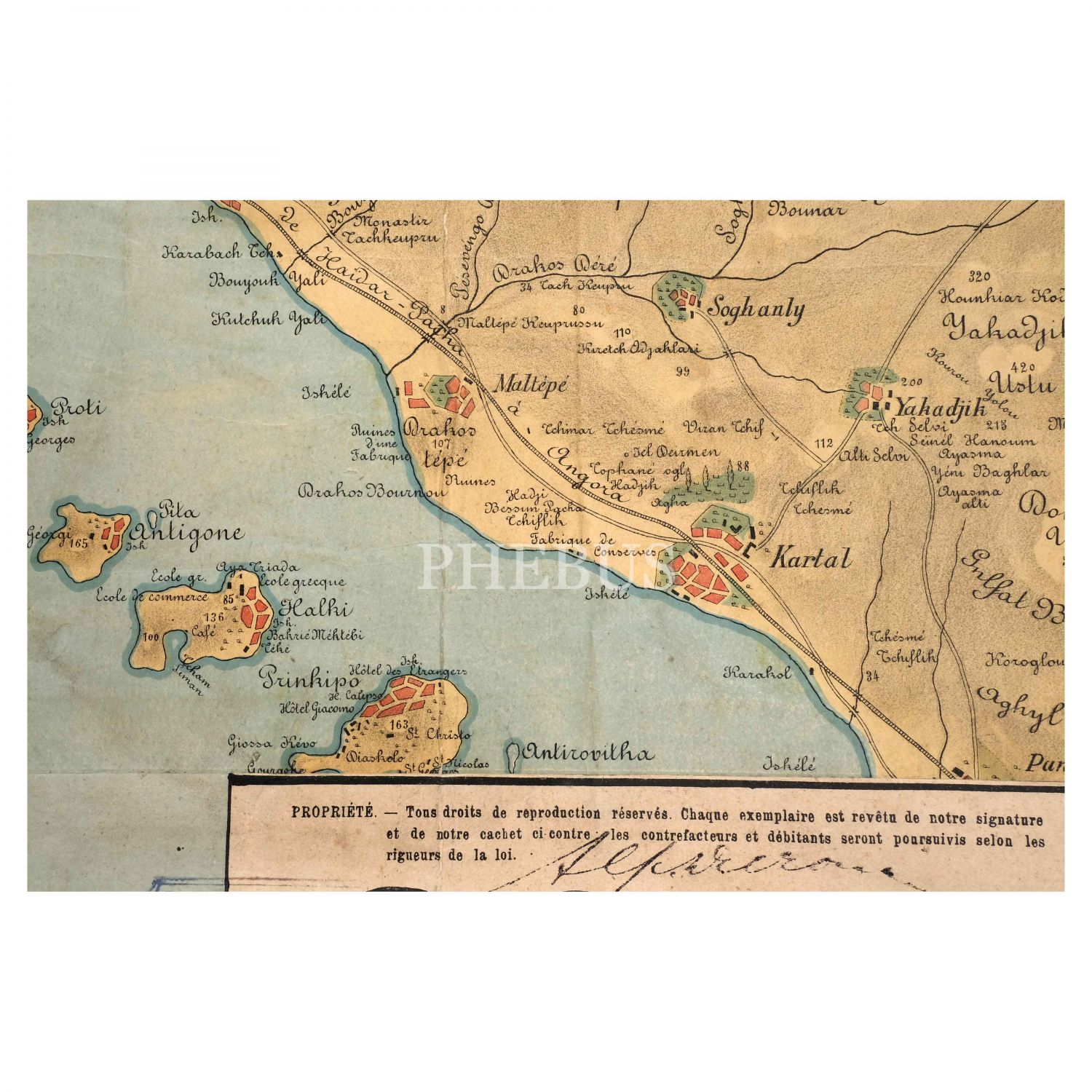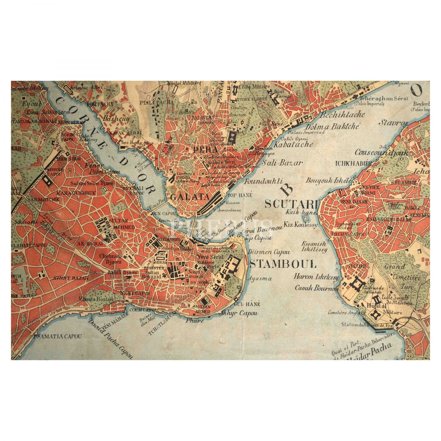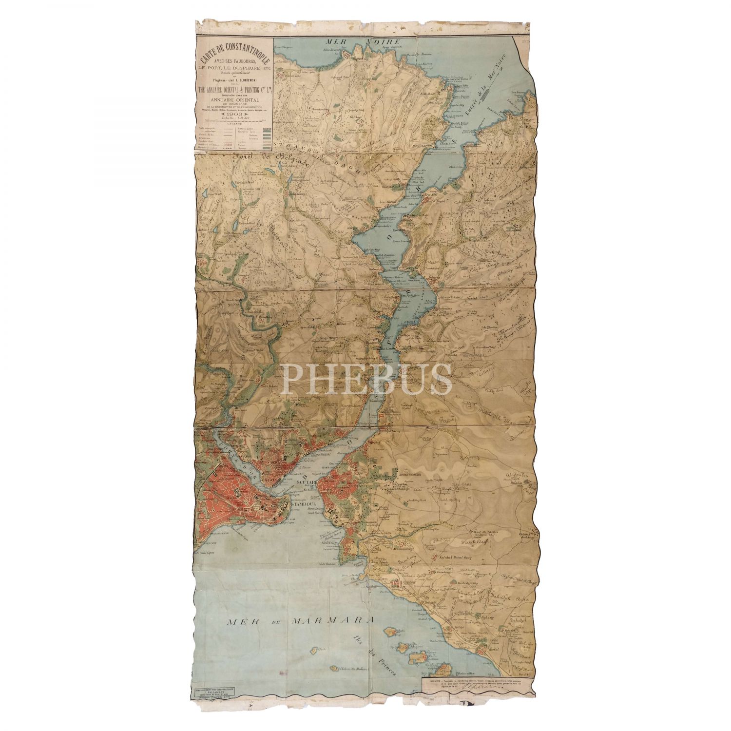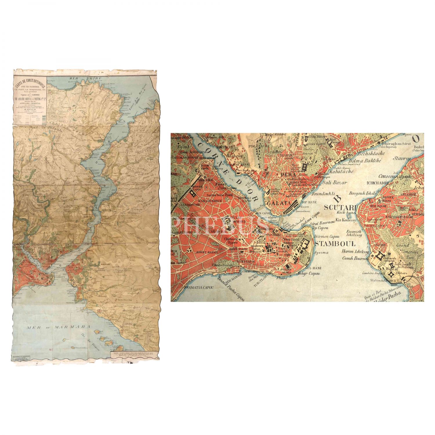 İnşaat/harita mühendisi J. Sloniewski tarafından hazırlanan 1903 yılı İstanbul haritası, "Carte de Constantinople", baskı: Etablissement Typo-Lithographique J. Pallamary - Grand Rue de Pera, No. 403, 57x114 cm...