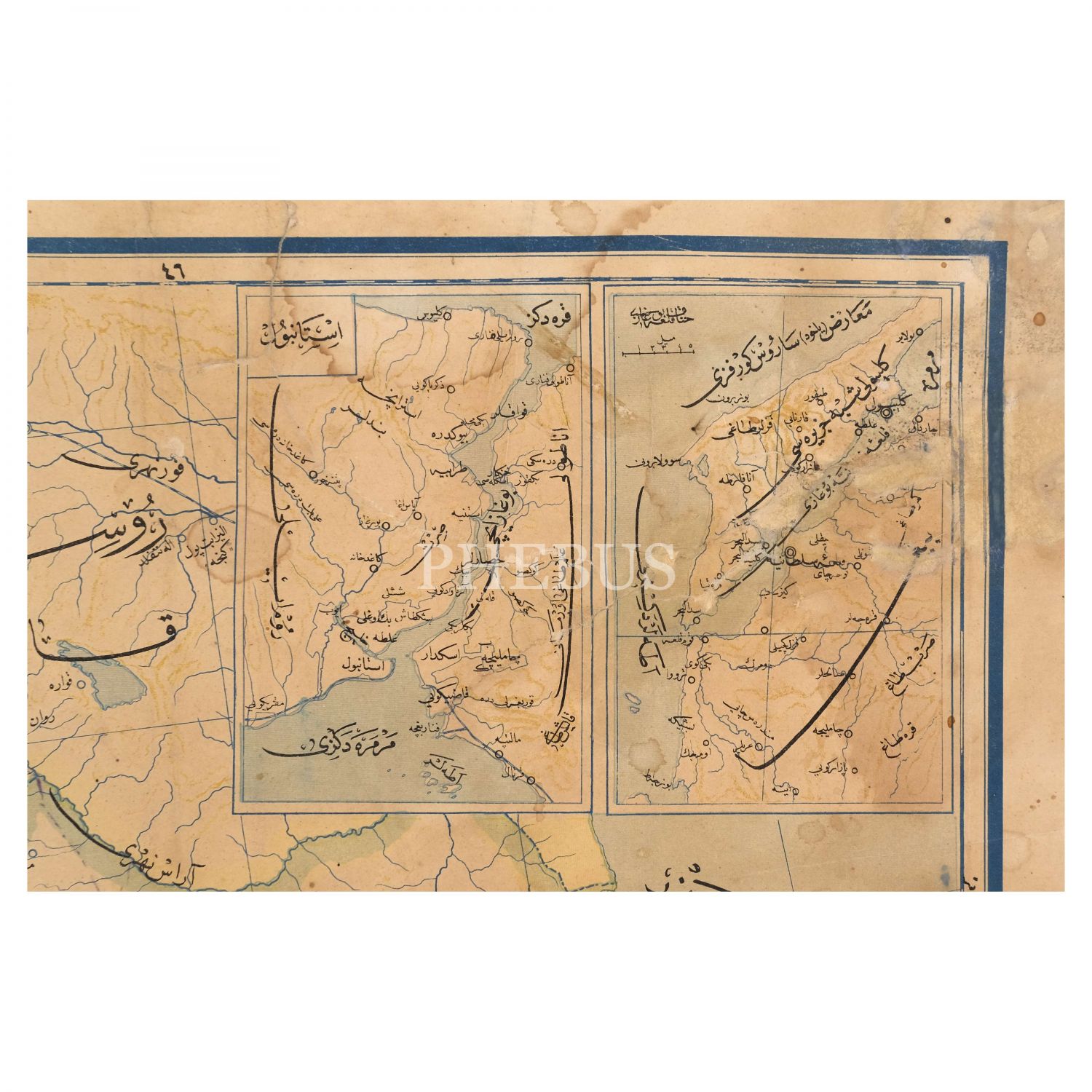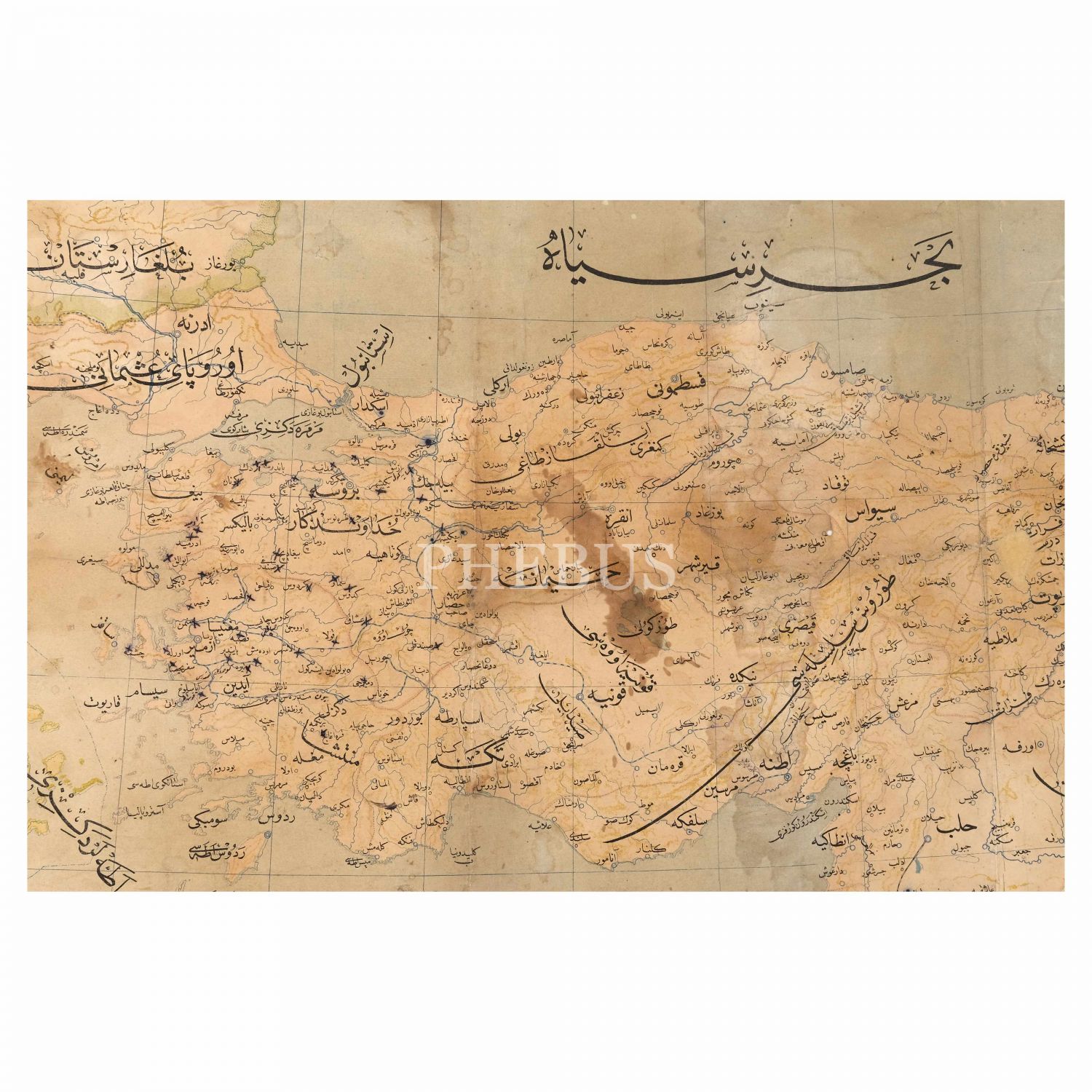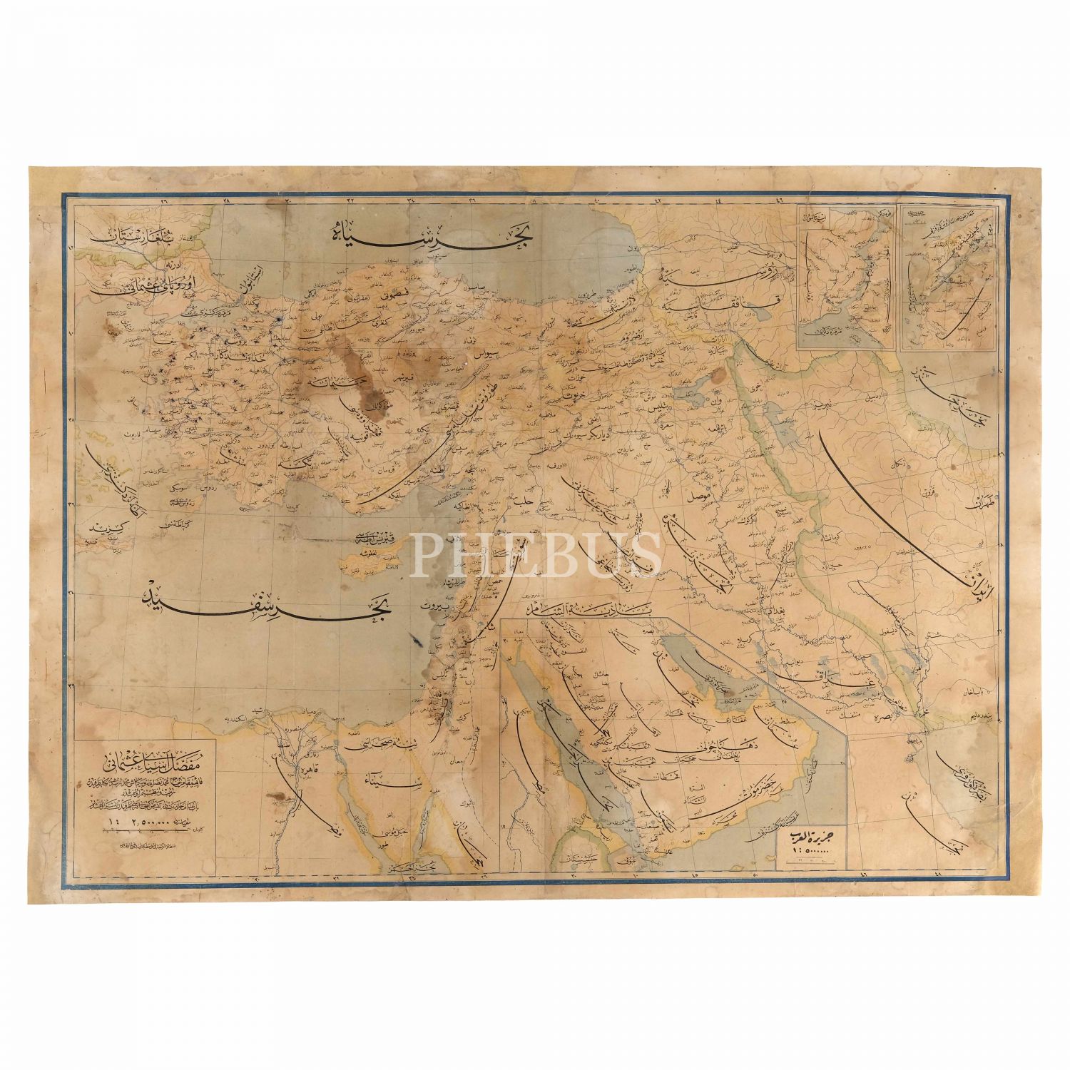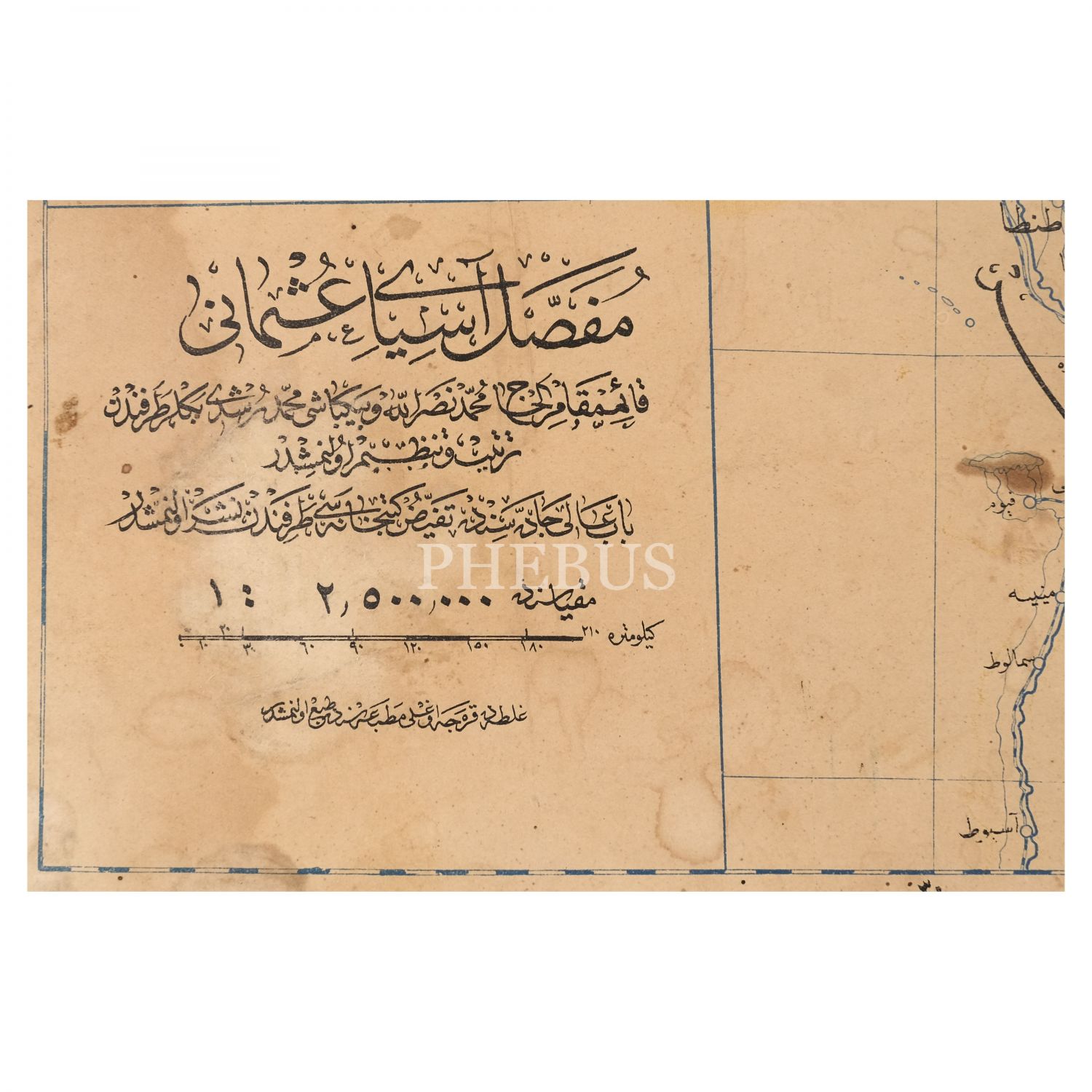 Kaymakam Hacı Muhammed Nasrullah ve Binbaşı Muhammed Rüştü Bey tarafından tertip edilen, Osmanlı Devleti´nin Asya Kıtası´nda bulunan topraklarını gösteren "Mufassal Asya-yi Osmani" başıklı harita, Tefeyyüz Kütüphanesi, 89x65 cm...
