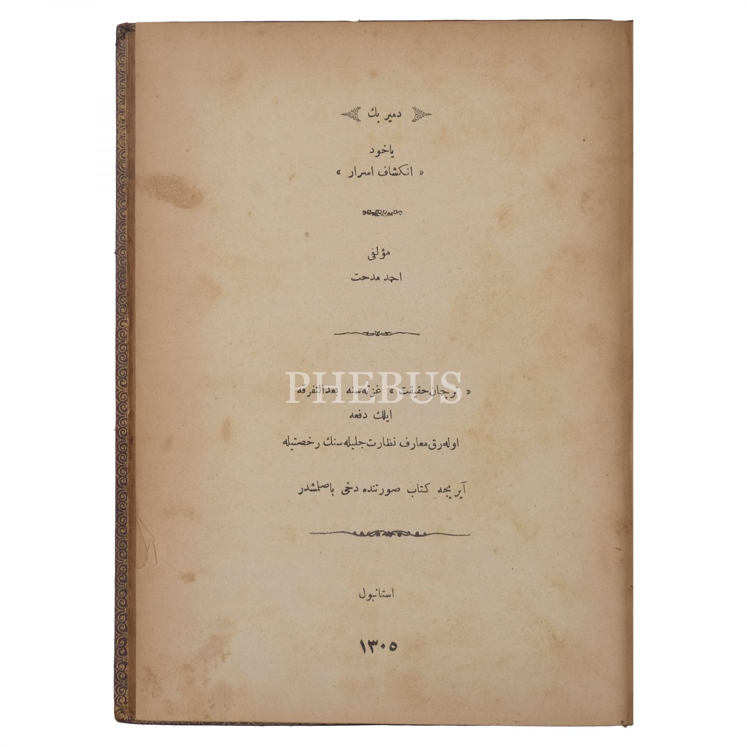 DEMİR BEY YAHUD İNKİŞAF-I ESRAR, Ahmed Mithat, 1305, Tercüman-ı Hakikat Matbaası, 293 sayfa, 17x25 cm...