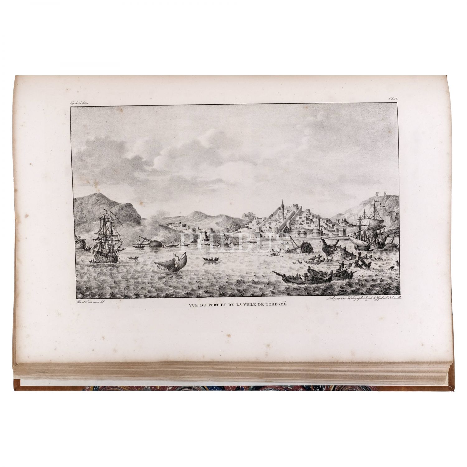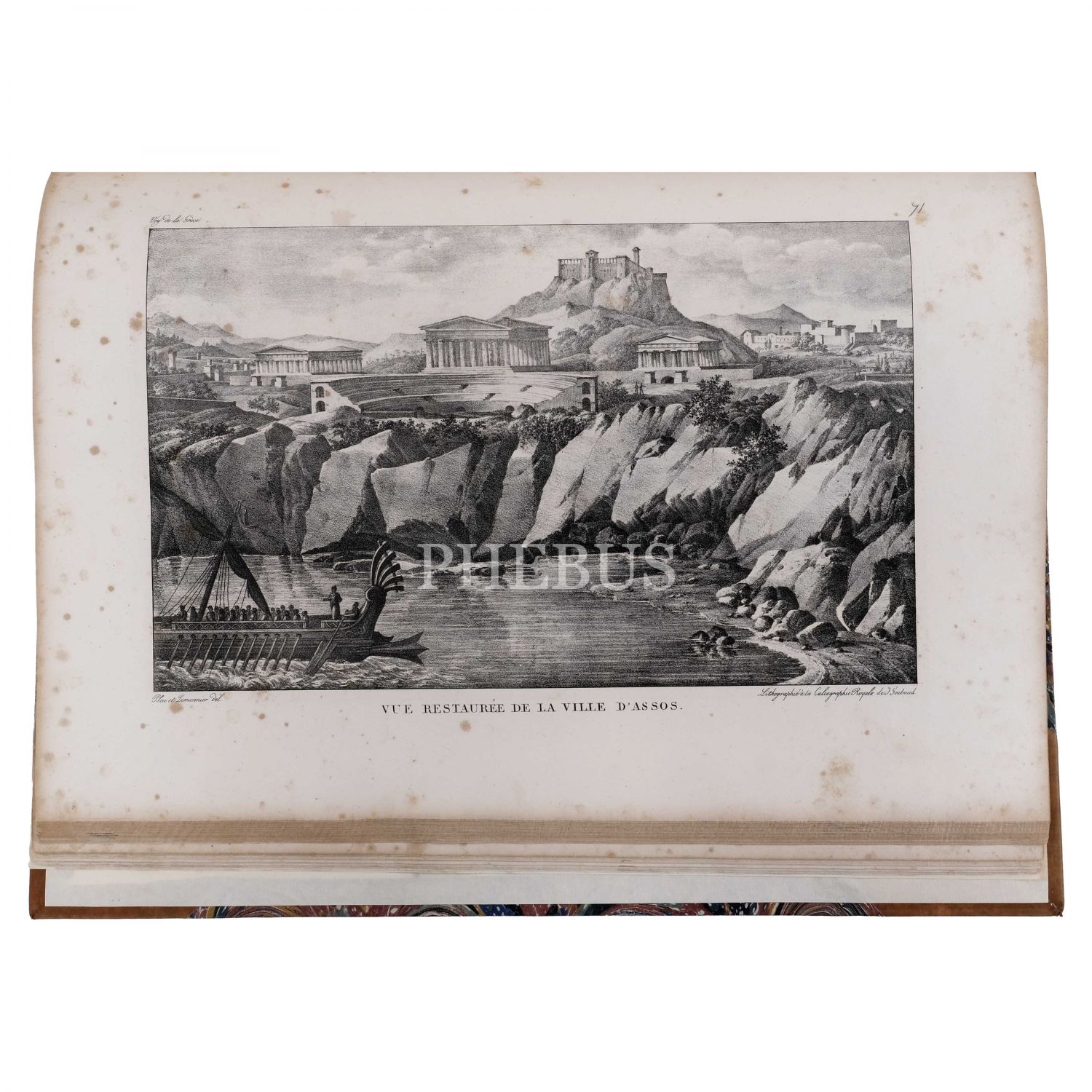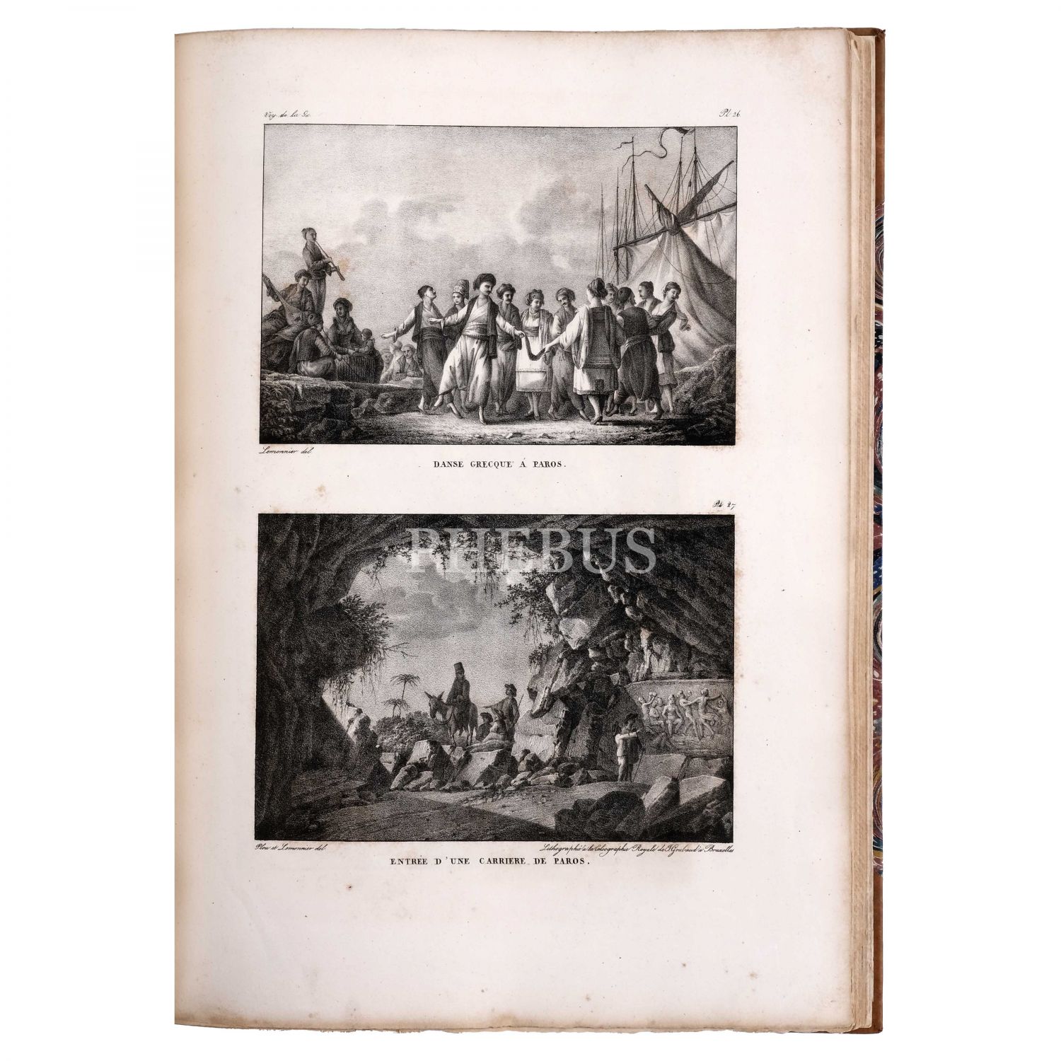 Fransız tarihçi, diplomat ve gezgin Marie-Gabriel-Florent-Auguste de Choiseul-Gouffier´ın, Yunanistan’ın antik kalıntılarını, coğrafyasını, toplumsal yaşamını ve manzaralarını kaleme aldığı seyatnamesinde yer alan gravür ve çizimlerin derlendiği, Brüksel baskı özel edisyon... Eserde, 1 katlanır harita (açık halde 74x54,5 cm boyutunda), 100 planş ve 28 ek gravür bulunmaktadır. Planş ve gravürler arasında Osmanlı İmparatorluğu sınırları altındaki bölgeler ve antik kentler de (İzmir, Efes, Bergama, Ege Adaları vd.) yer almaktadır. Sırtı panelli, altın yaldız dekor ve başlıklı, kapakları ebru desenli deri cildinde.