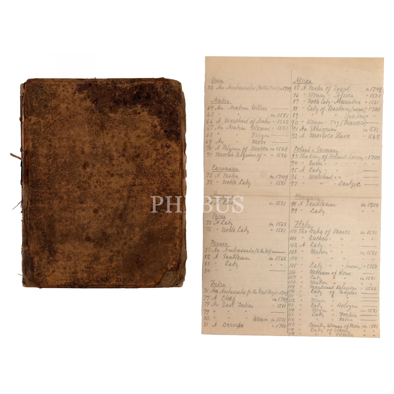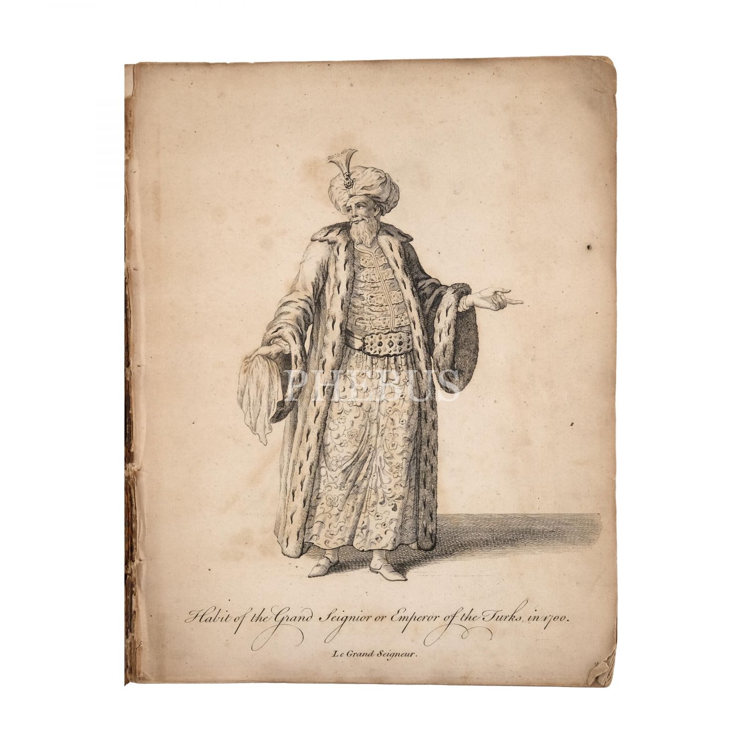 18. yüzyıl Osmanlı, Çin, Tataristan, Yunanistan, Balkan eyaletleri, Siyam (bugünkü Tayland), Arabistan, İran, Hindistan, Afrika, Mısır ve İtalya´nın çeşitli yüksek rütbeli görevlilerini temsil eden 119 levhadan oluşan derleme: 950 COSTUMES, 199 sayfa, 21x27,5 cm...