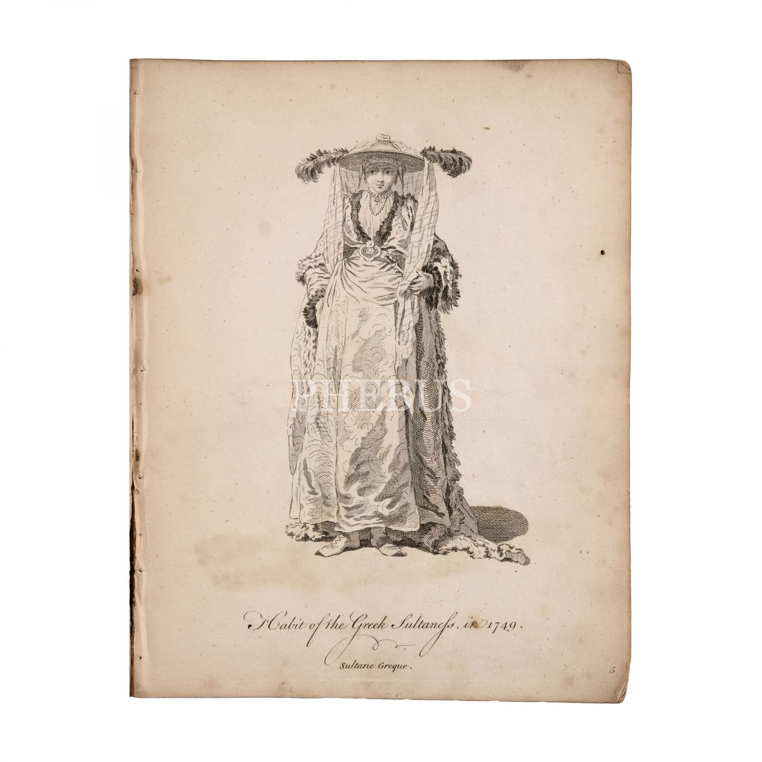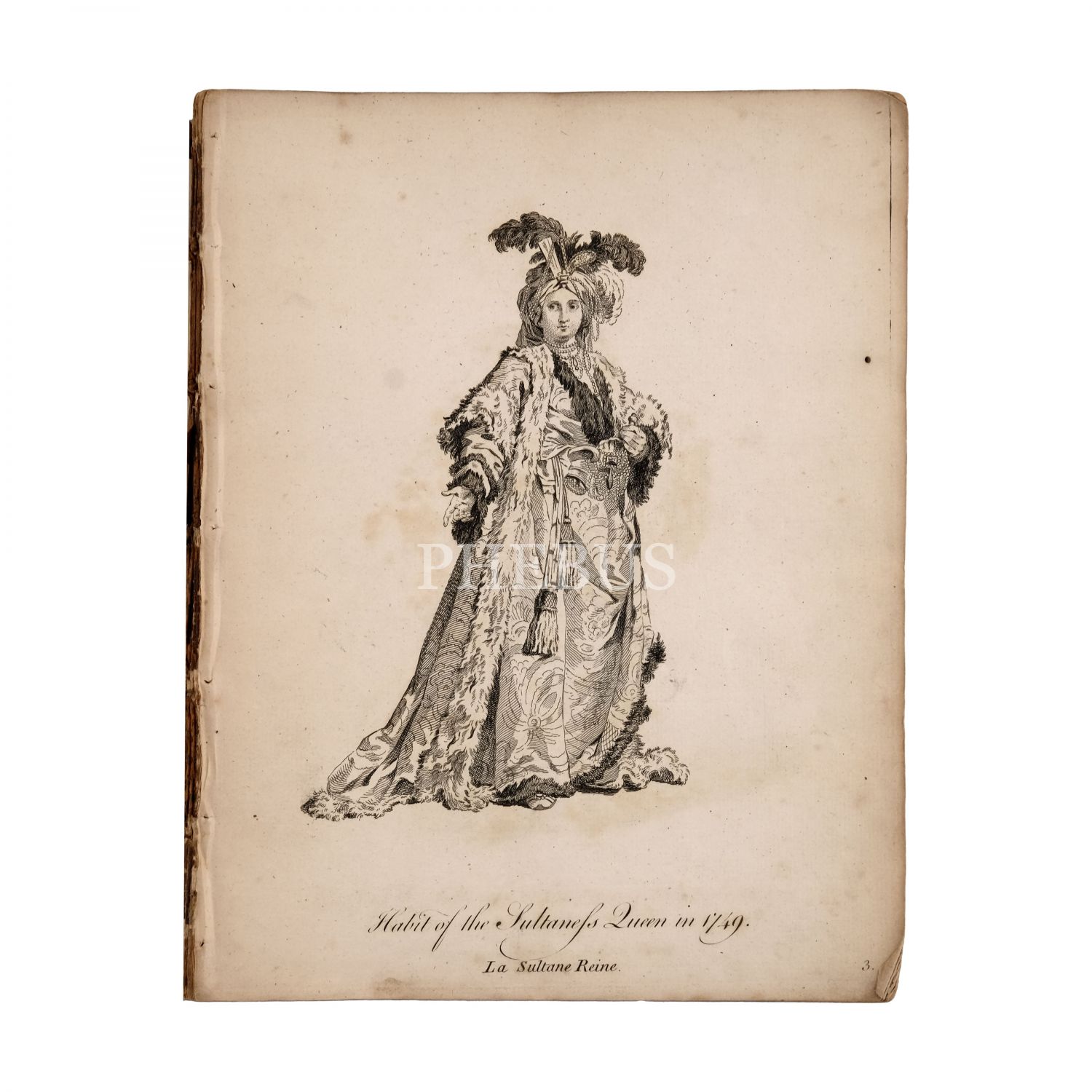 Osmanlı İmparatorluğu başta olmak üzere farklı ülkelerin insanlarını, özellikle yöneticilerini, saray görevlilerini ve egzotik sayılan tipleri gösteren gravürlerden oluşan derleme, farklı kaynaklardan alınmış bakır gravürlerin sonradan bir araya getirilip ciltlenmesiyle oluşturulmuştur. Osmanlı tiplerini konu alan gravürlerin matbu başlıklarına göre birçoğu 1749 tarihlidir. Bu gravürler arasında padişah, sadrazam, haseki sultan, vezir, şeyhülislam, yeniçeri ağası vd. rütbeli saray ve devlet mensuplarının tip ve kostüm tasvirleri yer almaktadır. Kitap içinde yer alan el yazısı bir listede hangi ülkelerden hangi gravürlerin yer aldığı kayıt altına alınmıştır. *Deri dönem cildi haliyledir: Arka kapak eksik, ön kapak ayrık, sırt formalar halinde dağılmış.
