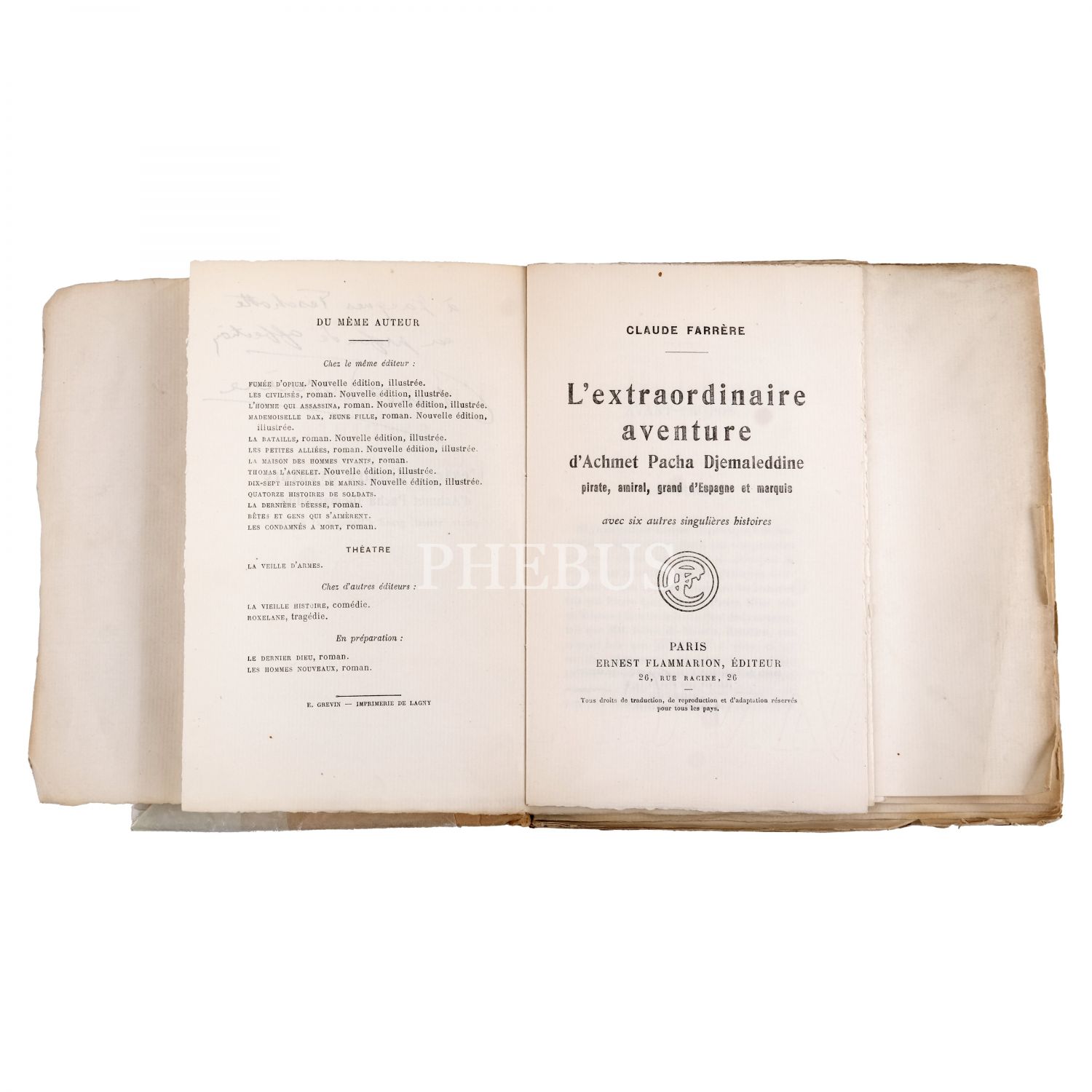 L´EXTRAORDINAIRE AVENTURE D´ACHMET PACHA DJEMALEDDINE (Pirate, amiral, grand d´Espasgne et marquis), 1921, Ernest Flammarion, Editeur, 282 sayfa, 19,5x13,5 cm (marjinle birlikte genişlik 18 cm)...