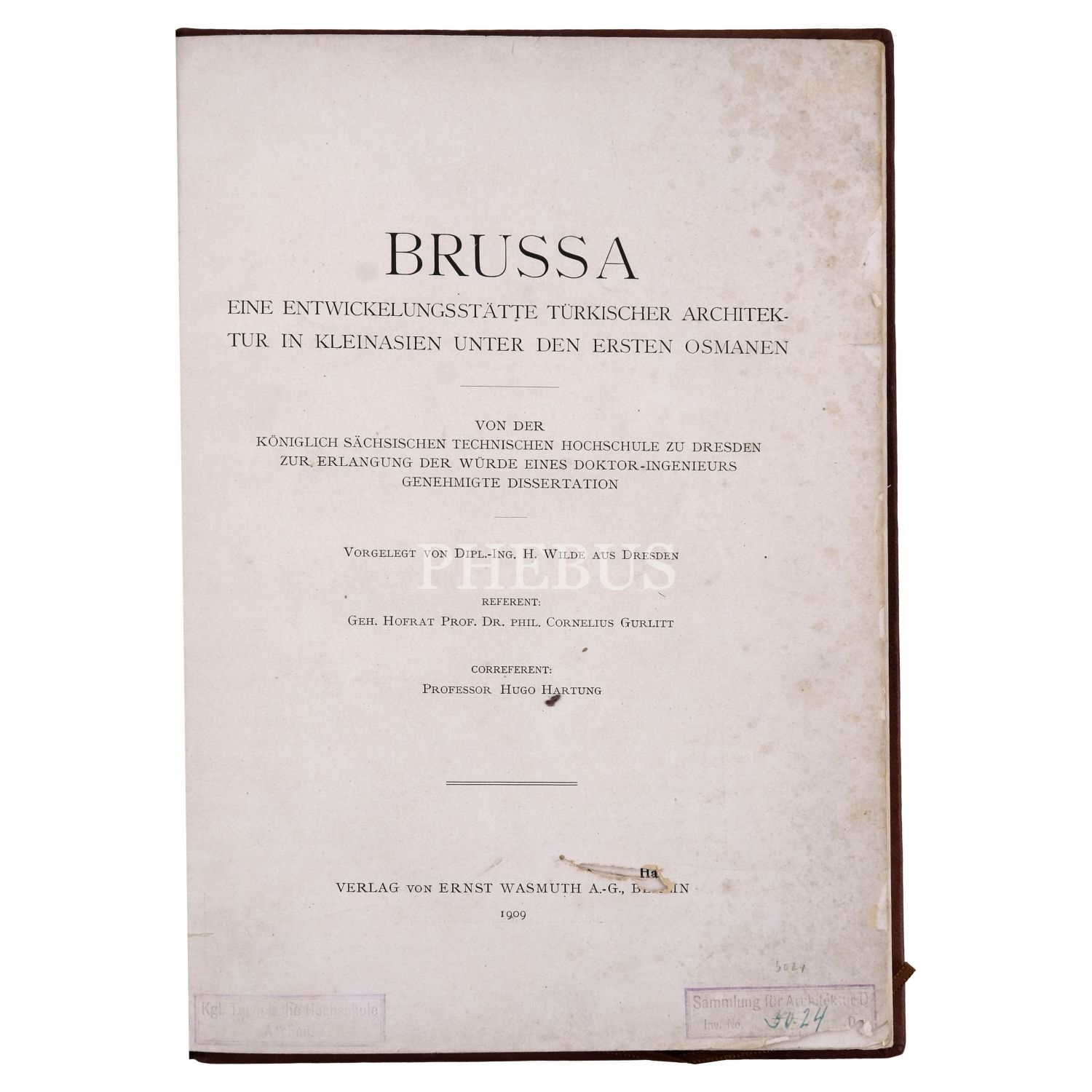 BRUSSA (Eine Entwicklungsstätte türkischer Architektur in Kleinasien unter den ersten Osmanen), Hans Wilde, 1909, Verlag von Ernst Wasmuth A.-G., Berlin, 135 sayfa, 20,5x29 cm...