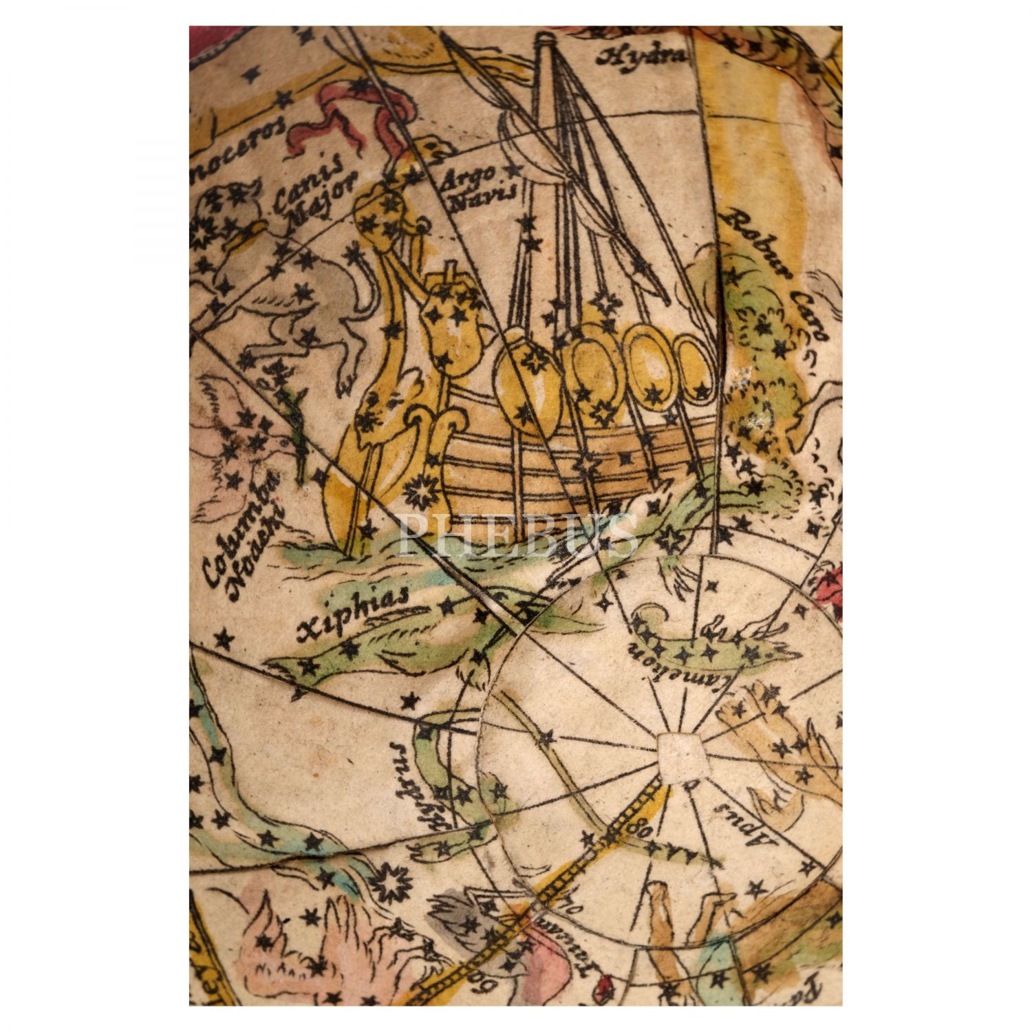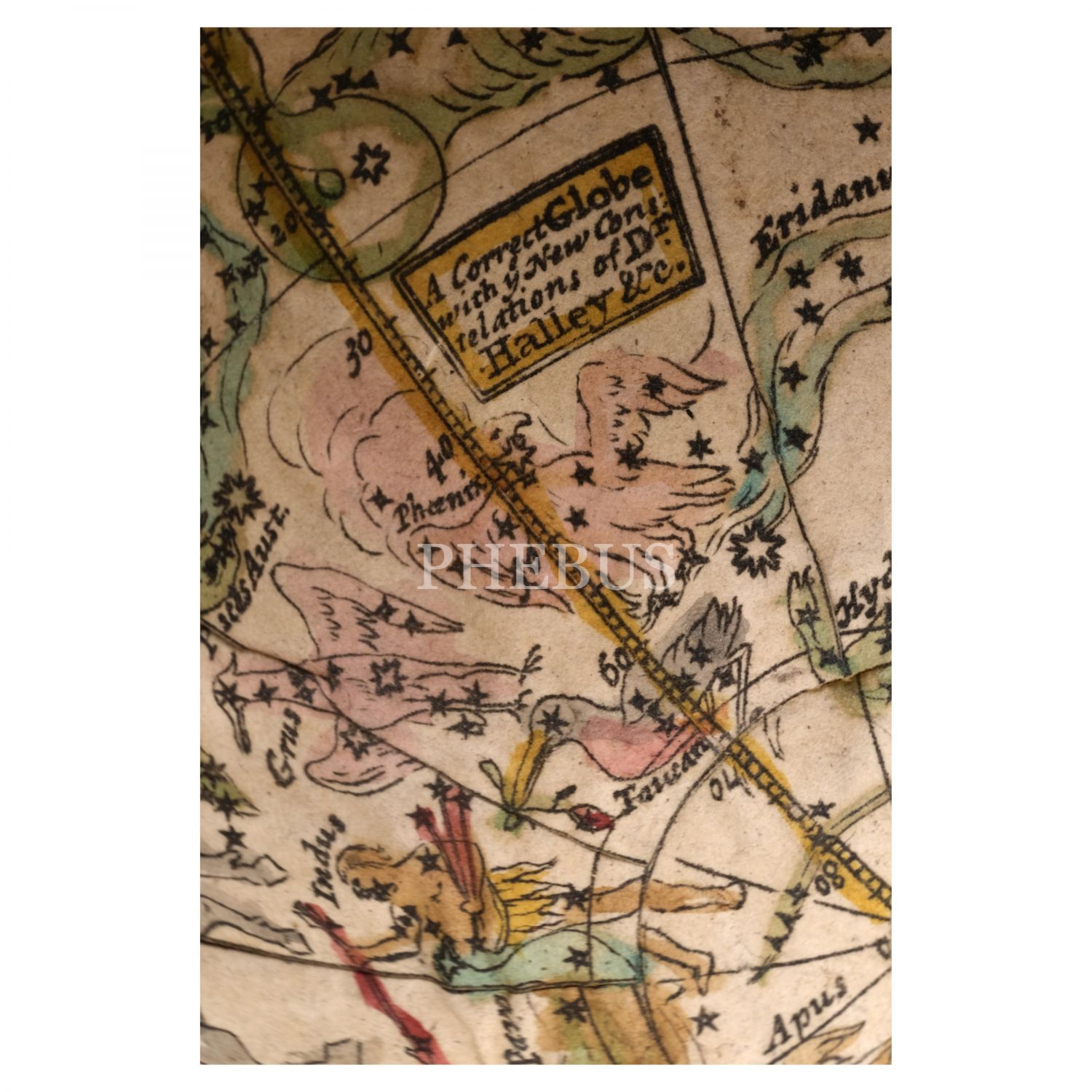 Yaklaşık 1775 yılında Londra´da üretilen kürede; İngiliz denizci ve kâşif James Cook´un, Büyük Okyanus´u keşfetmekle görevlendirildikten sonra izlediği rota (1768-1771) gösterilmiştir. Kürede, California bir yarımada olarak çizilmiş; Kuzeybatı ise "Bilinmeyen Bölgeler" olarak nitelendirilmiştir. Köpekbalığı derisi kaplı kutusunun içbükey yüzeyine Kuzey ve Güney gökyüzünün göksel haritaları ve Zodyak sembolleri işlenmiş olup, "Dr. Halley´in yeni takımyıldızlarıyla doğru bir küre vb." ( A correct globe with ye new constellations of Dr Halley etc.) yazısı da bulunmaktadır.