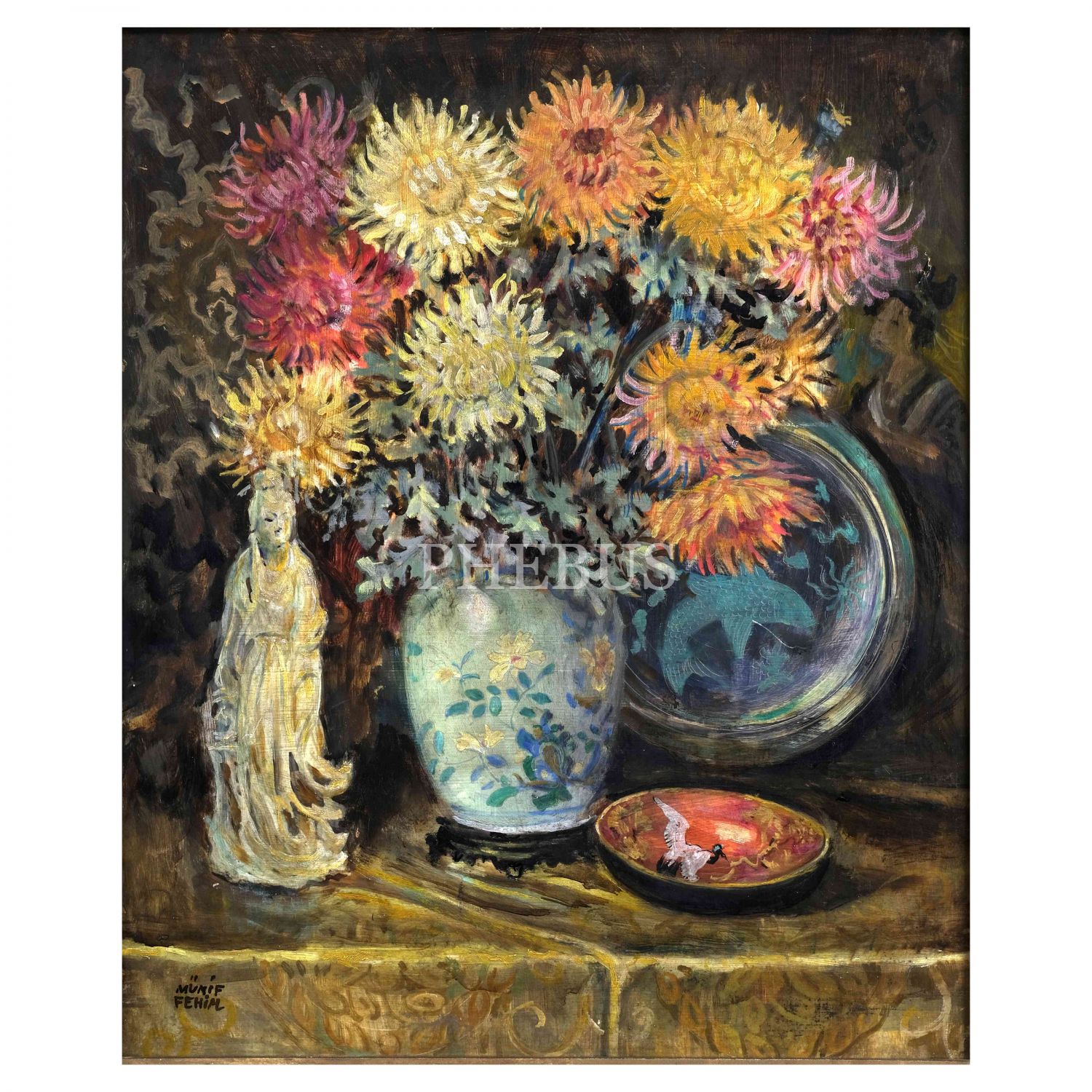 Münif Fehim imzalı natürmort tablo, duralit üzerine yağlı boya, 60x70,5 cm...