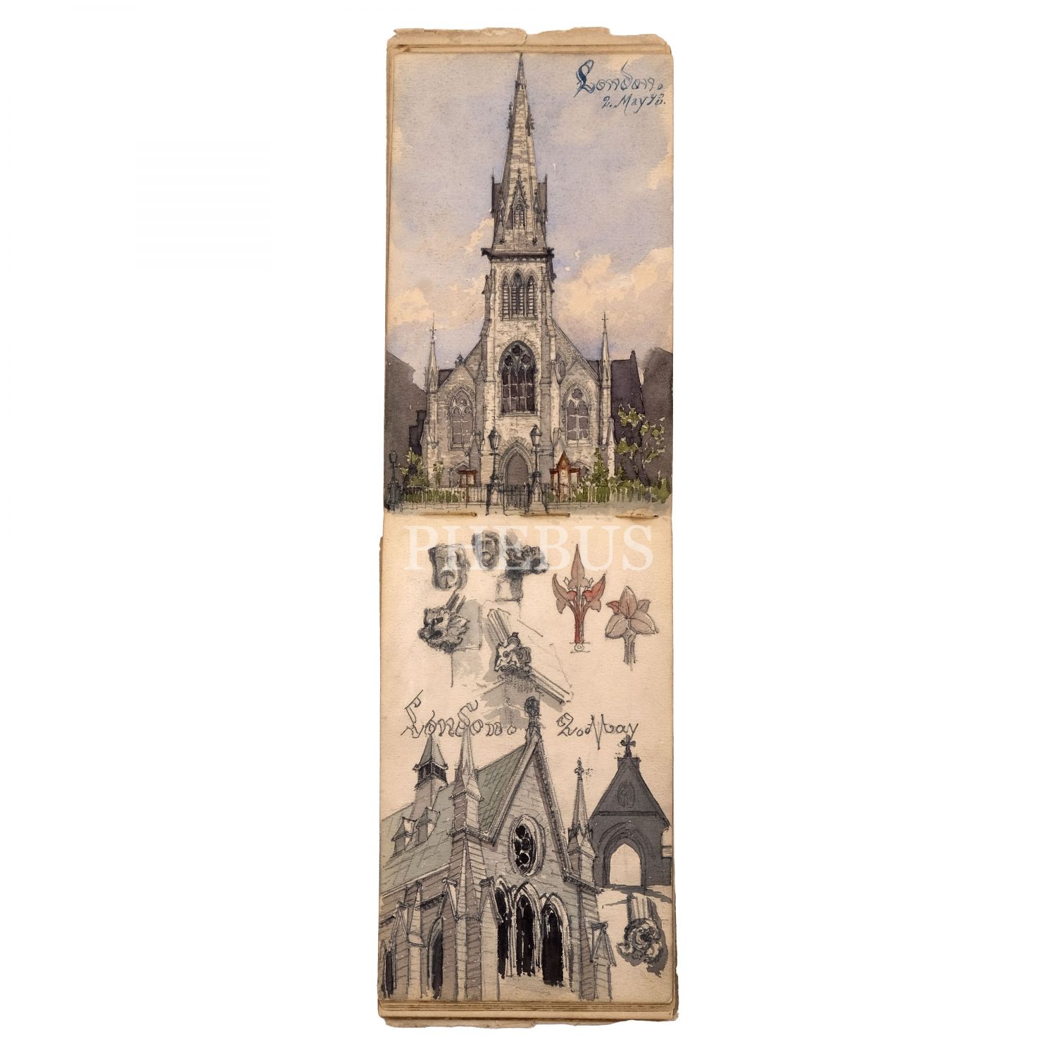 Albümdeki resim ve eskizler çoğunlukla İngiltere (Londra ağırlıklı) ve Almanya´da (Berlin, Hannover, Regensburg, Münih vd. şehirler) bulunan kiliselere aittir. Renkli resimler sulu boya ile çizilmiştir. Resimlerin altına kısa yer/mekan bilgileri not düşülmüş; bazılarınaysa tarih atılmıştır. Atılan tarihlere göre albüm 1896-99 yılları arasında aktif olarak kullanılmıştır. Albüm içinde Osmanlıca "Berlin Hatıratı" yazılı bir kaligrafik yazı mevcuttur.