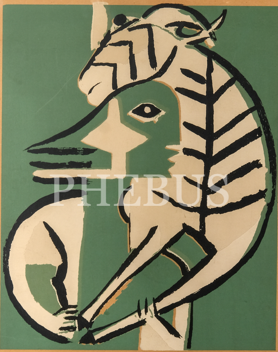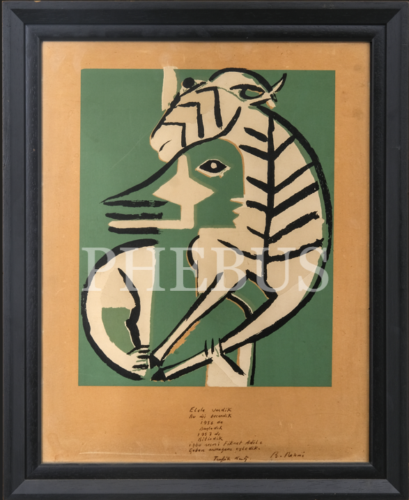 Bedri Rahmi Eyüboğlu ve Tevfik Kent´in ortaklaşa hazırlayıp, arkadaşları Fikret Adil´e armağan ettikleri resim, kâğıt üzerine guaj boya, resim 39x50 cm, çerçeve 48x59 cm...