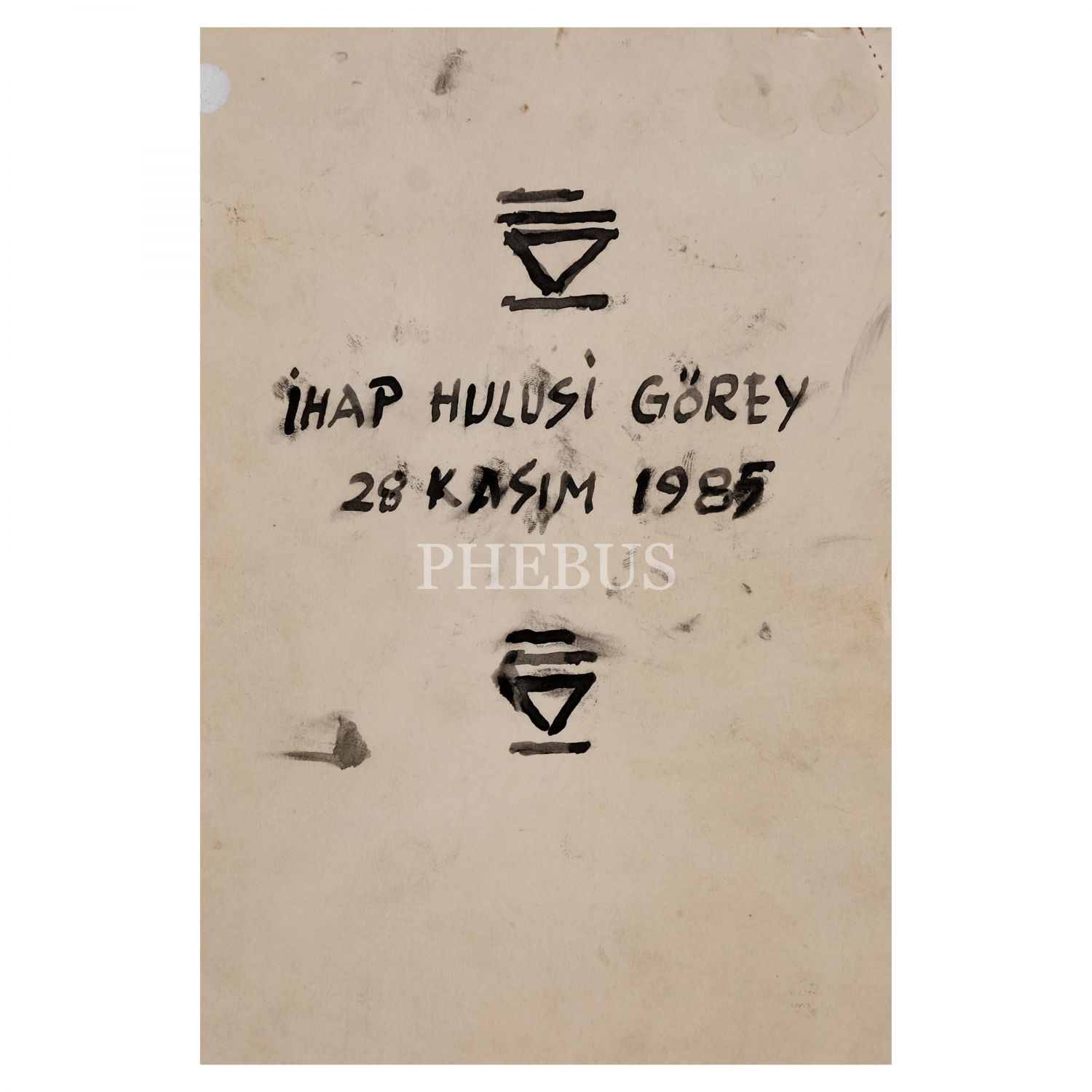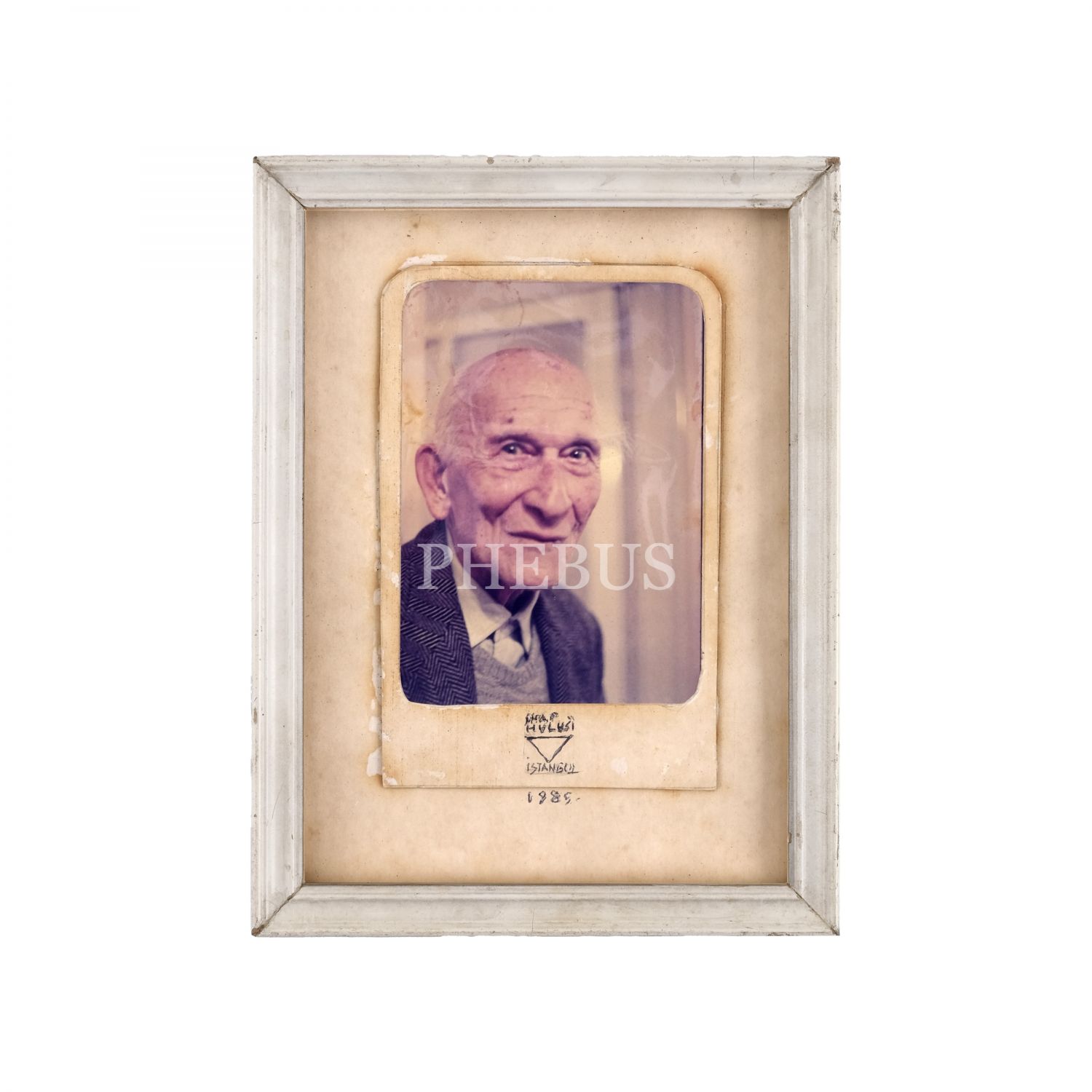Türkiye’de modern grafik tasarımın ve afiş sanatının öncüsü olan İhap Hulusi Görey’in, ömrünün son yıllarında, 87. yaş gününde çekilmiş; sanatçıya ait dört ıslak imza ile el yazısı kısa açıklama notlarını içeren renkli bir fotoğrafı, fotoğraf 9x12 cm, paspartu 15x20,5 cm, çerçeve 17x23 cm...