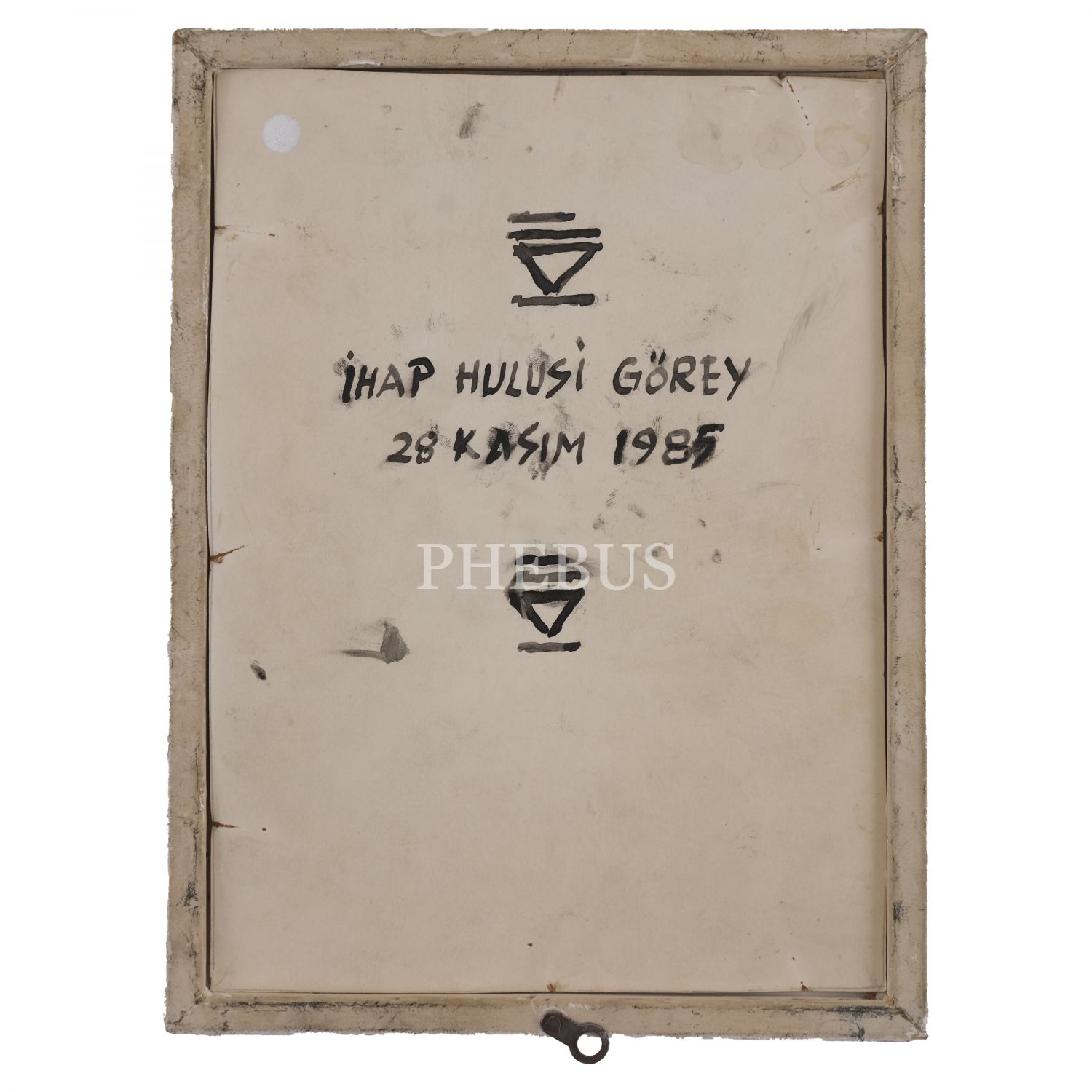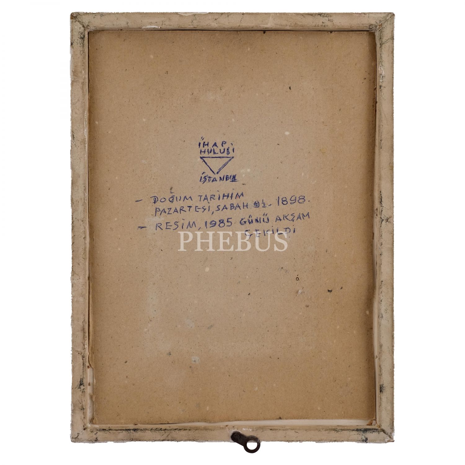 Fotoğrafın yapıştırıldığı paspartunun arka yüzüne İhap Hulusi tarafından şu notlar düşülmüştür: "-Doğum tarihim pazartesi, sabah 9 (1/2), 1898. -Resim, 1985 günü akşam çekildi." Çerçeve kartonuna ise yine kendisi tarafından "İhap Hulusi Görey - 28 Kasım 1985" notu düşülmüştür. Fotoğraf; ön yüzü, paspartunun arka yüzü ve çerçeve kartonu olmak üzere toplamda dört kez imzalanmıştır.