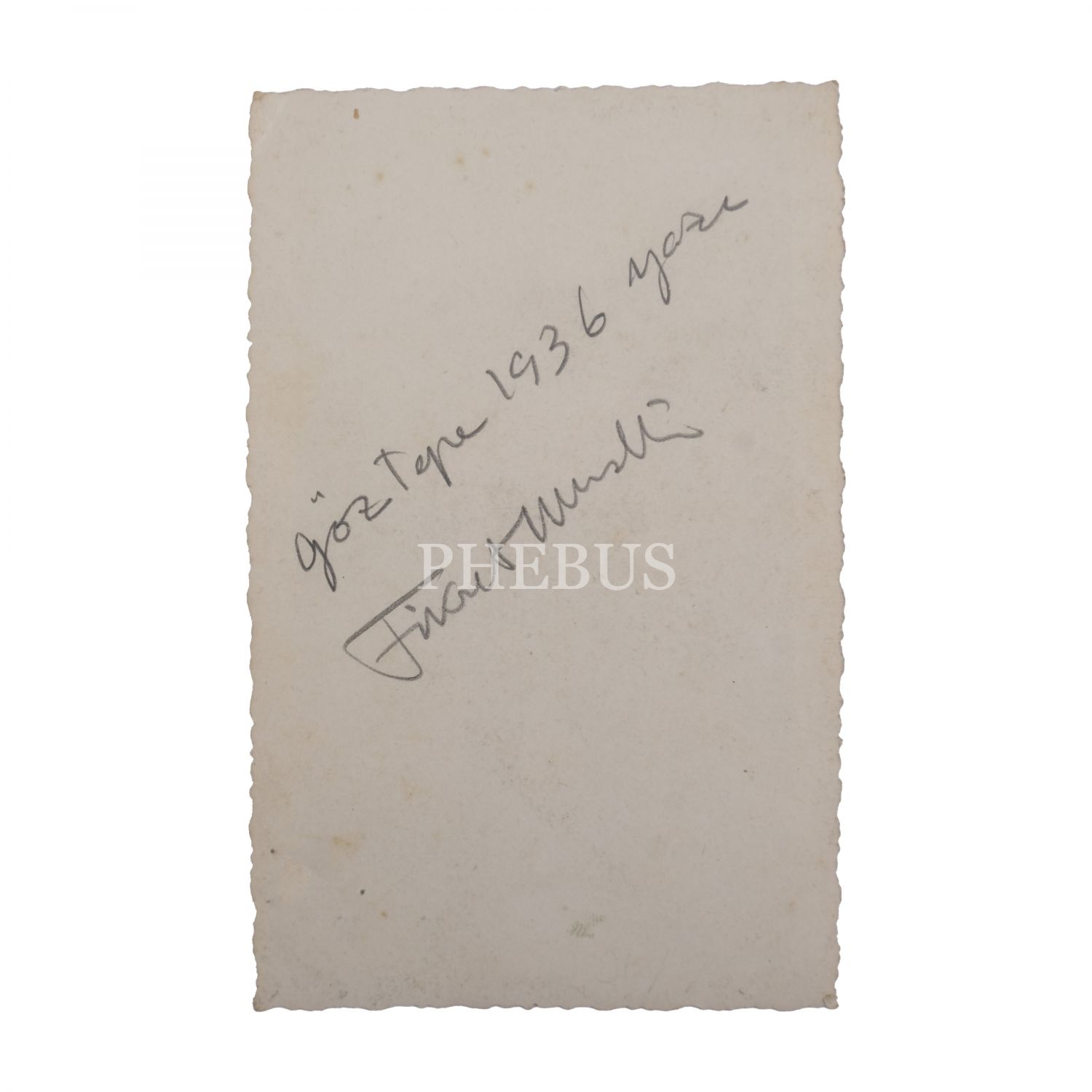 Sağlığında kendisine pek fazla bir ün ve para getirmeyen resimleri, şimdi milyonlara satılan Fikret Mualla, hiçbir akımdan etkilenmeyen, hiç kimseye benzemeyen özgün tarzıyla olduğu kadar; parasızlık, ilgisizlik ve sıkıntılarla geçen, zaman zaman yolu akıl hastanesine uğrayan çalkantılı ve bohem yaşamıyla da efsaneleşen bir ressamdı. Müzayedeye sunulan fotoğrafın arkası, ressam tarafından "Göztepe 1936 yazı" ibaresiyle imzalanmış.