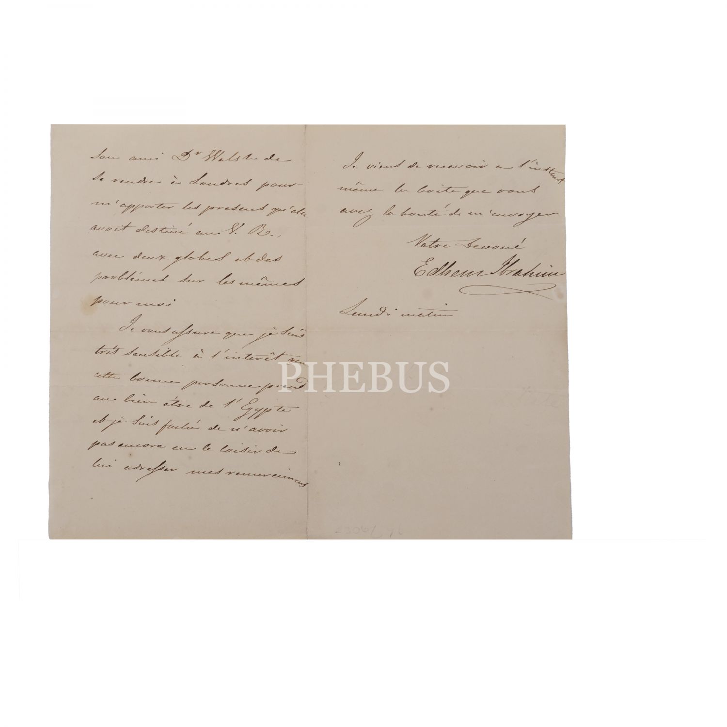 Osmanlı Devleti sadrazamlarından İbrahim Ethem Paşa´nın, 1839 senesinde el yazısıyla kaleme alıp imzaladığı Fransızca mektubu,