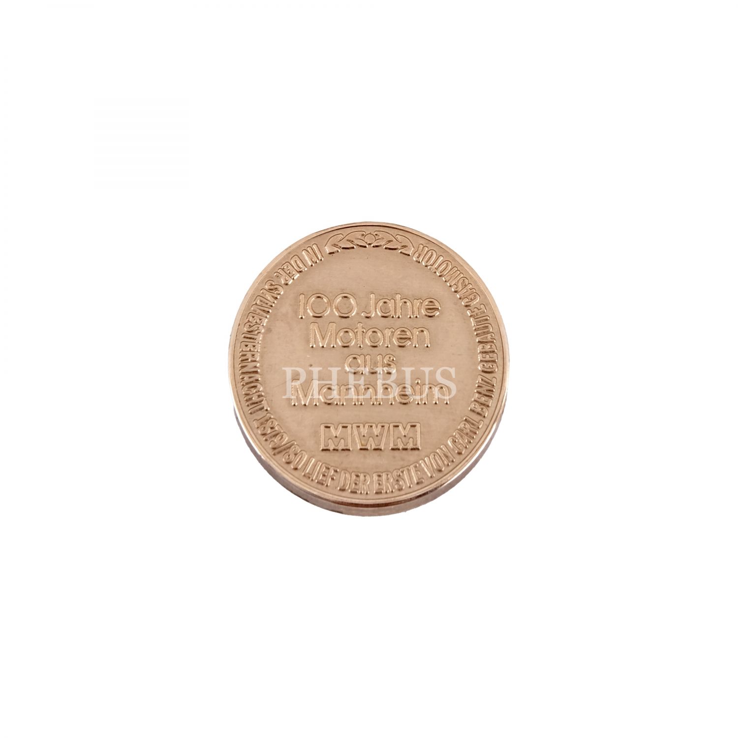 Motoren-Werke Mannheim (MWM) şirketinin, Carl Benz’in 1879/80’de geliştirdiği ve patentini aldığı gaz motoru ile Mannheim’da motor üretiminin 100. yılı anısına ürettiği altın hatıra parası/anı madalyonu...