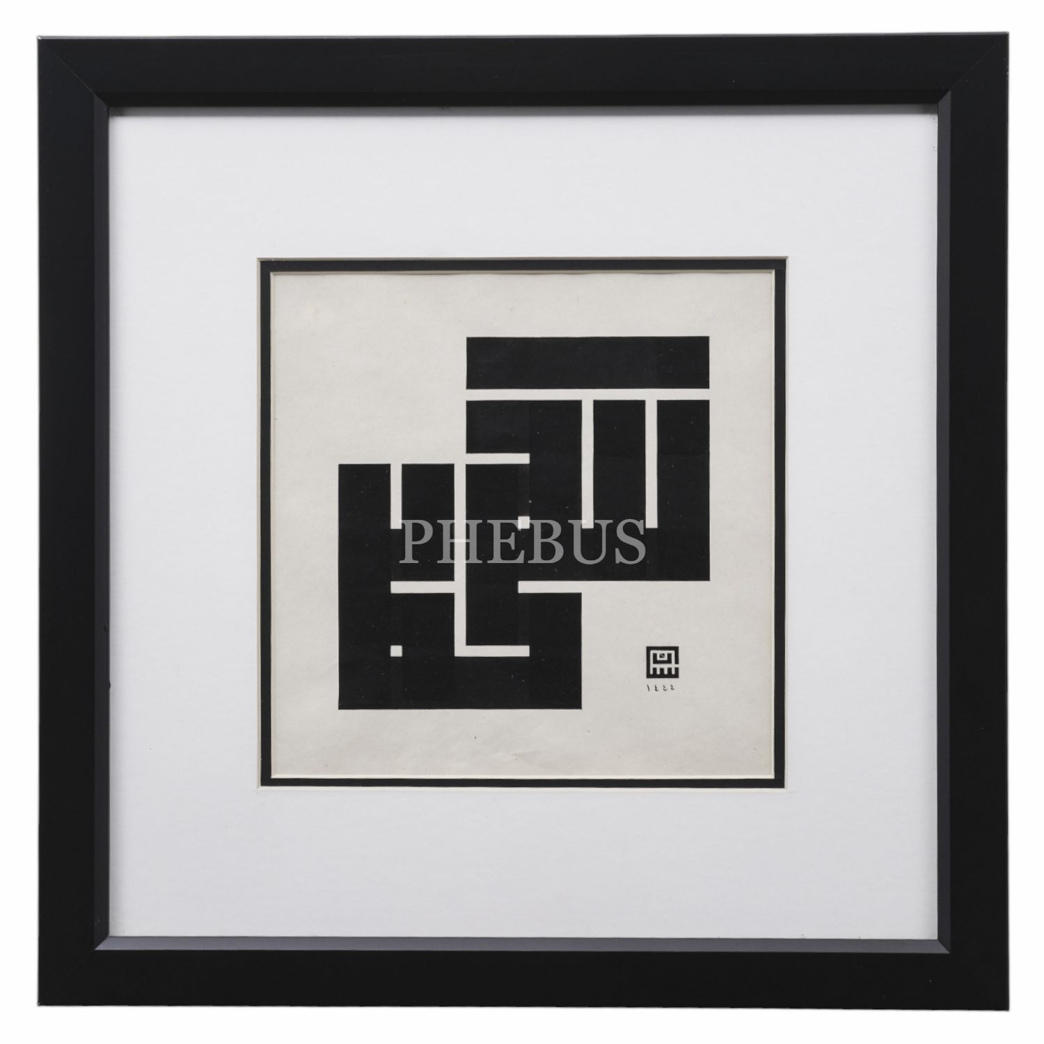 Sinan (Doğan) ketebeli ism-i Celâl (Allah) ve ism-i Nebî (Muhammed) yazılı mâkılî levha, 1444 tarihli, yazı ölçü: 19x19, çerçeve içi ölçü: 32x32 cm...
