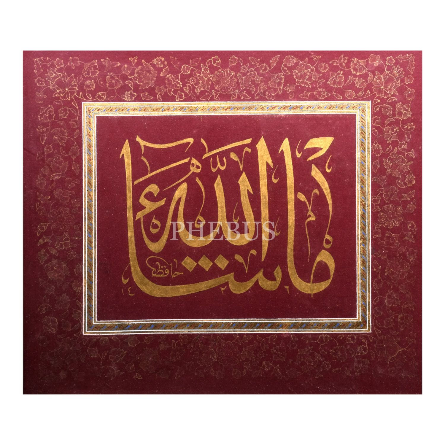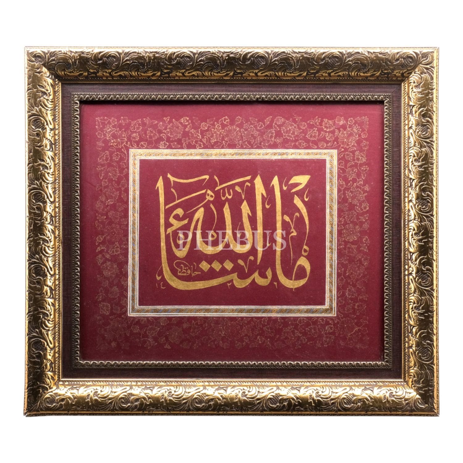 Hâfız (Yusuf Sezer) ketebeli celî sülüs mâşâallah yazısı, 1426 tarihli, yazı ölçü: 27x21 cm, çerçeve içi ölçü: 37x43 cm...