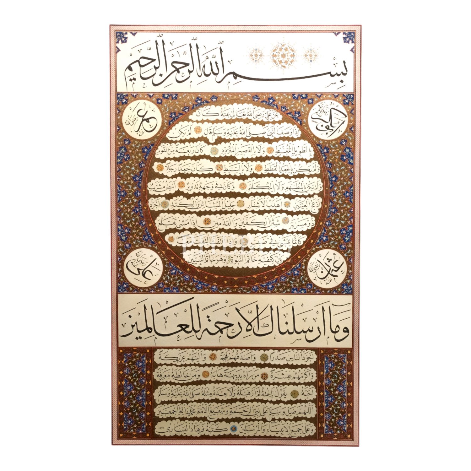 Büyük boy baskı hilye, yazı ölçü: 32x55 cm, çerçeve içi ölçü: 56x79 cm...