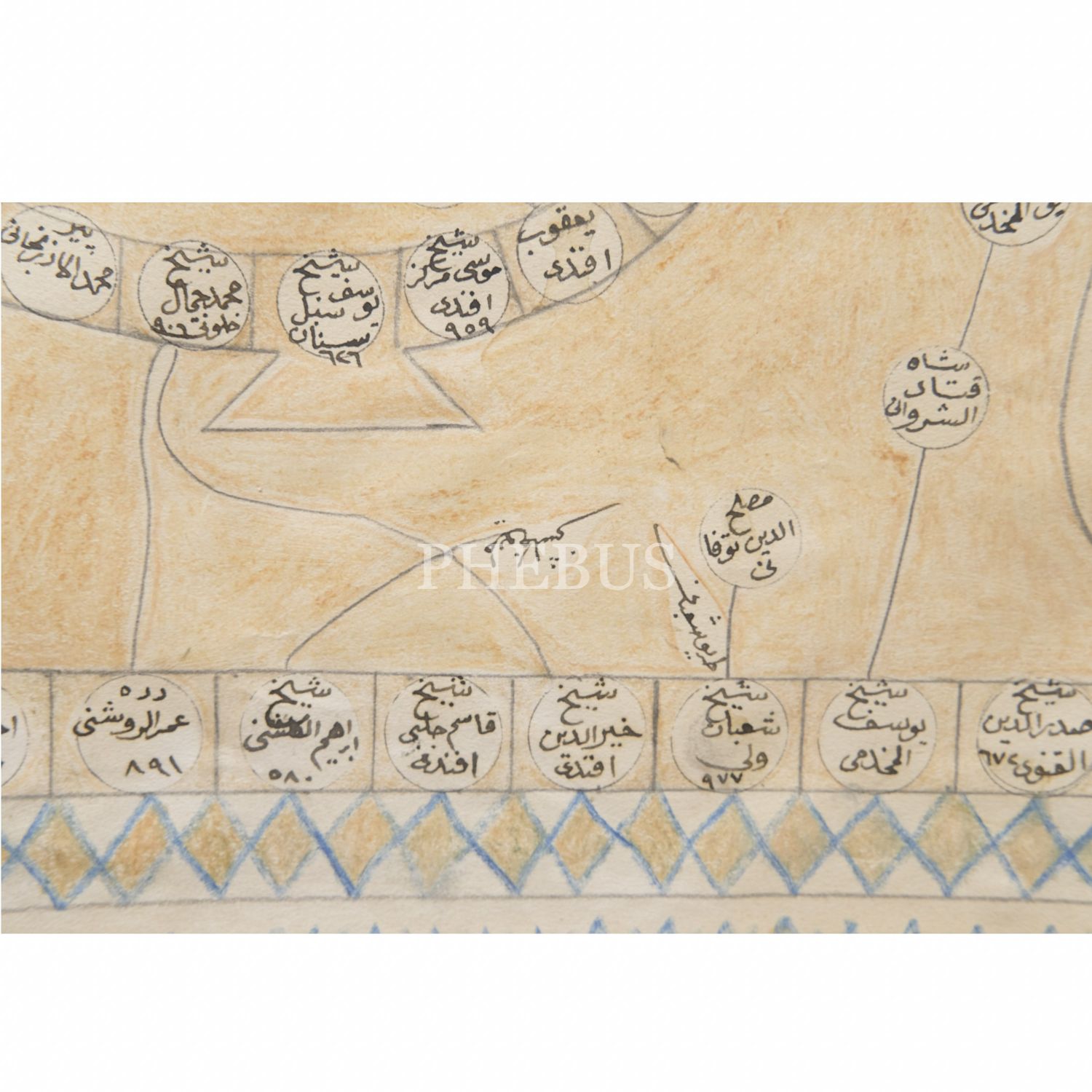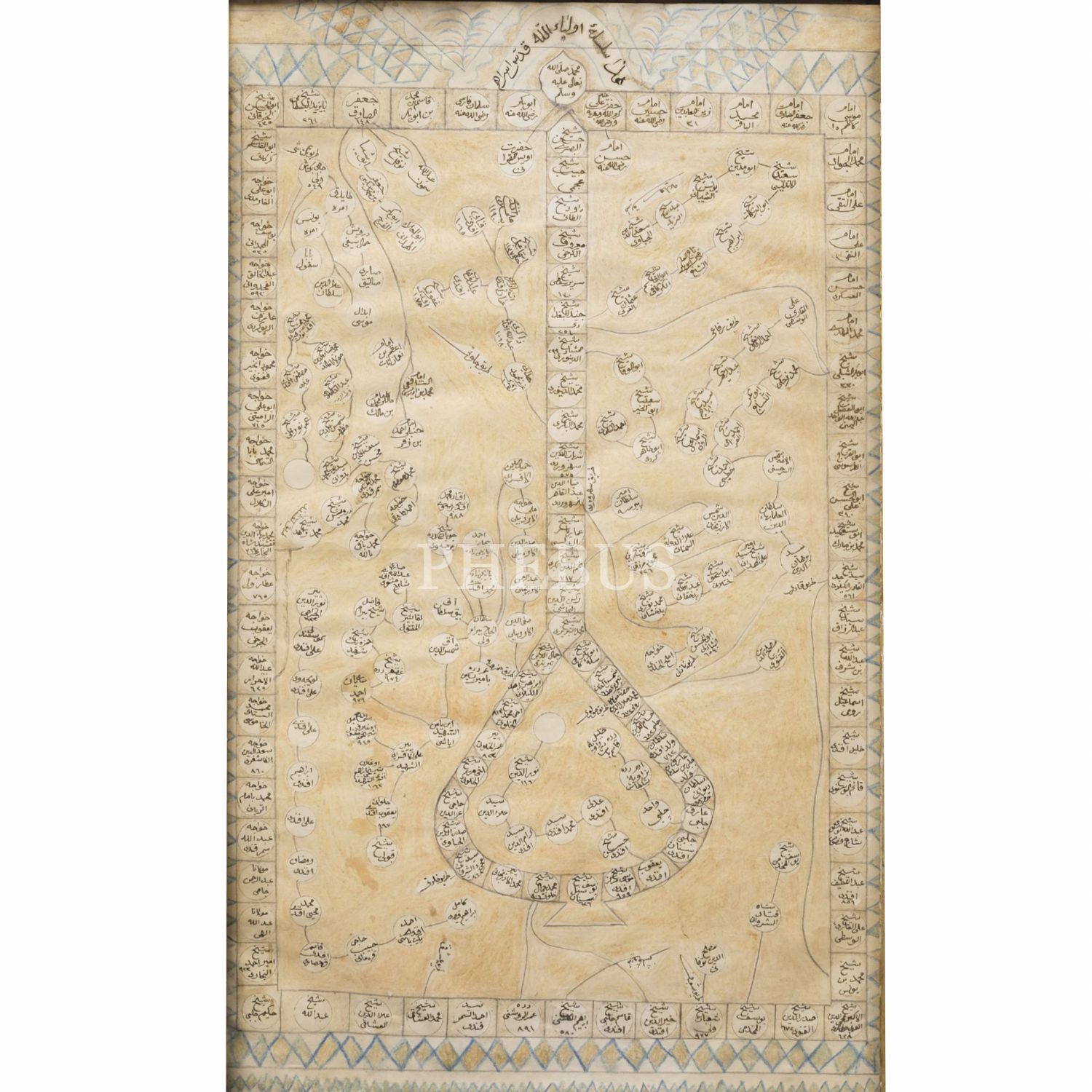 Tarikatlara göre evliyalar silsilesi, çerçeve içi ölçü: 54x31 cm...