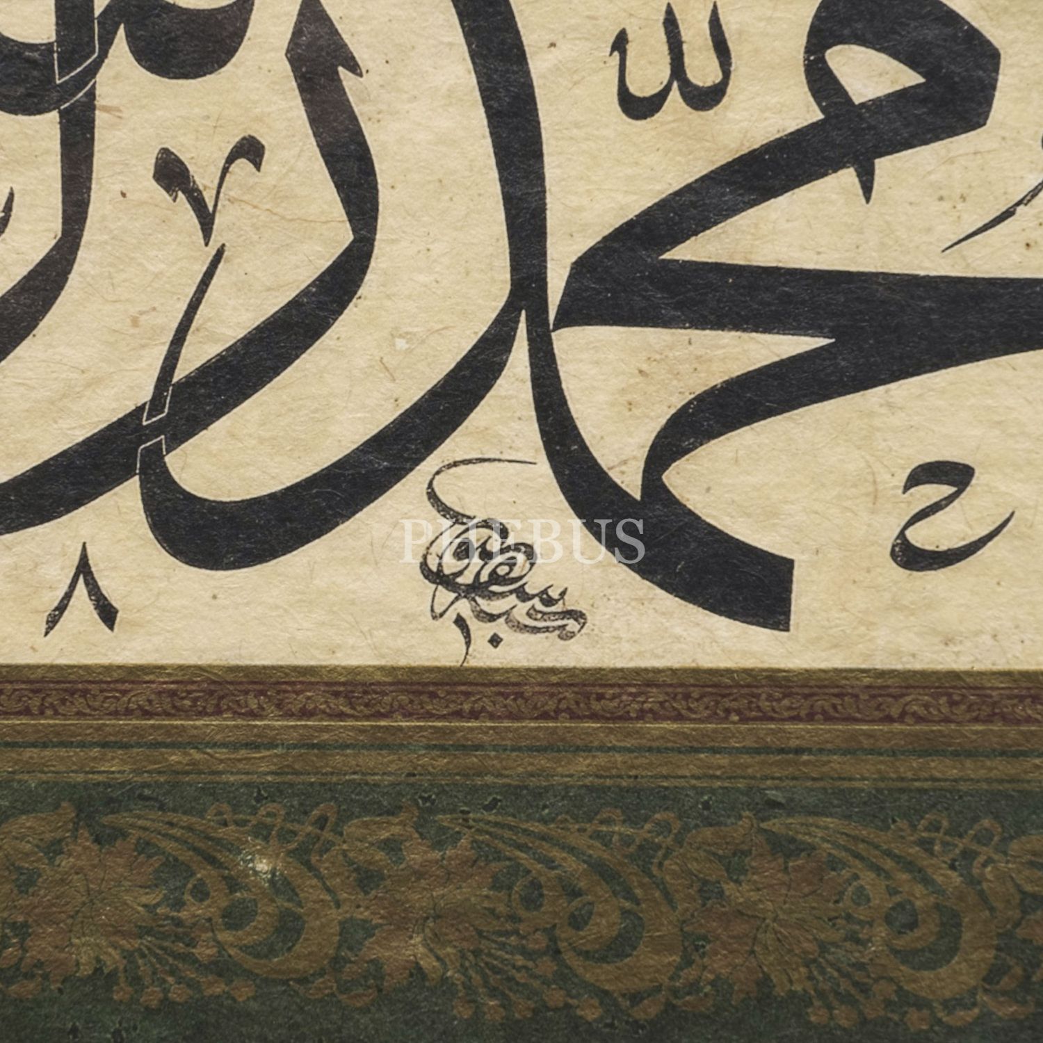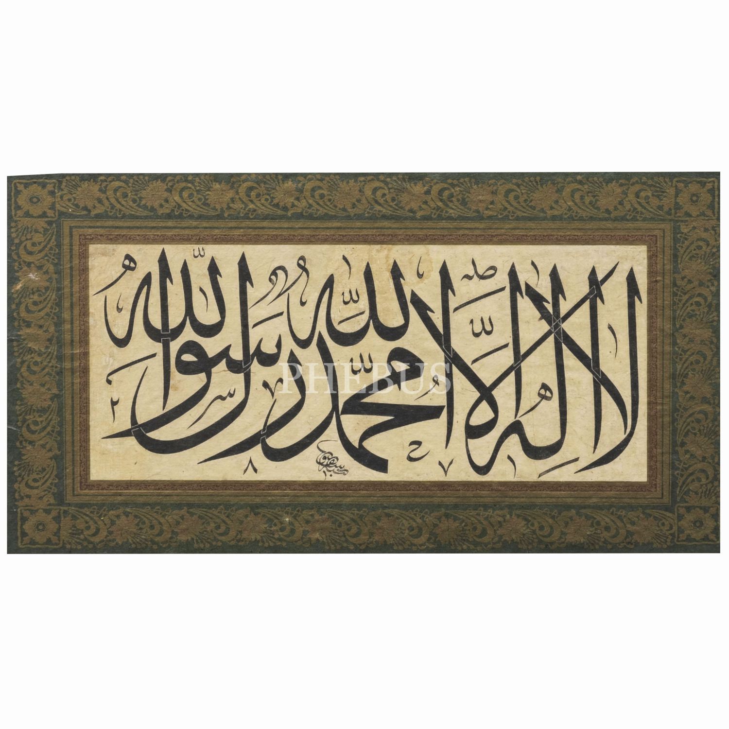 Baskı celî sülüs kelime-i tevhid, yazı ölçü: 35x15 cm, 48x27 cm...