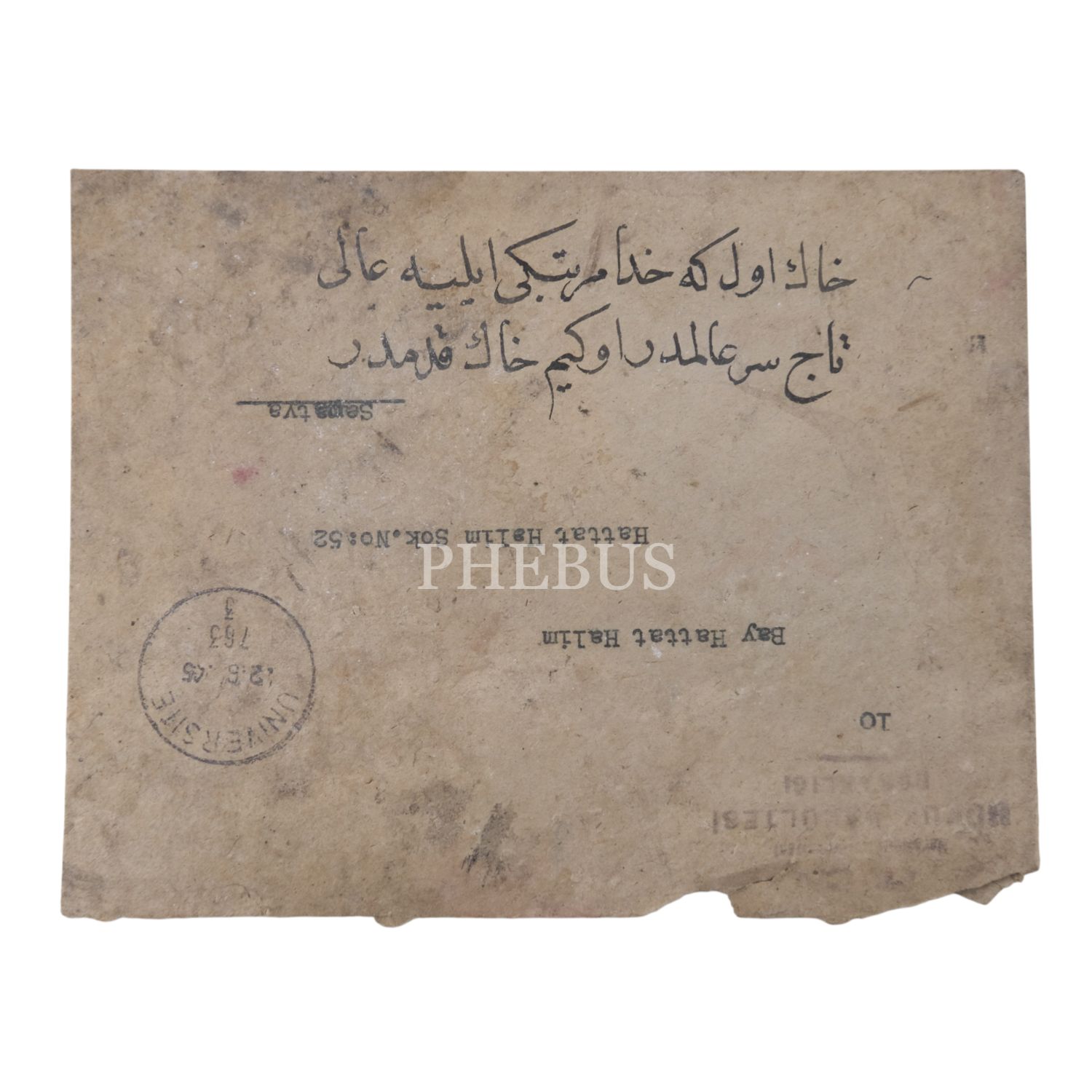 "Bay Hattat Halim" yazılı zarf üzerine yazılı beyit, 16x12 cm...