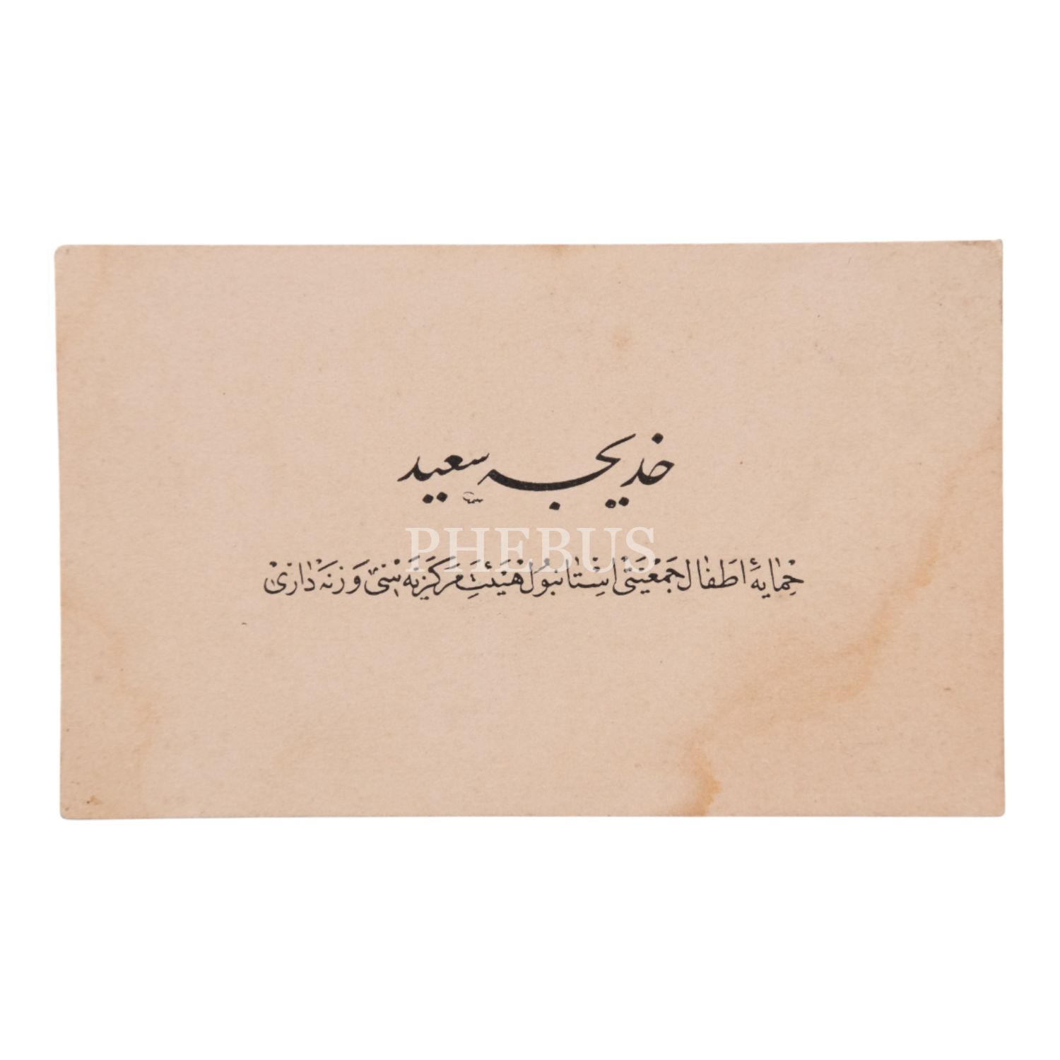 "Himâye-i Etfâl Cemiyeti İstanbul Heyet-i Merkeziyesi Veznedarı" Hatice Said´e ait kart.