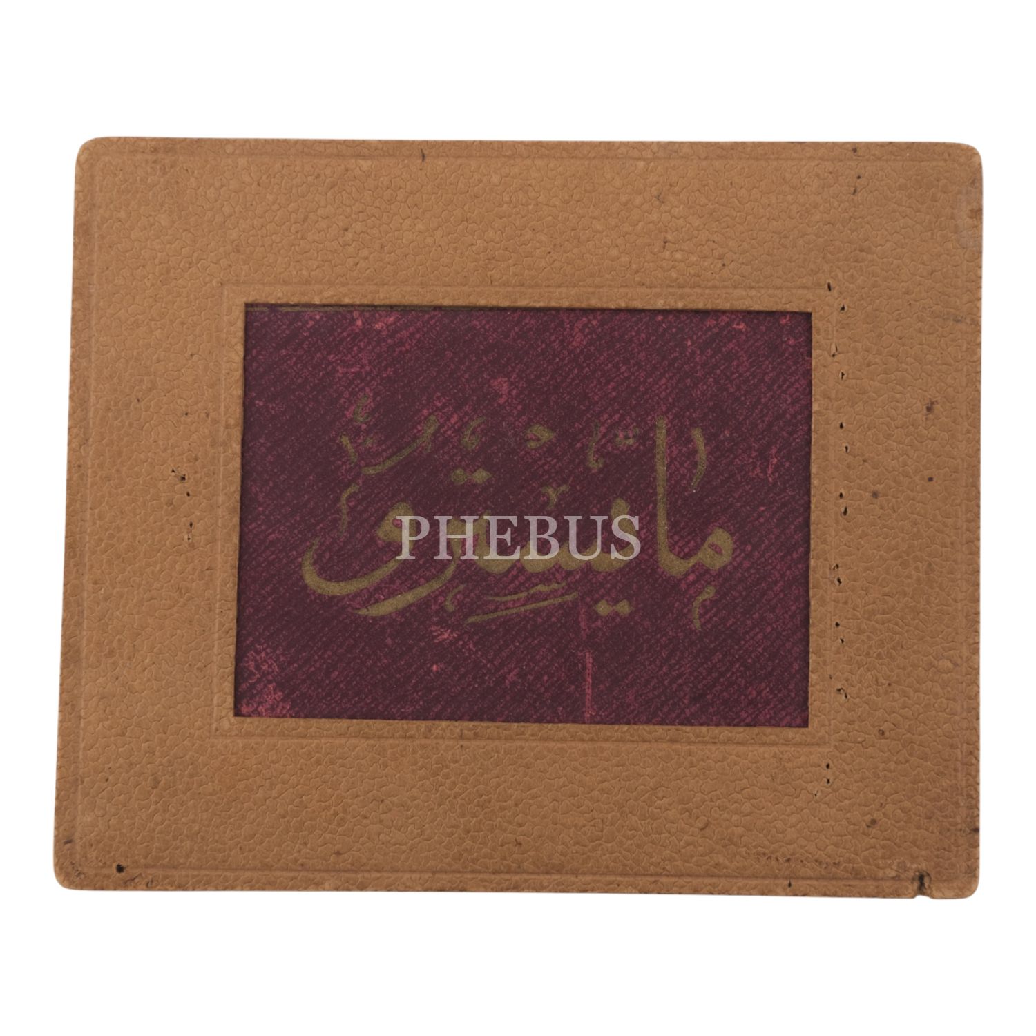 Deri üzerine işlenmiş sülüs yazıyla dönem marka adı, yazı ölçü: 11x8 cm, 18x15 cm...