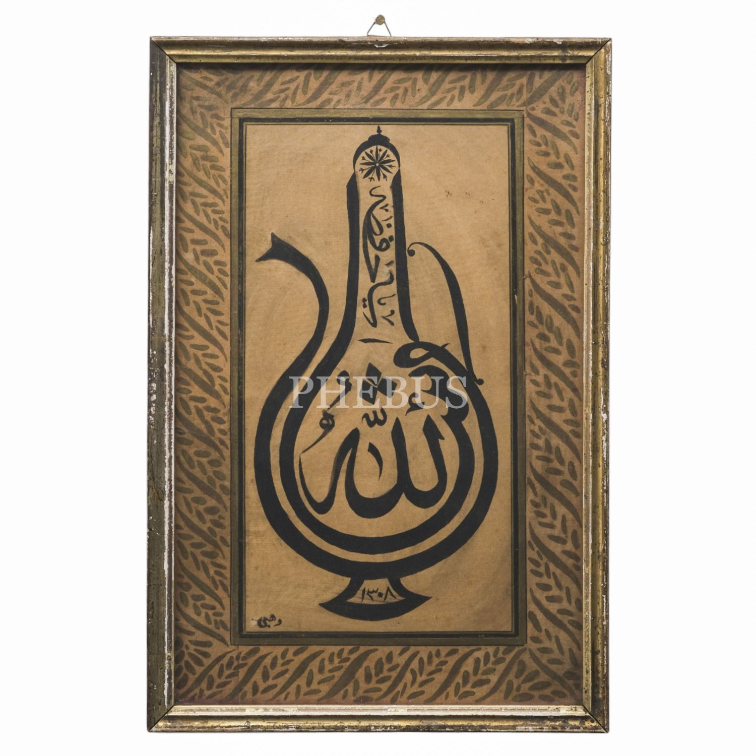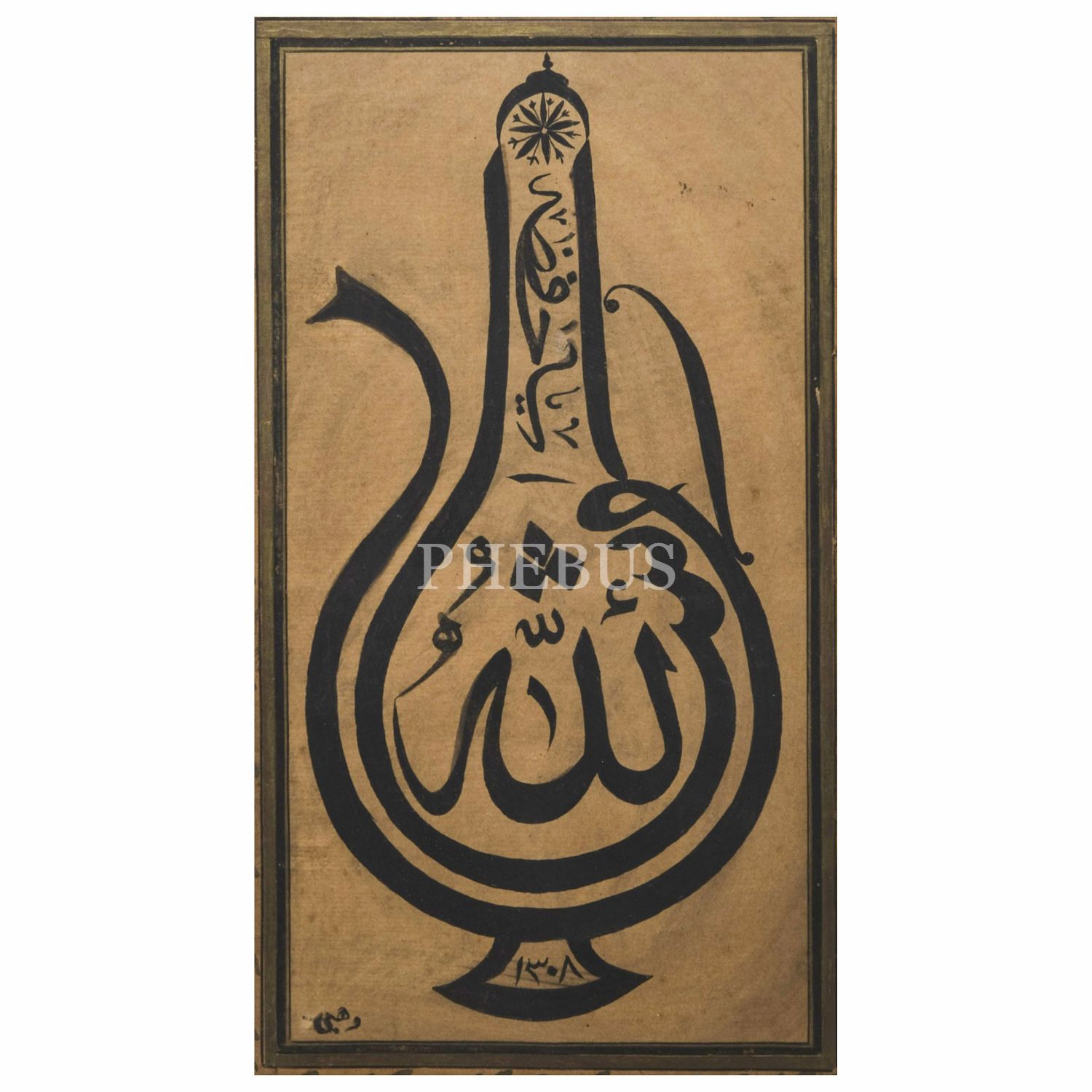 Vehbi ketebeli ibrik formunda sülüs levha, 1308 tarihli, yazı ölçü: 15x28 cm...