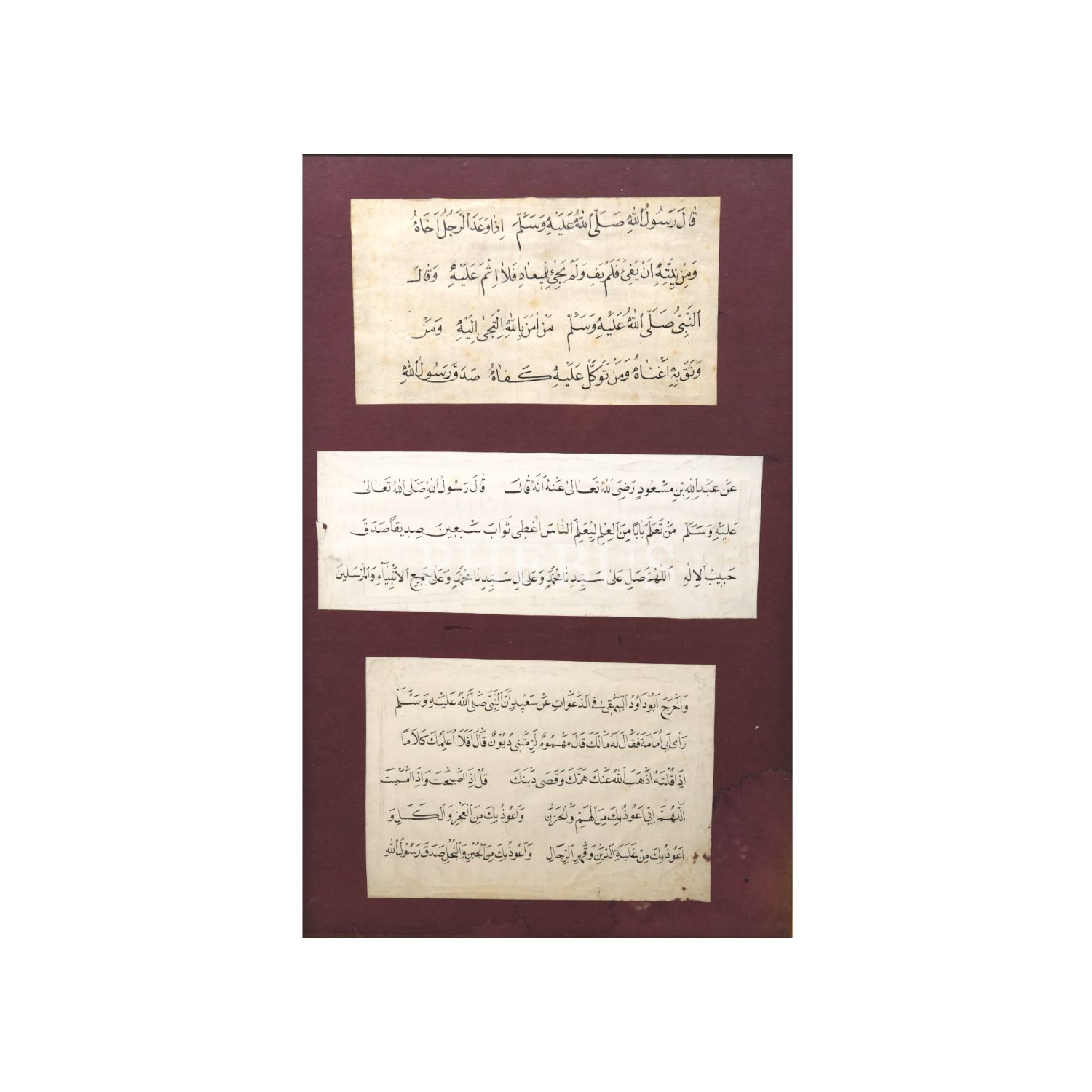 Üç adet nesih yazı örneği, çerçeve içi ölçü: 21x33 cm...