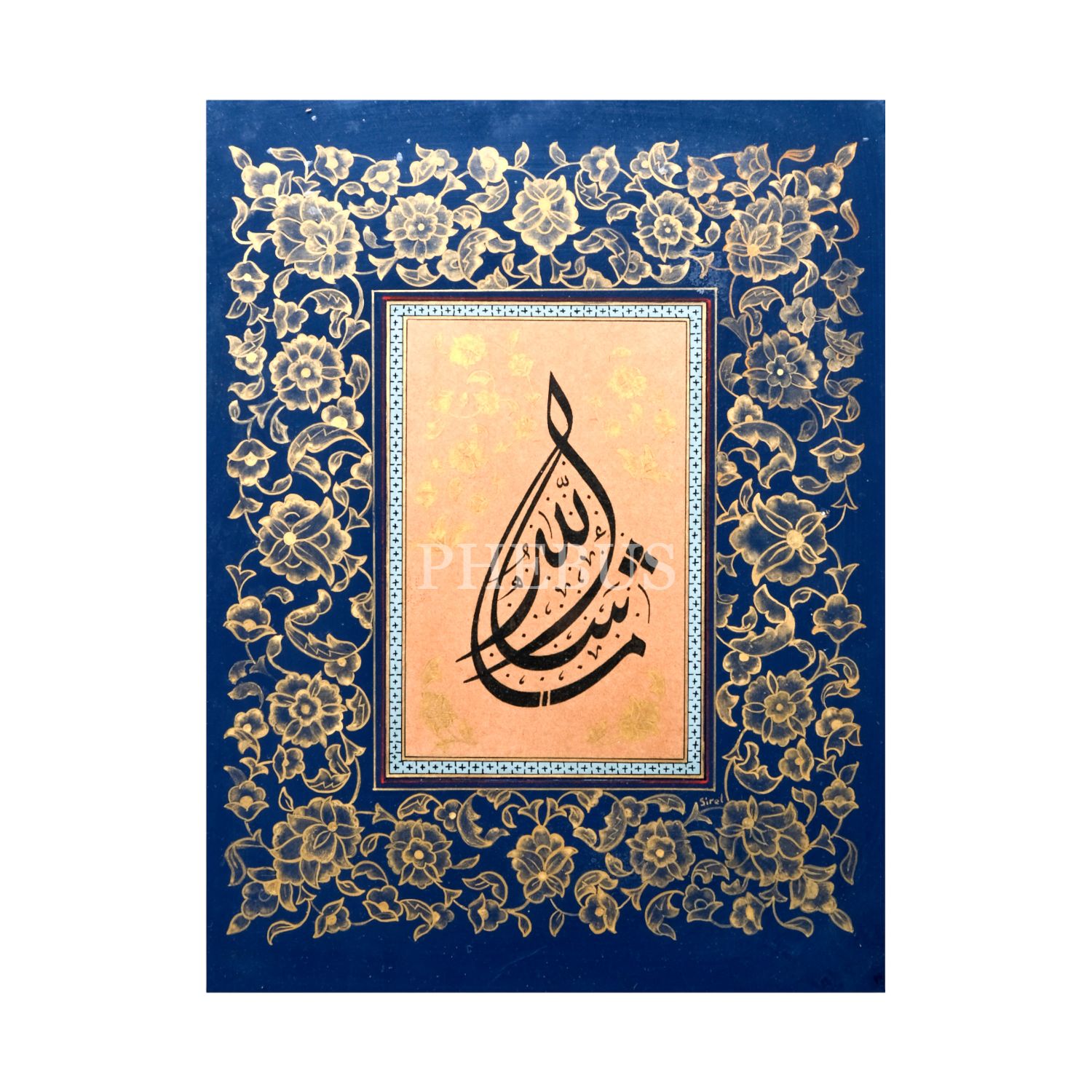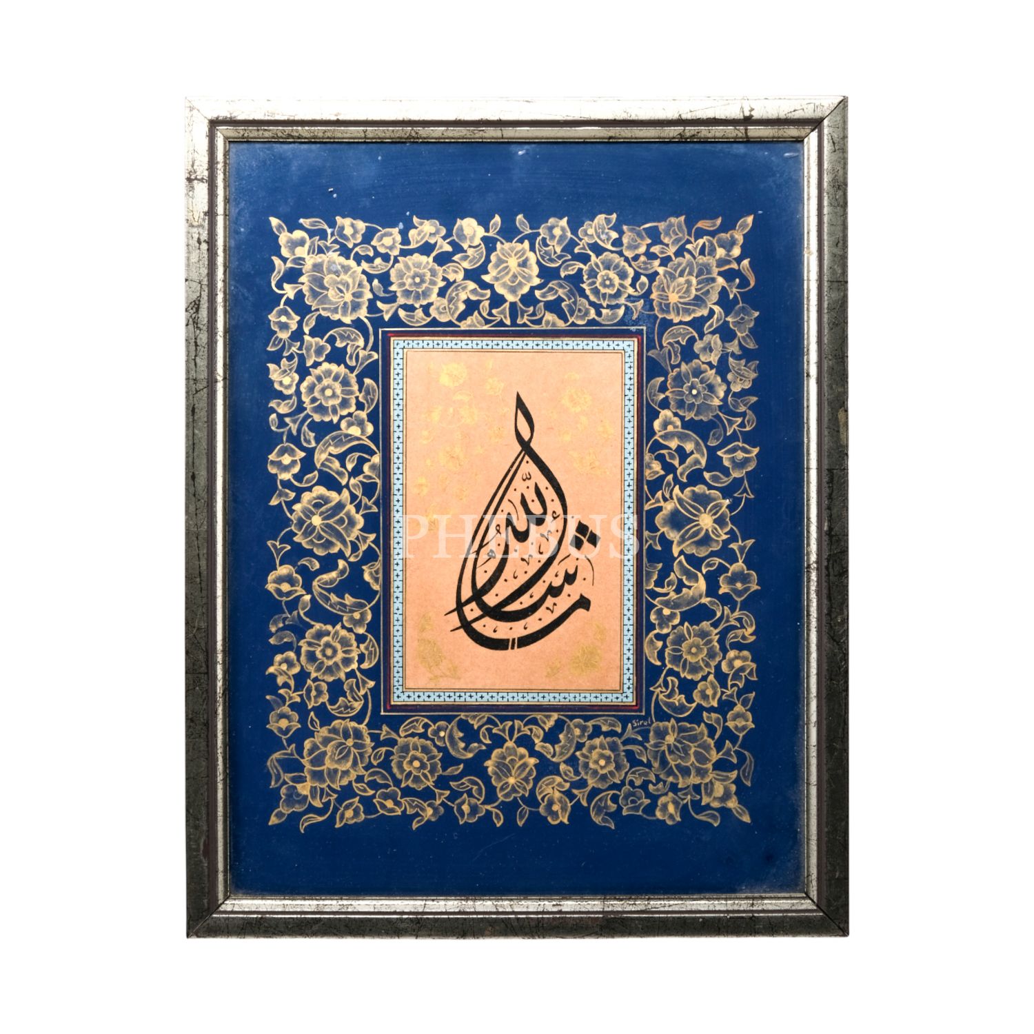 Celî divânî "mâşâallah" levhası, tezhibi Sirel imzalı, yazı ölçü: 7x11 cm, çerçeve içi ölçü: 19x25 cm...