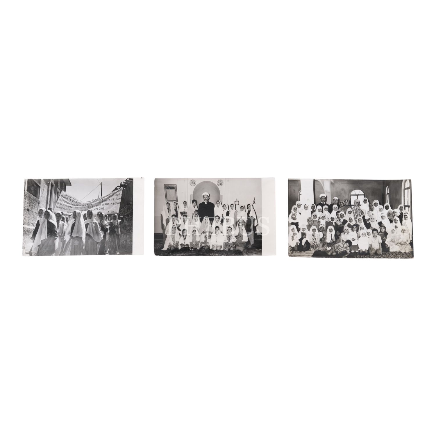 Kız Kuran kursu öğrencilerinin hocalarıyla birlikte üç fotoğrafı, 14x9 cm...
