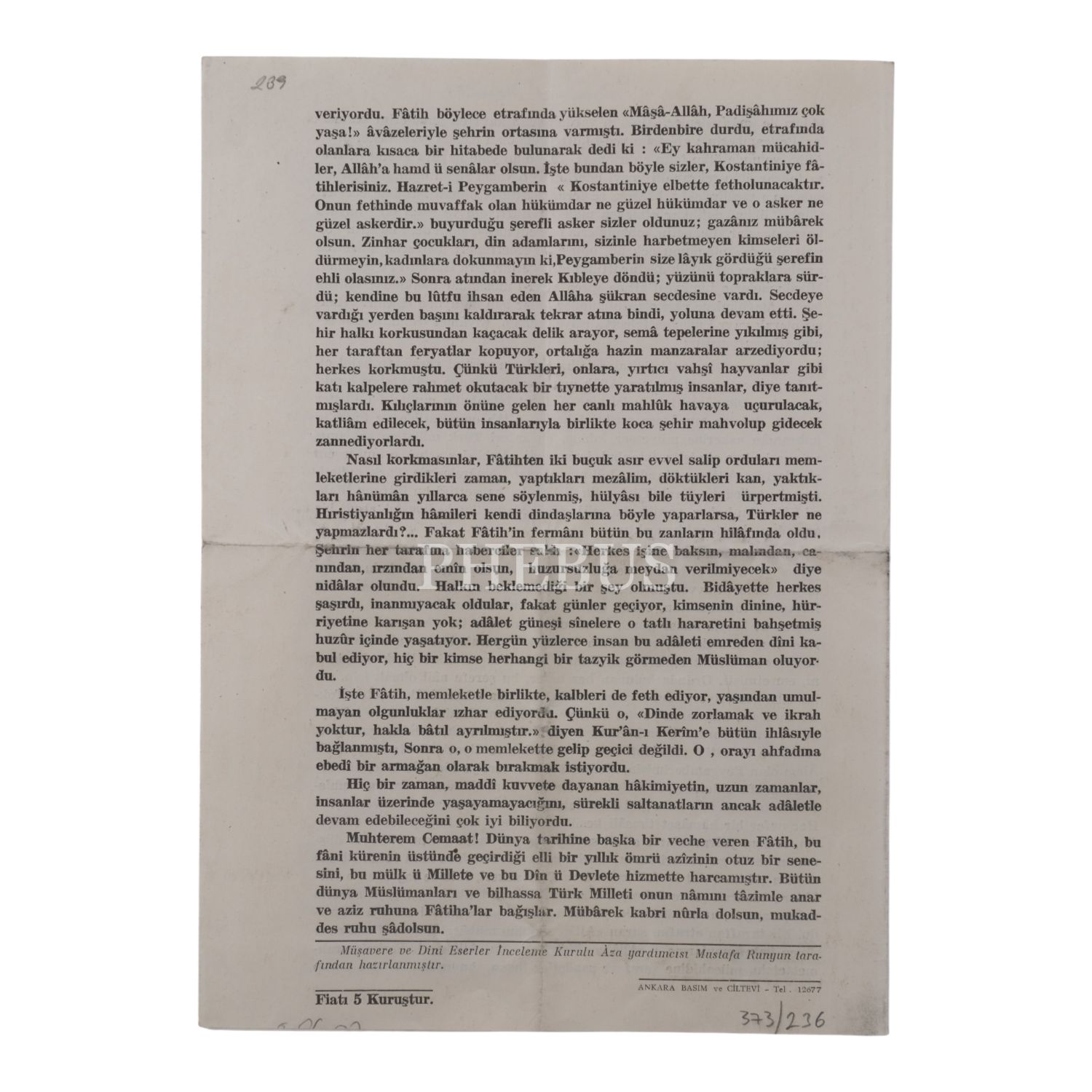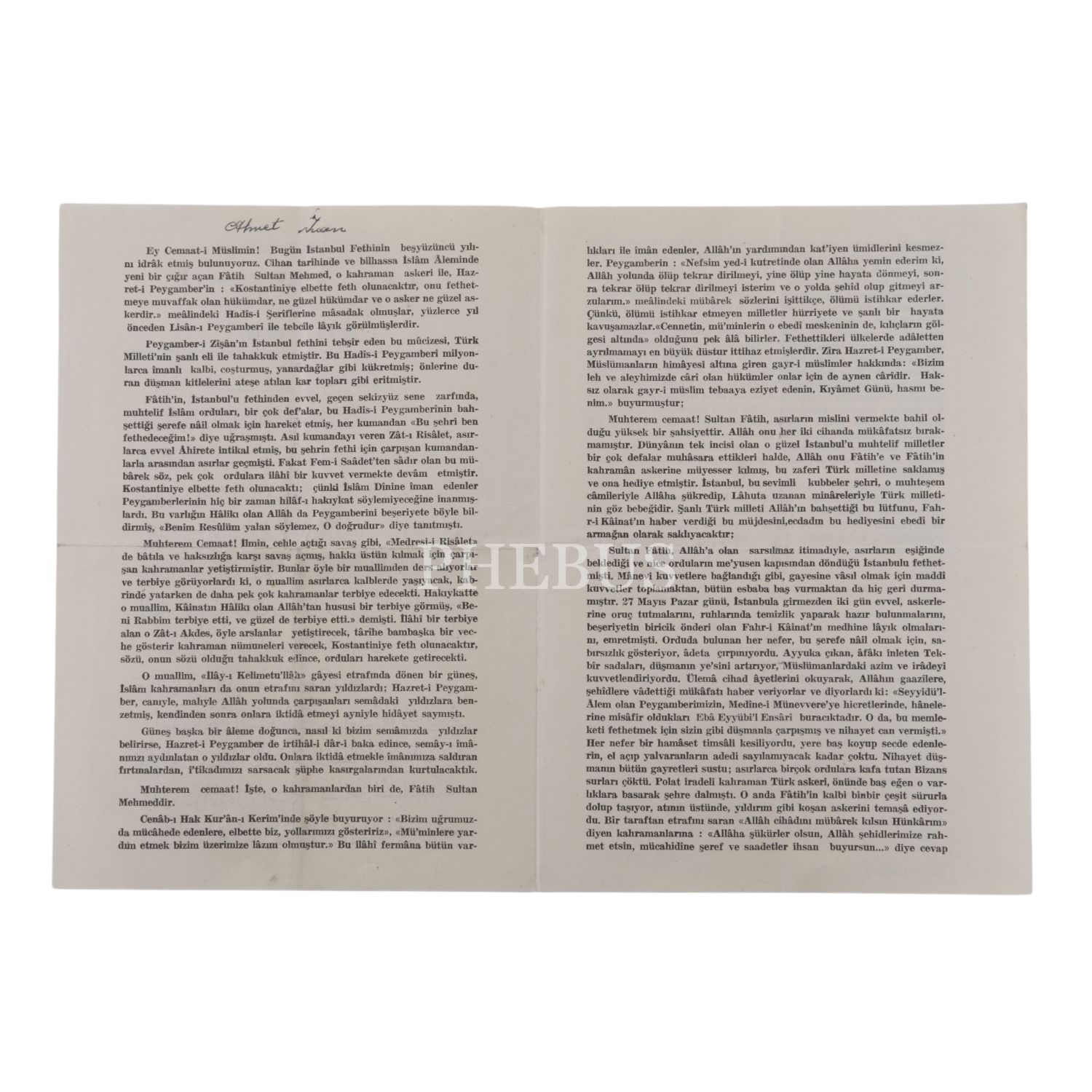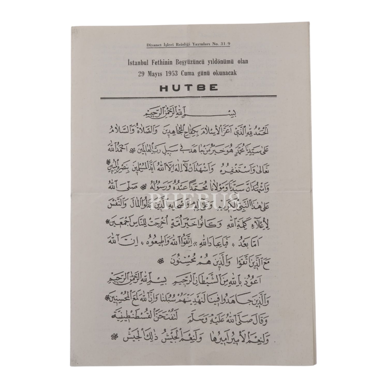 29 Mayıs 1953 tarihinde tüm camilerde okunacak hutbeye ait 4 sayfa doküman…