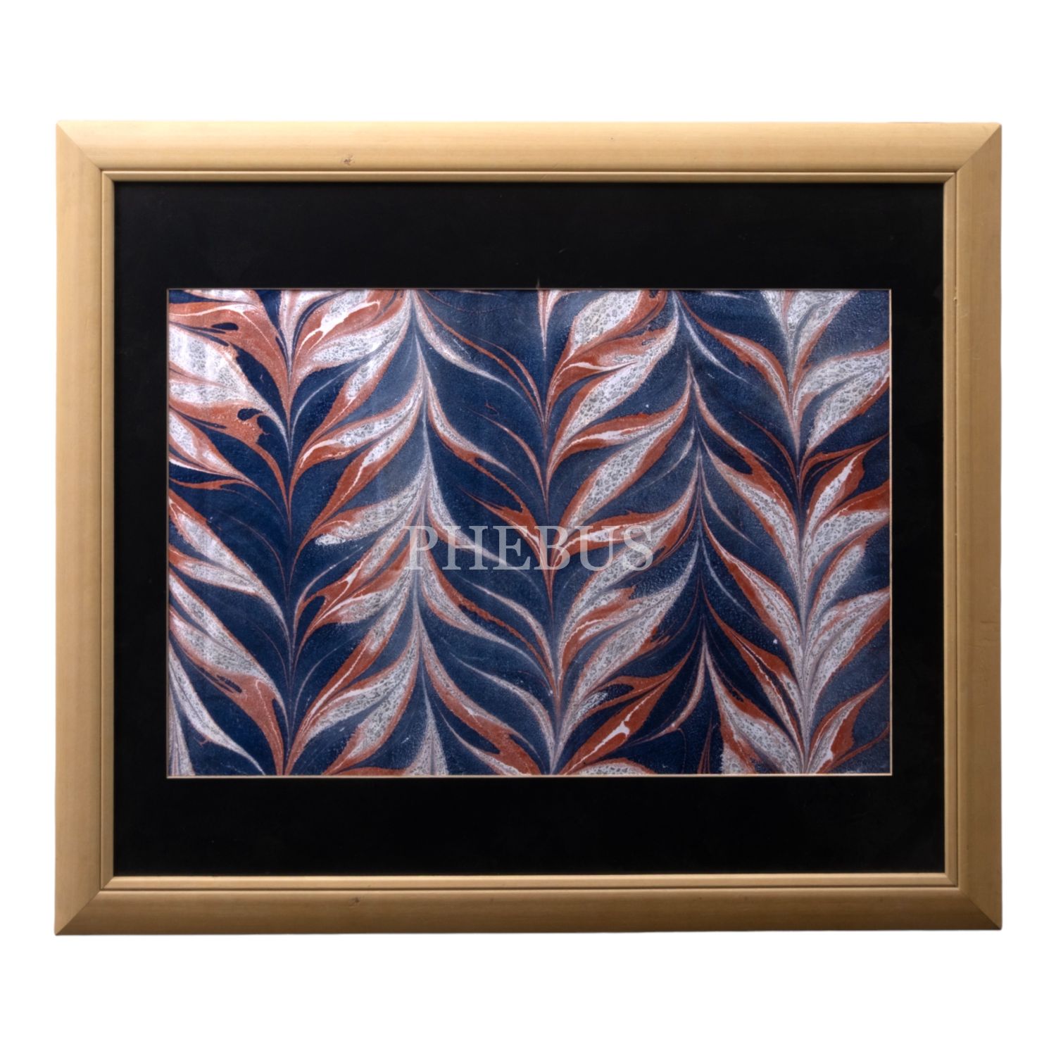 Gümüş rengi yaldızlı şal ebru, ebru ölçü: 55x37 cm, çerçeve içi paspartu: 63x52 cm...