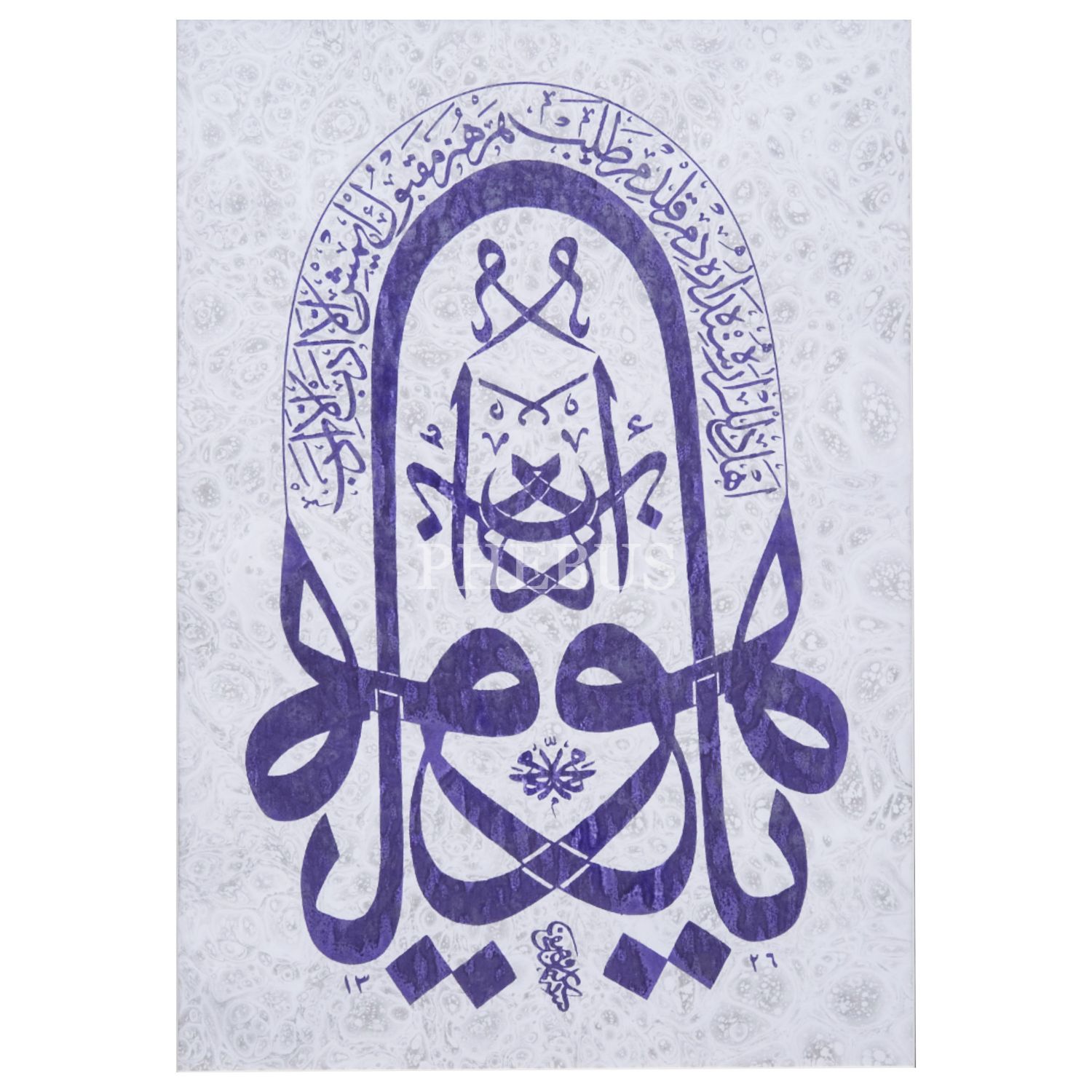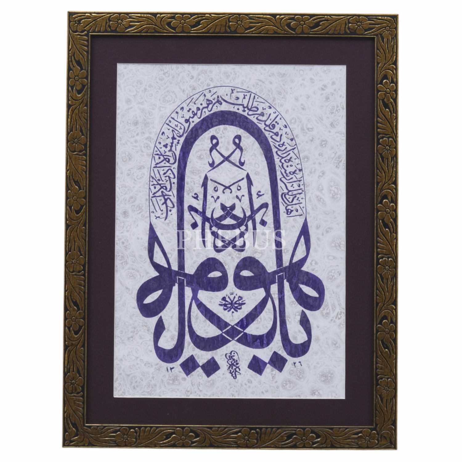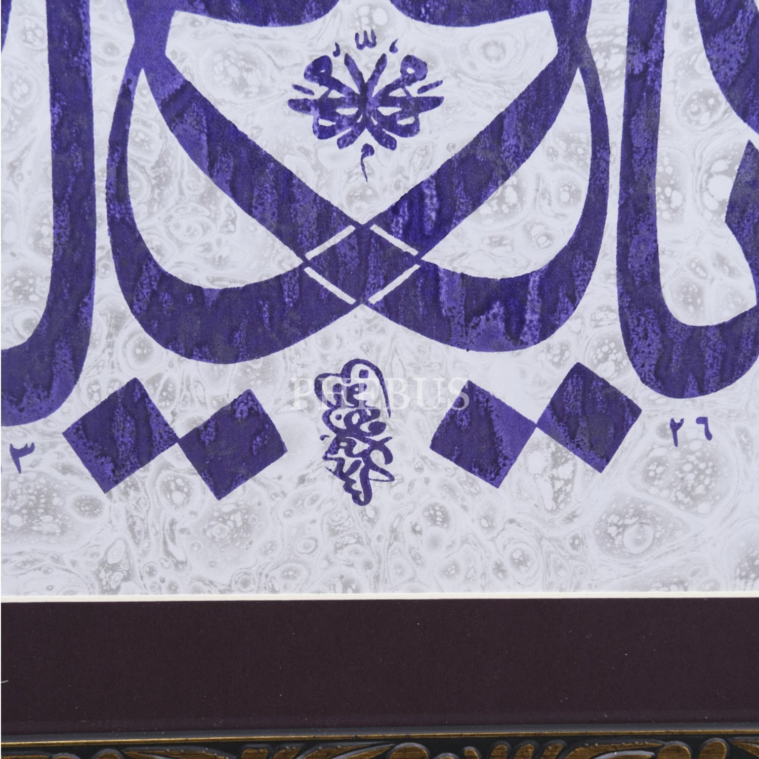 Serigrafi tekniğiyle ebru üzerine "Edeb yâ Hû" yazılı levha, ebru ölçü: 29x42 cm, çerçeve içi paspartu: 36x49 cm...