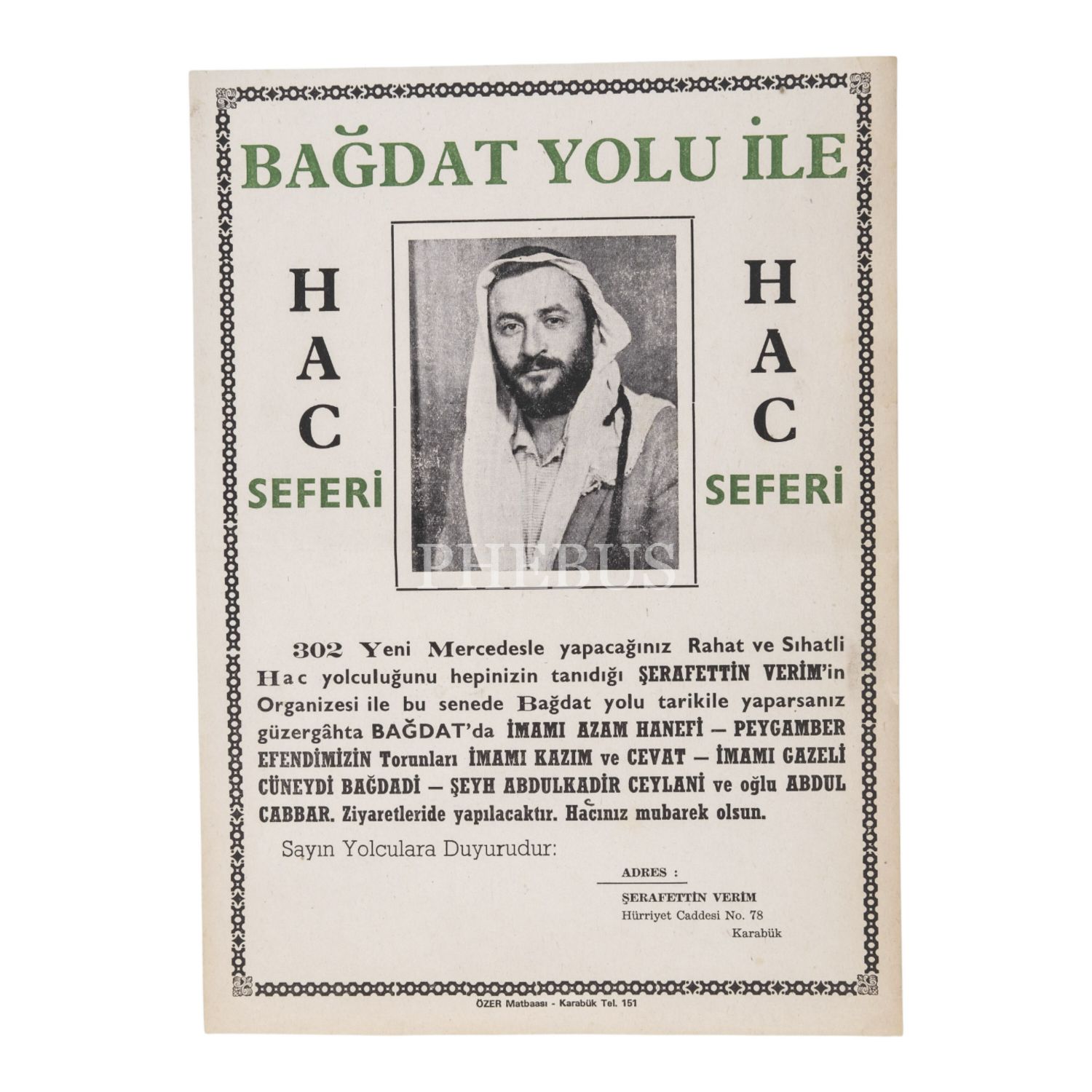Irak´taki mübarek mekânları güzergahına alan bir hac yolculuğunun tanıtım broşürü.